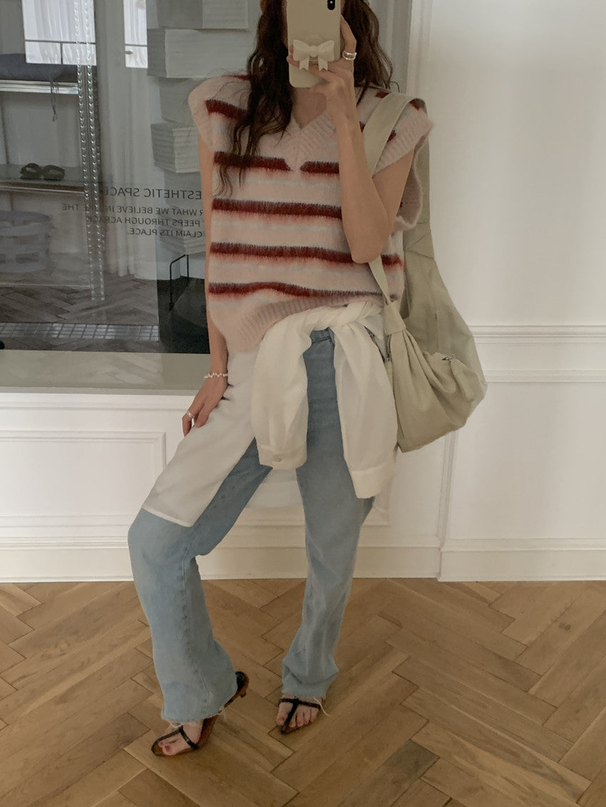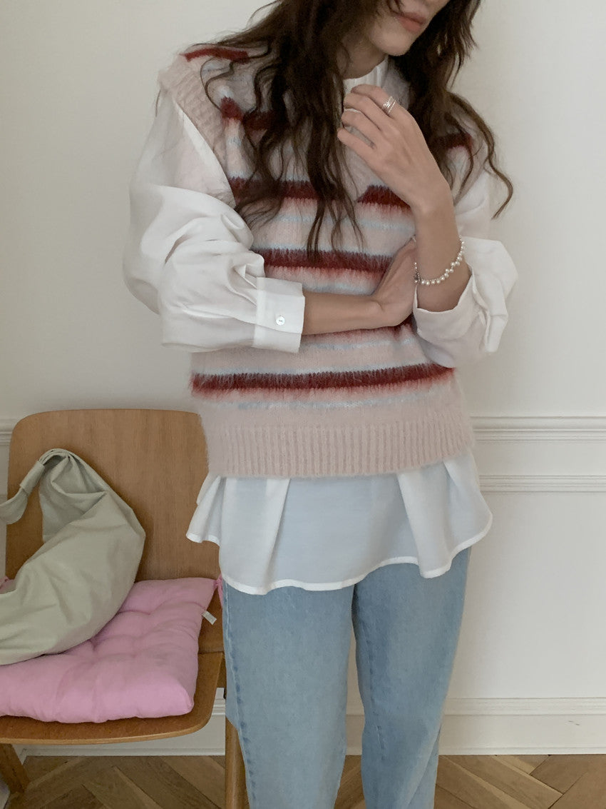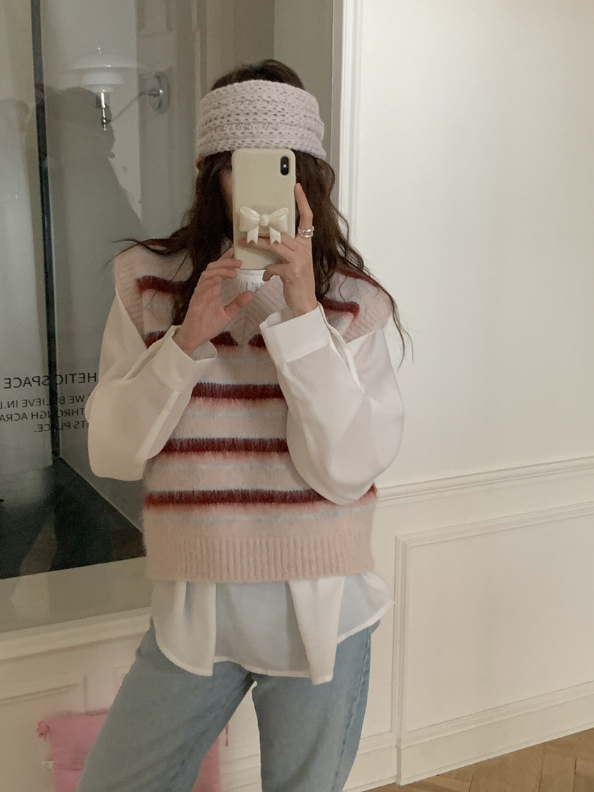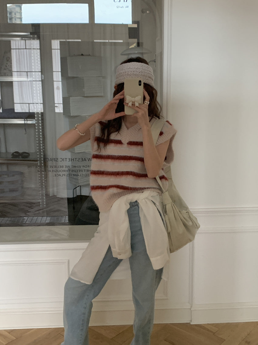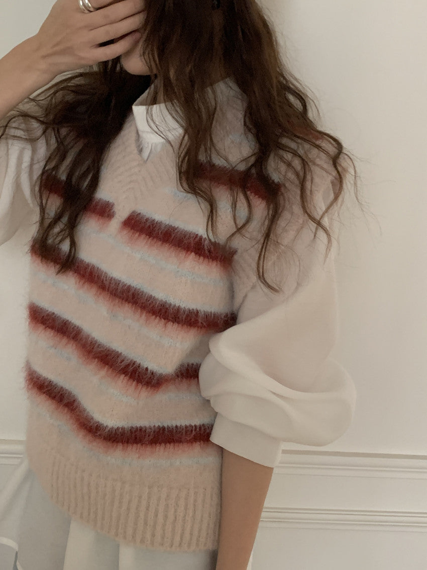 【F60205】實拍春季復古漸變寬鬆針織背心250225