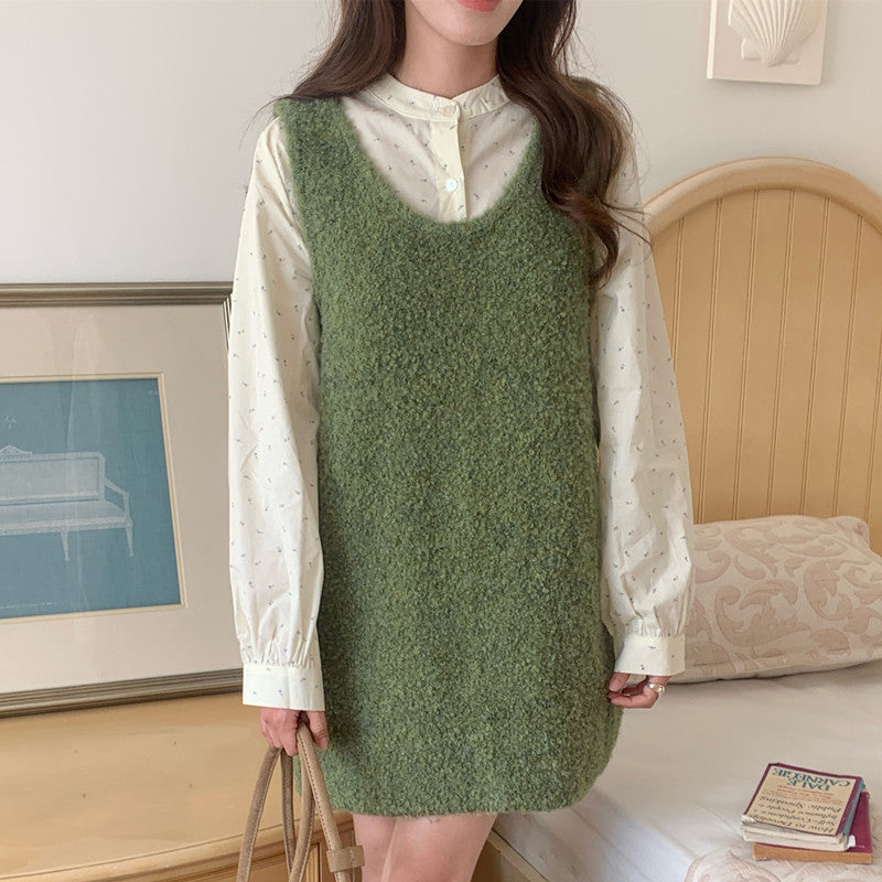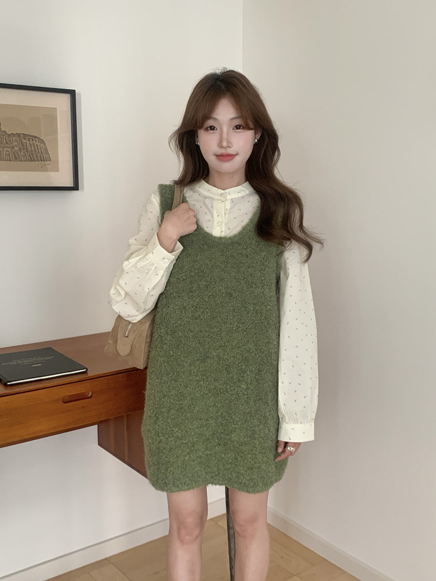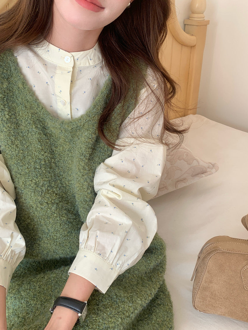 【F60206】實拍小清新碎花長袖襯衫+毛茸茸針織洋裝(分開下單)250225