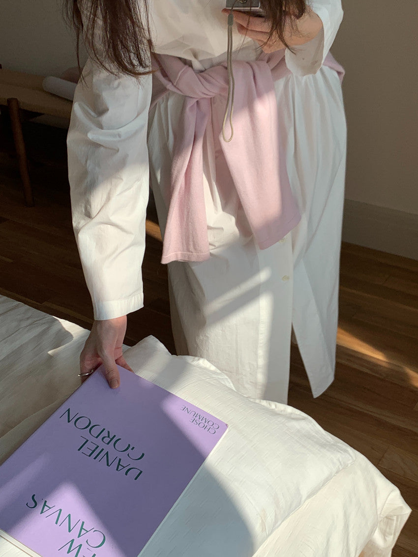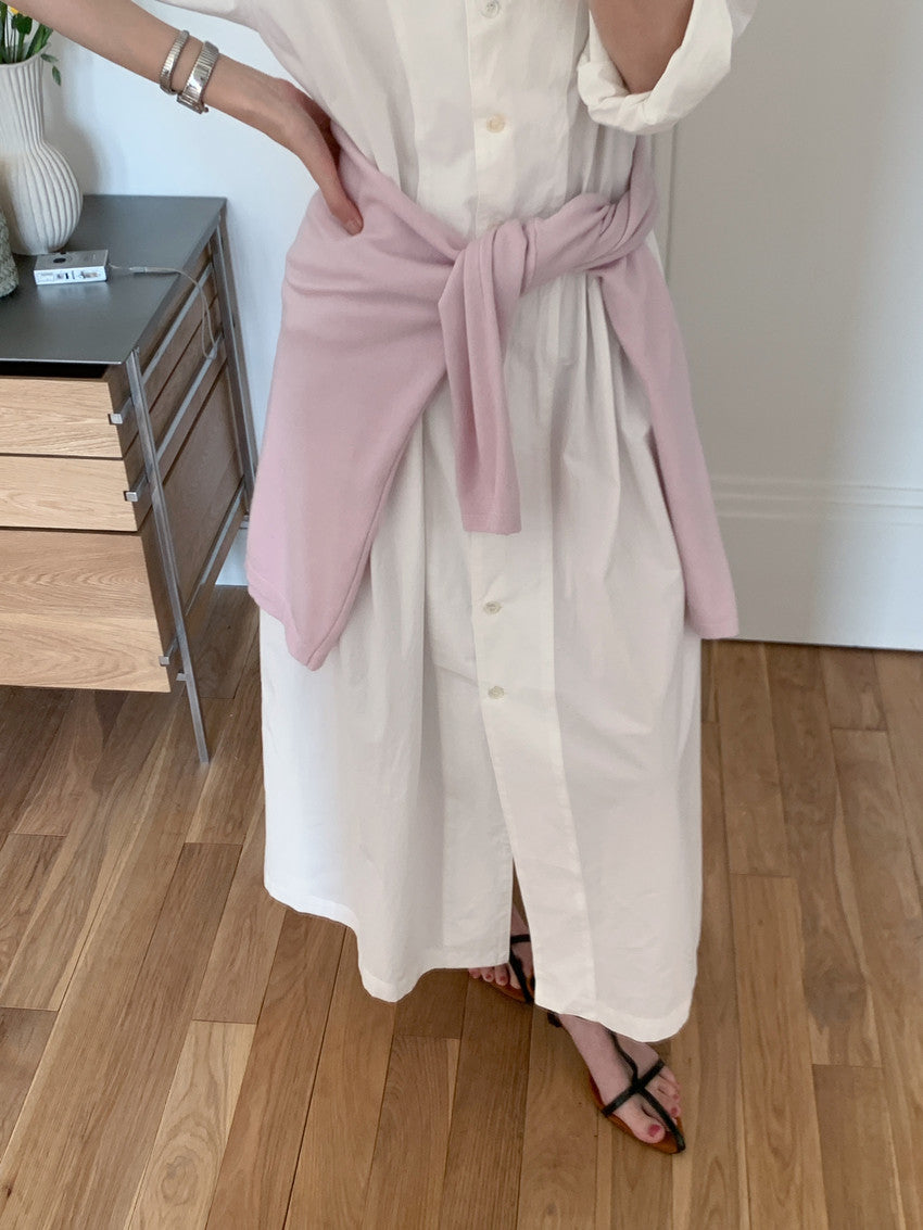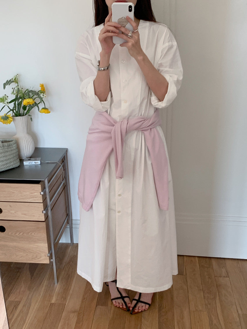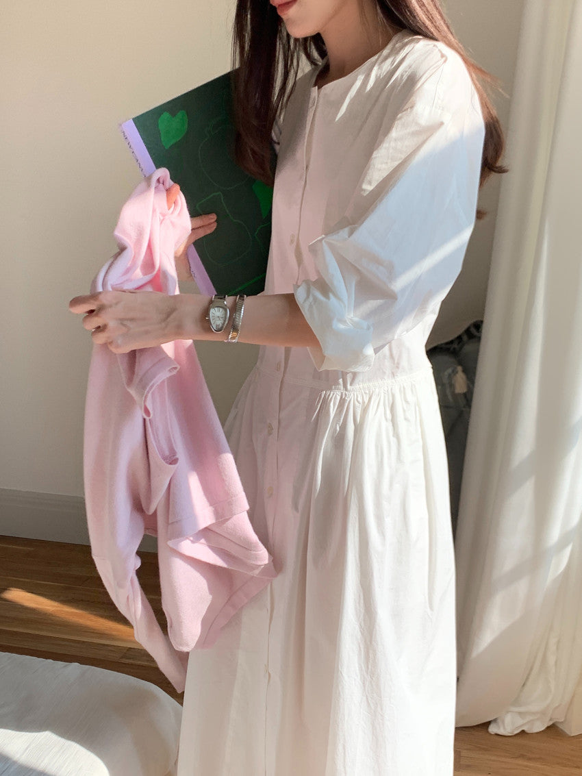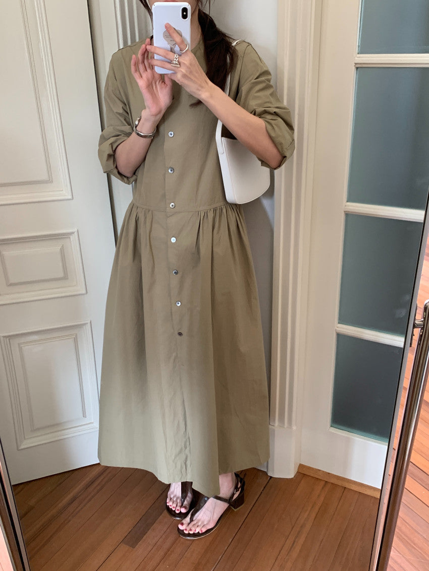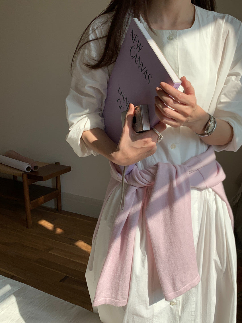 【F60210】實拍復古優雅 圓領寬鬆綁帶長洋裝250225