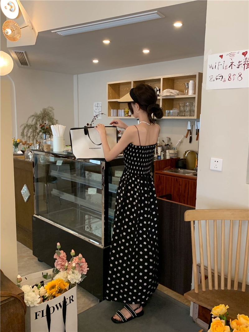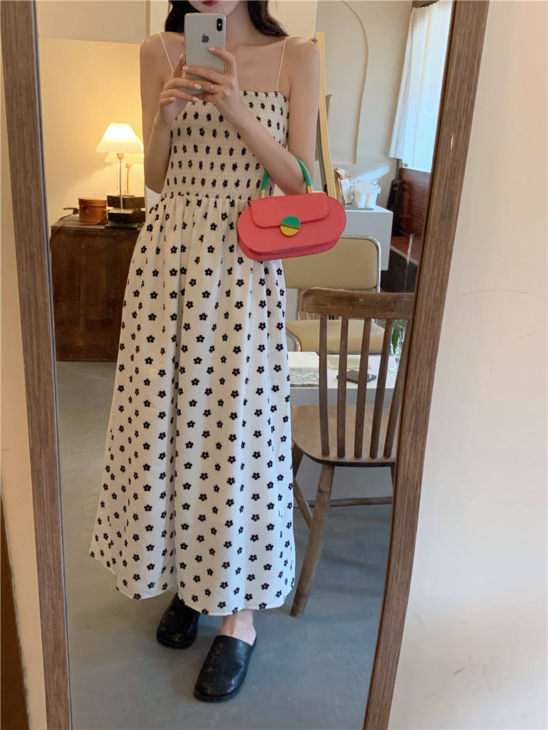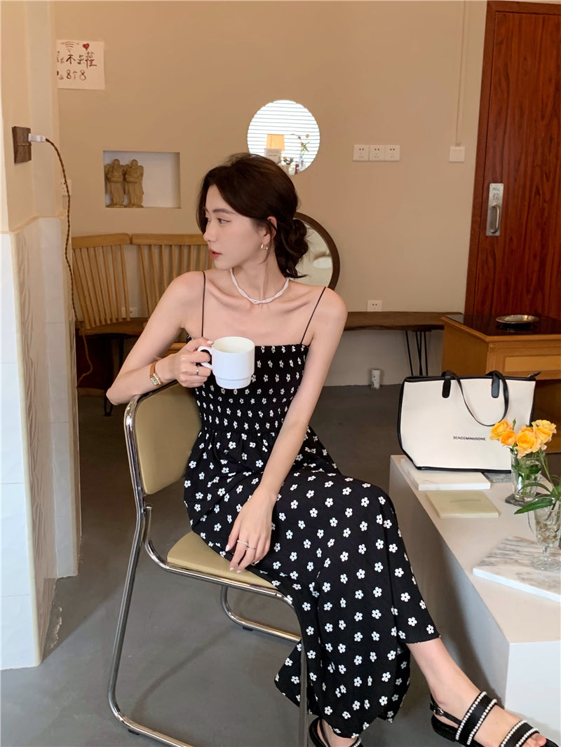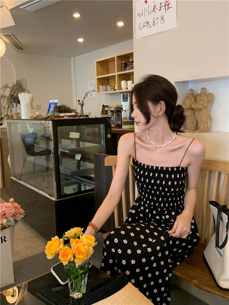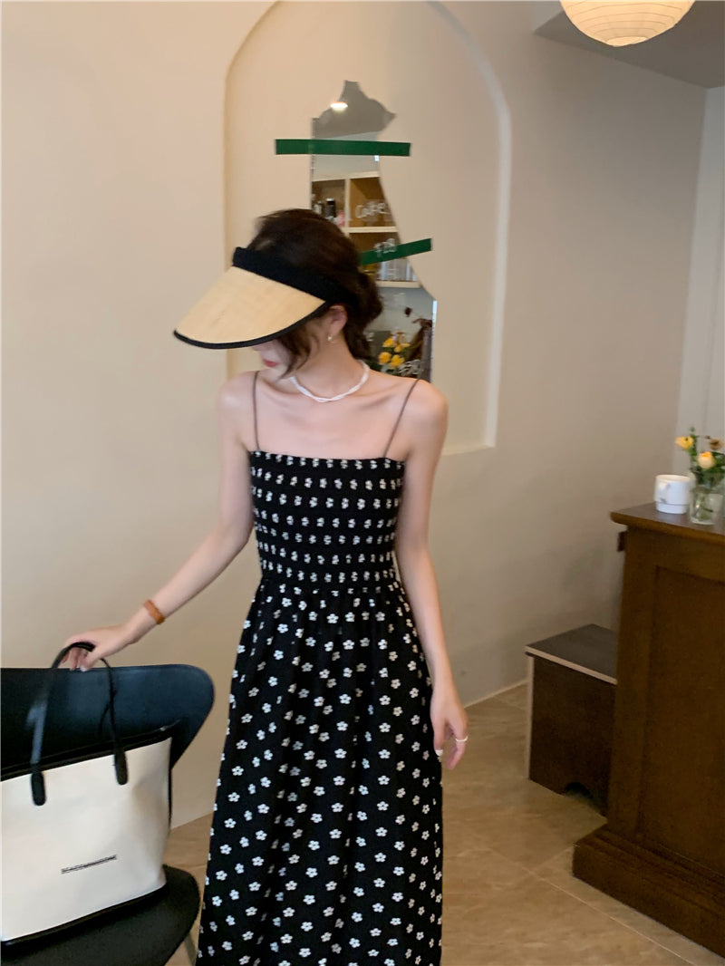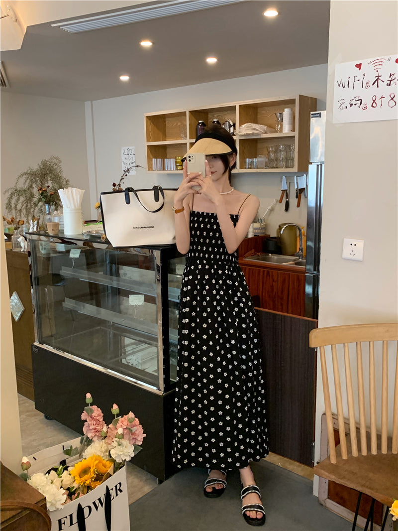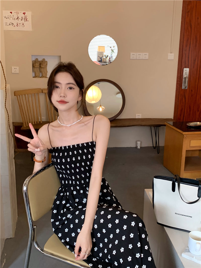 【F60215】實拍韓系小姐姐小雛菊鬆緊細肩帶吊帶長裙250225