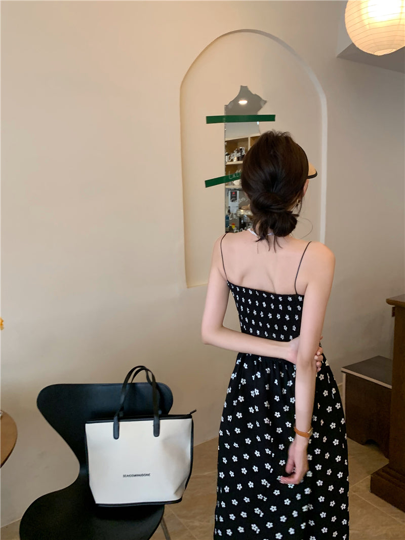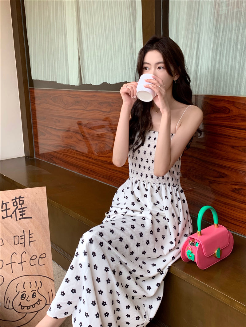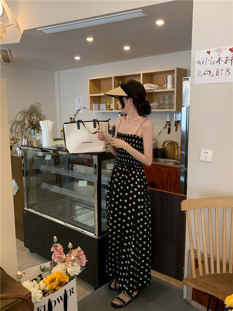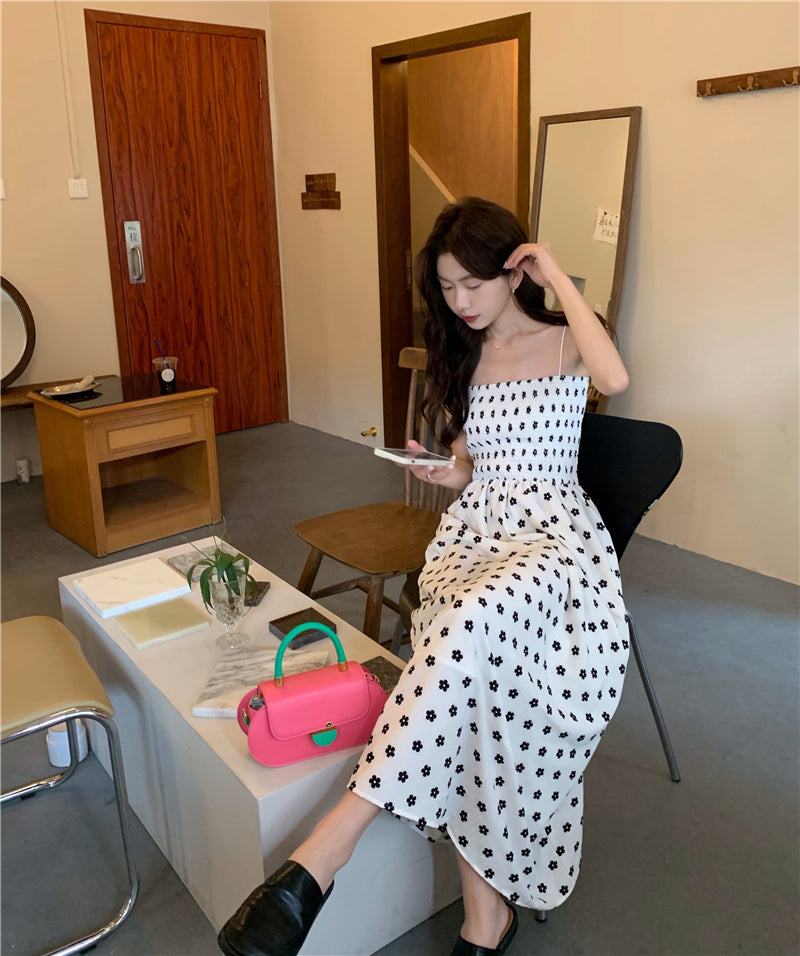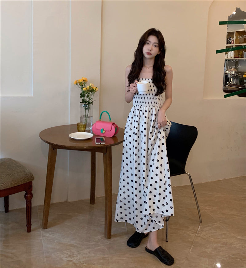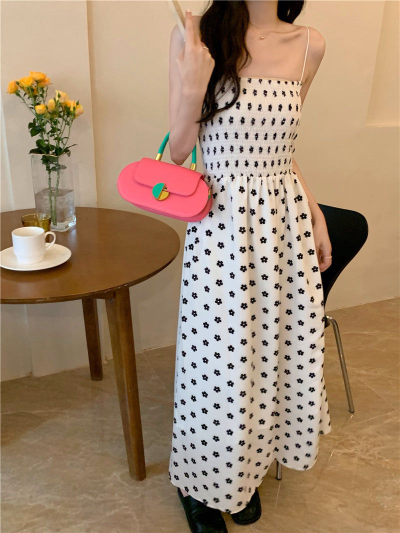 【F60215】實拍韓系小姐姐小雛菊鬆緊細肩帶吊帶長裙250225