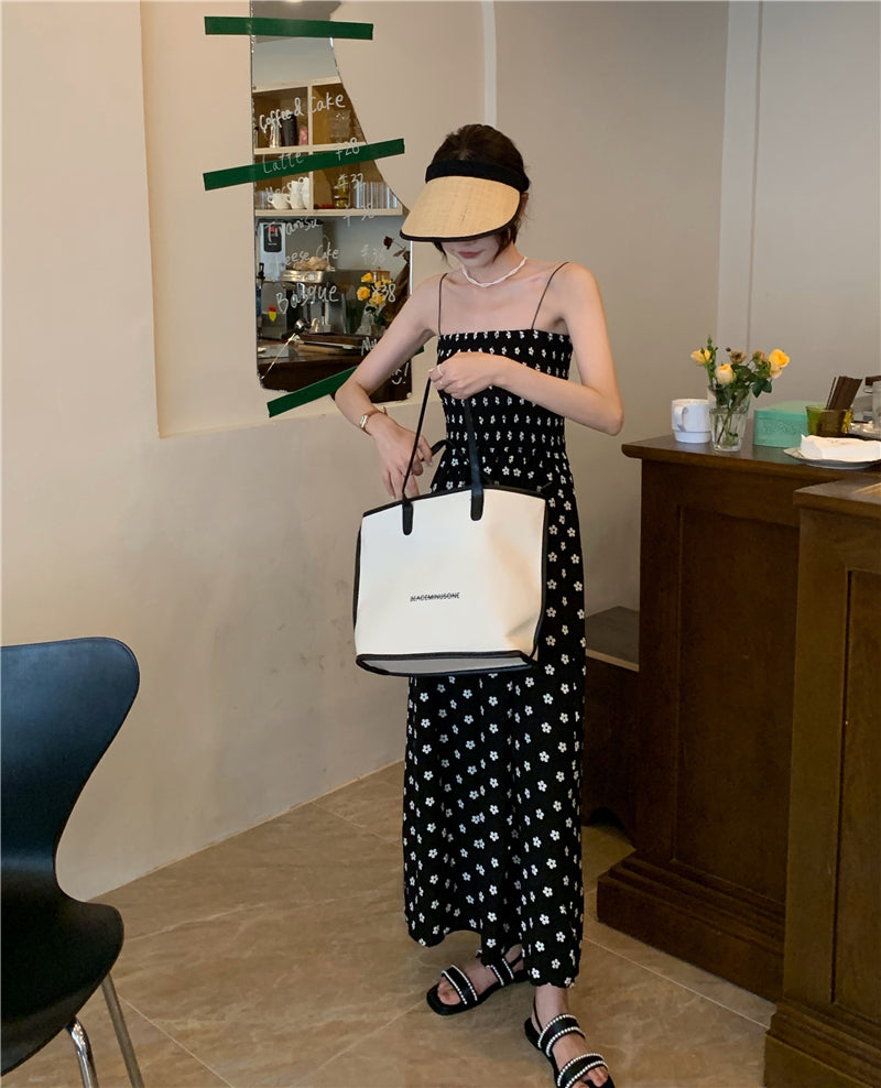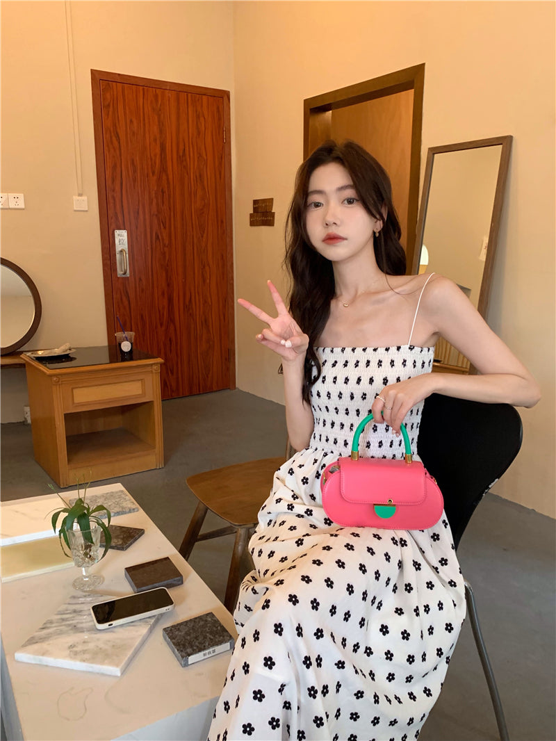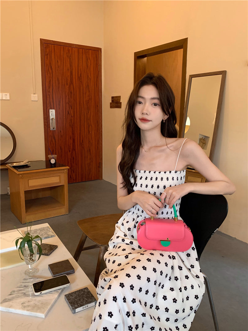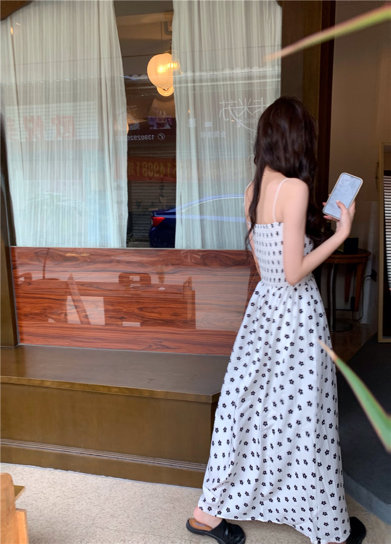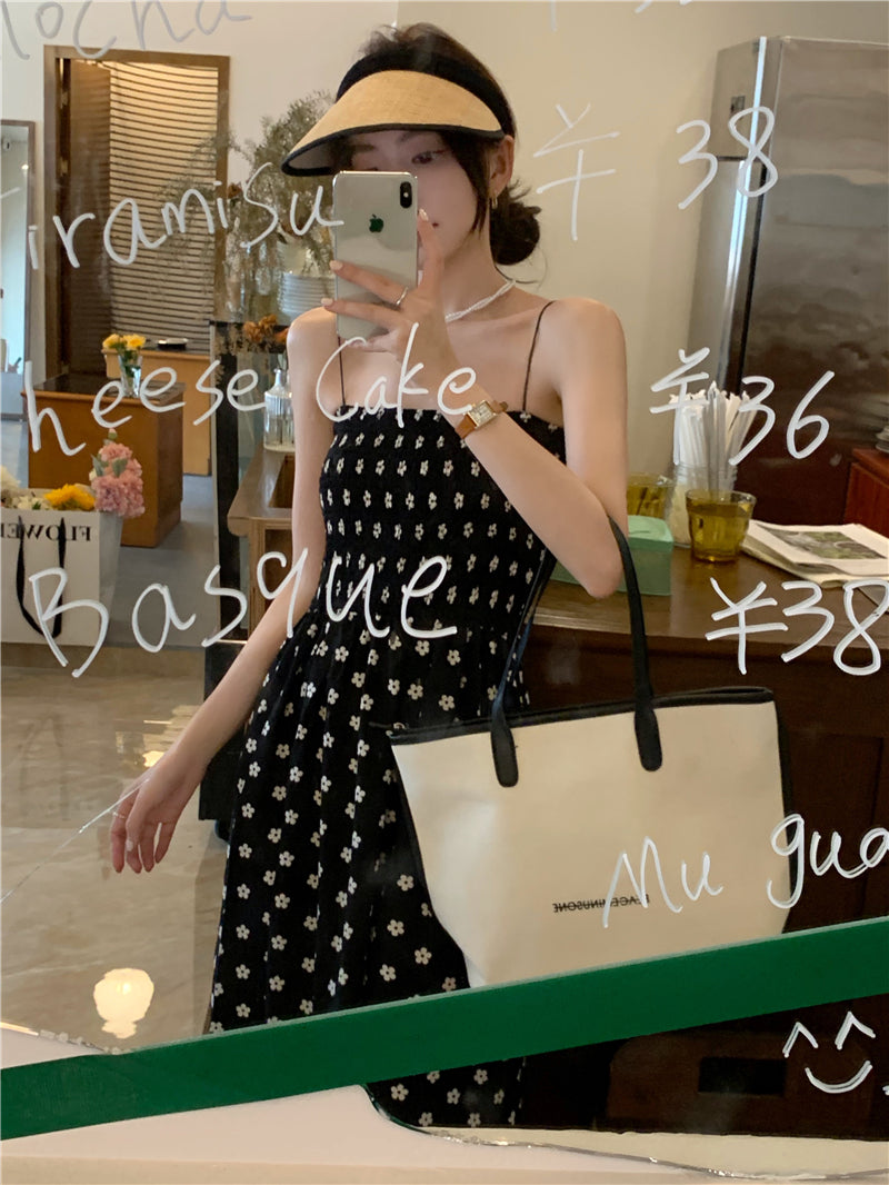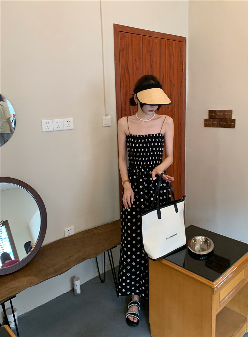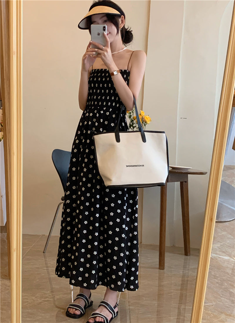 【F60215】實拍韓系小姐姐小雛菊鬆緊細肩帶吊帶長裙250225
