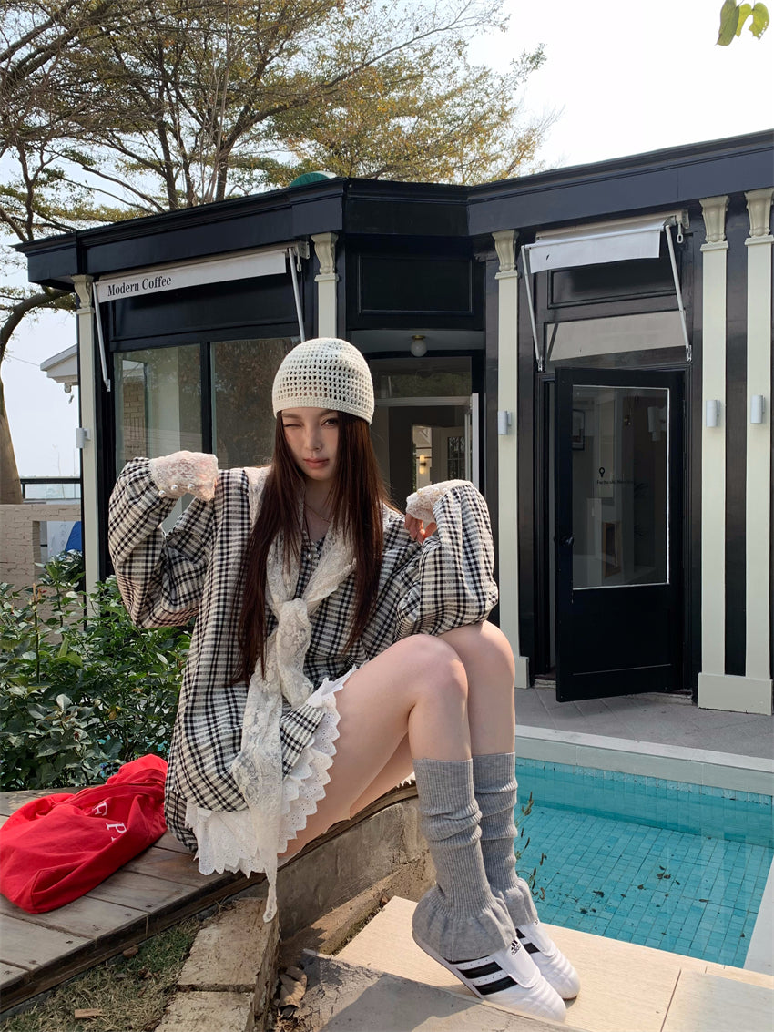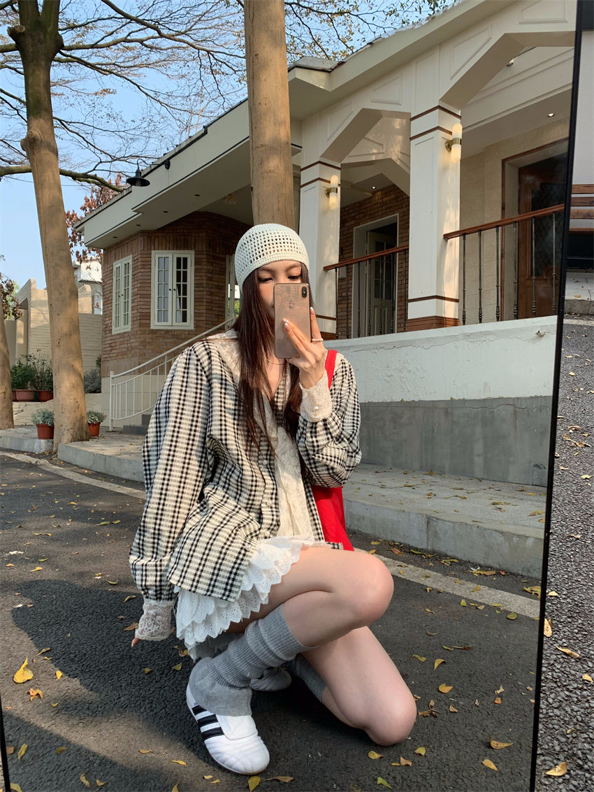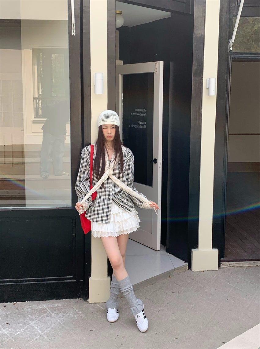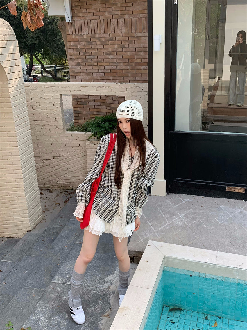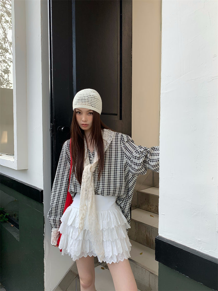 【F60221】實拍韓國原單復古V領襯衫送蕾絲披肩+層層蛋糕短裙(分開下單)250225