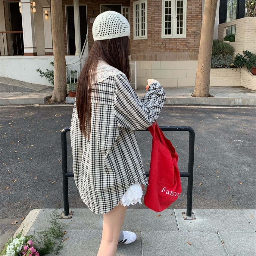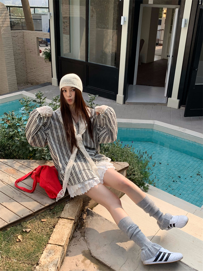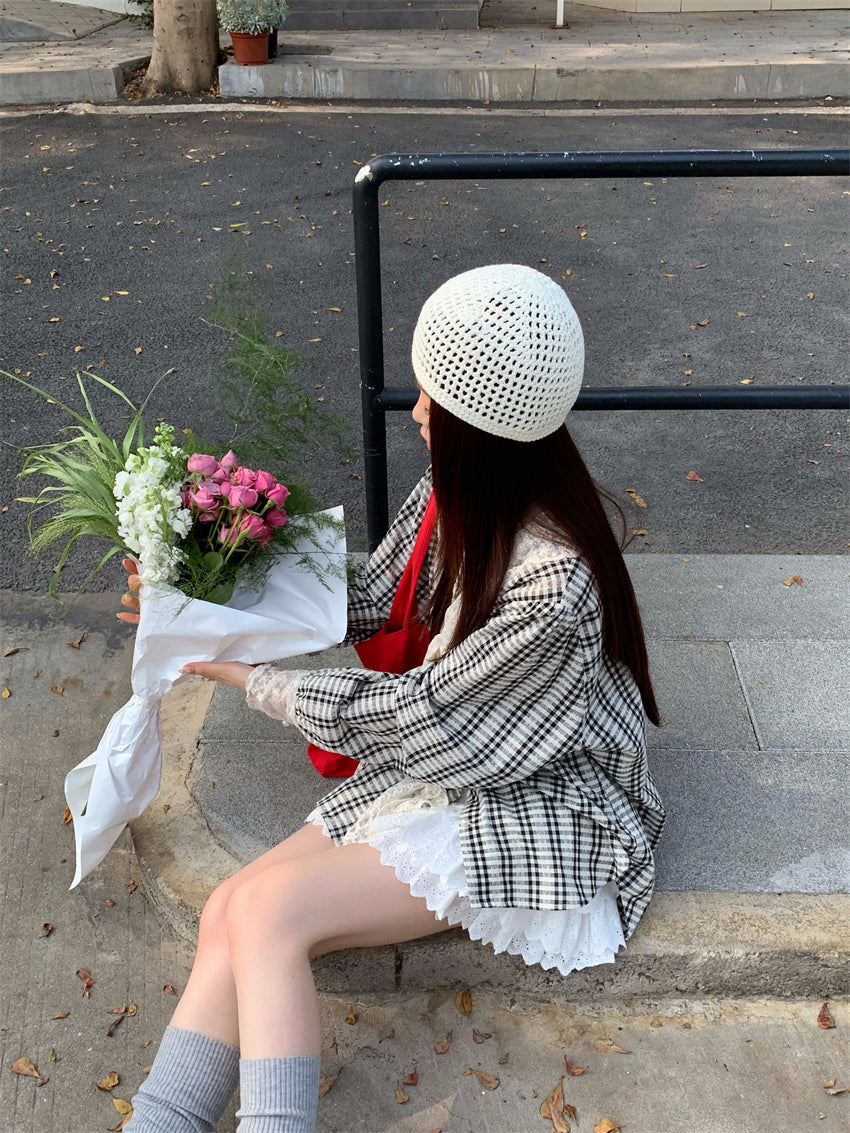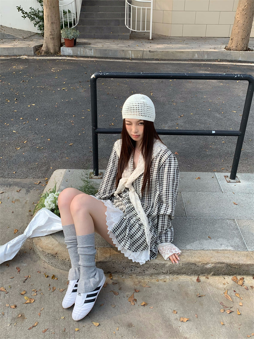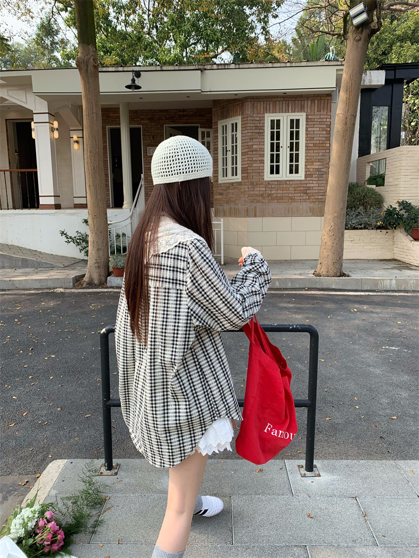 【F60221】實拍韓國原單復古V領襯衫送蕾絲披肩+層層蛋糕短裙(分開下單)250225