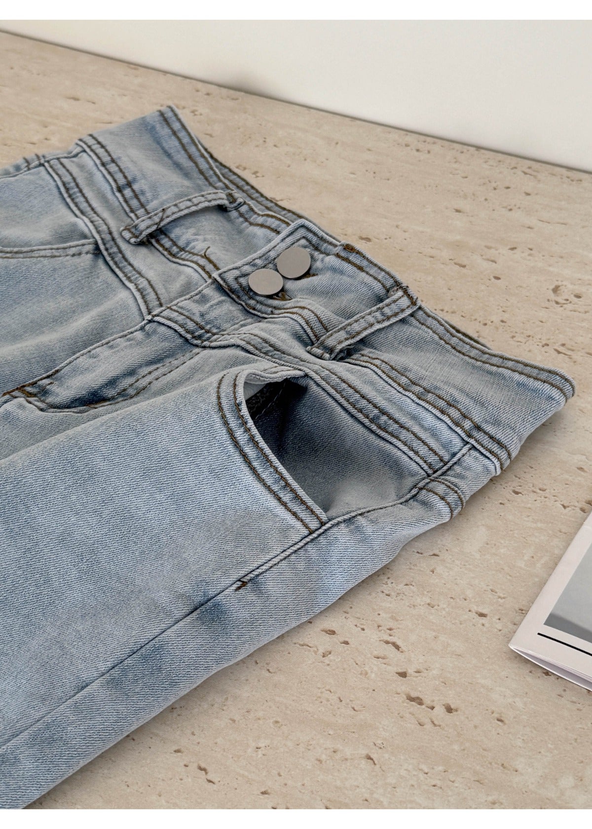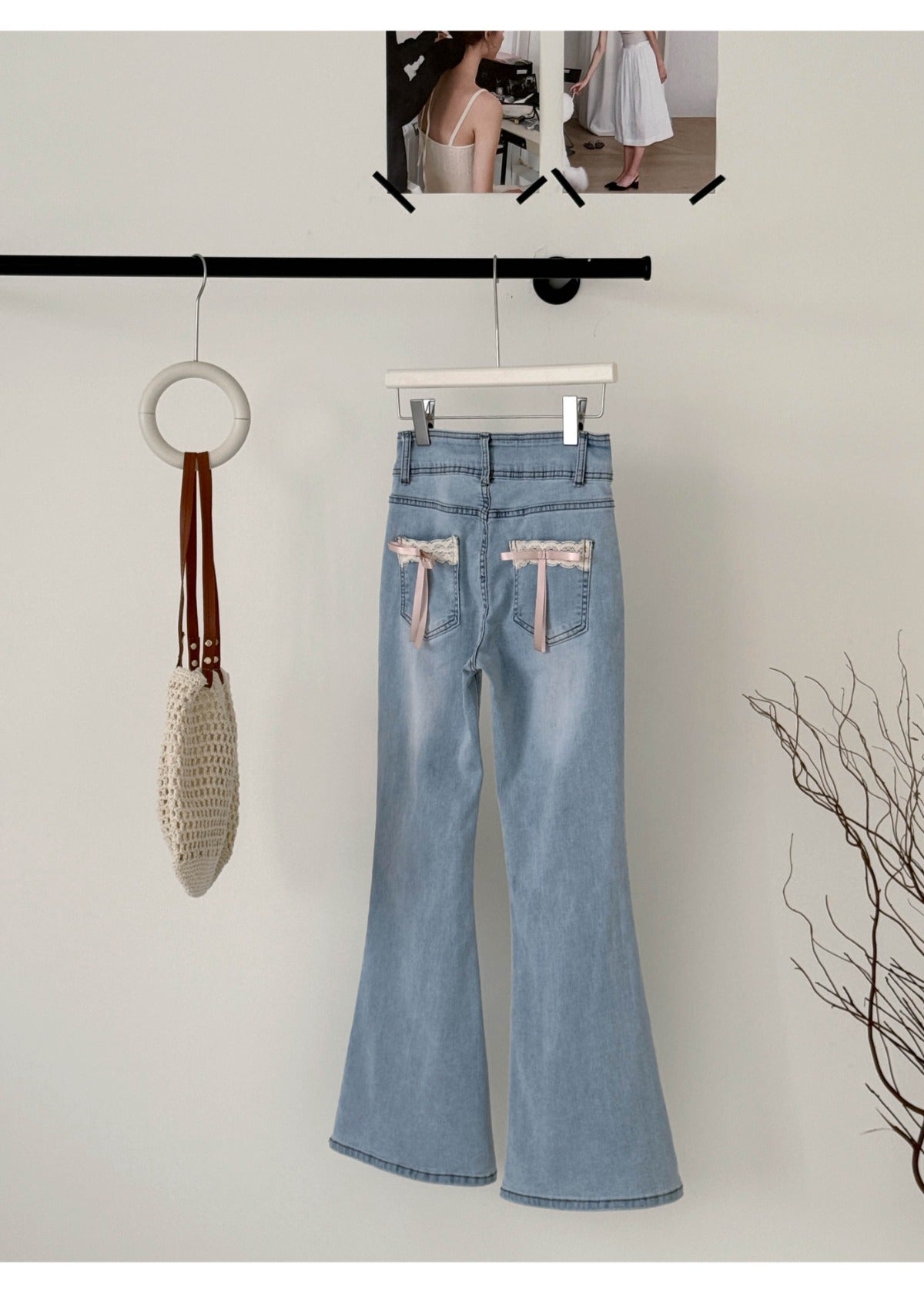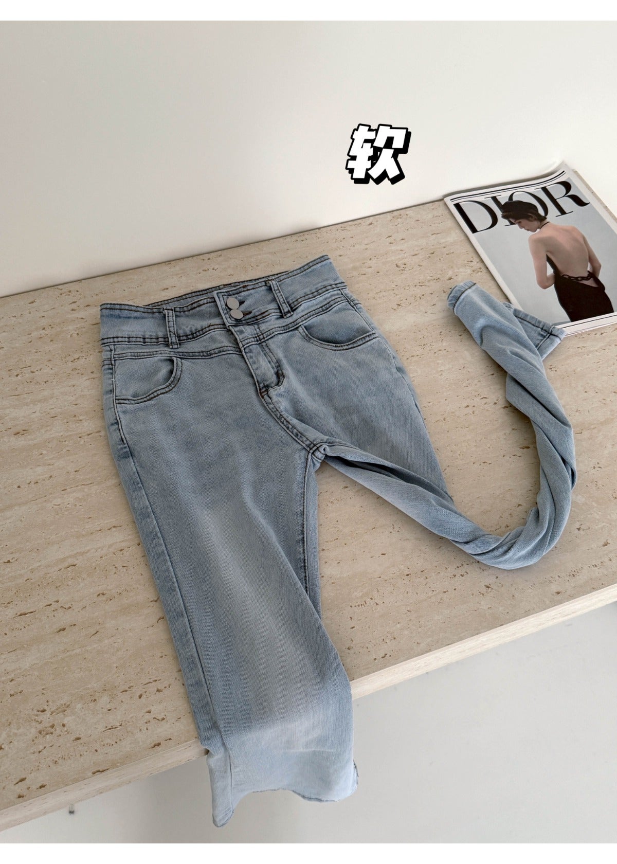 【F60242】實拍夏季高腰顯瘦為芭蕾感喇叭牛仔褲250304