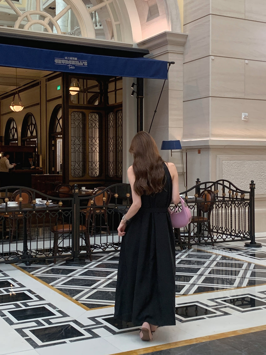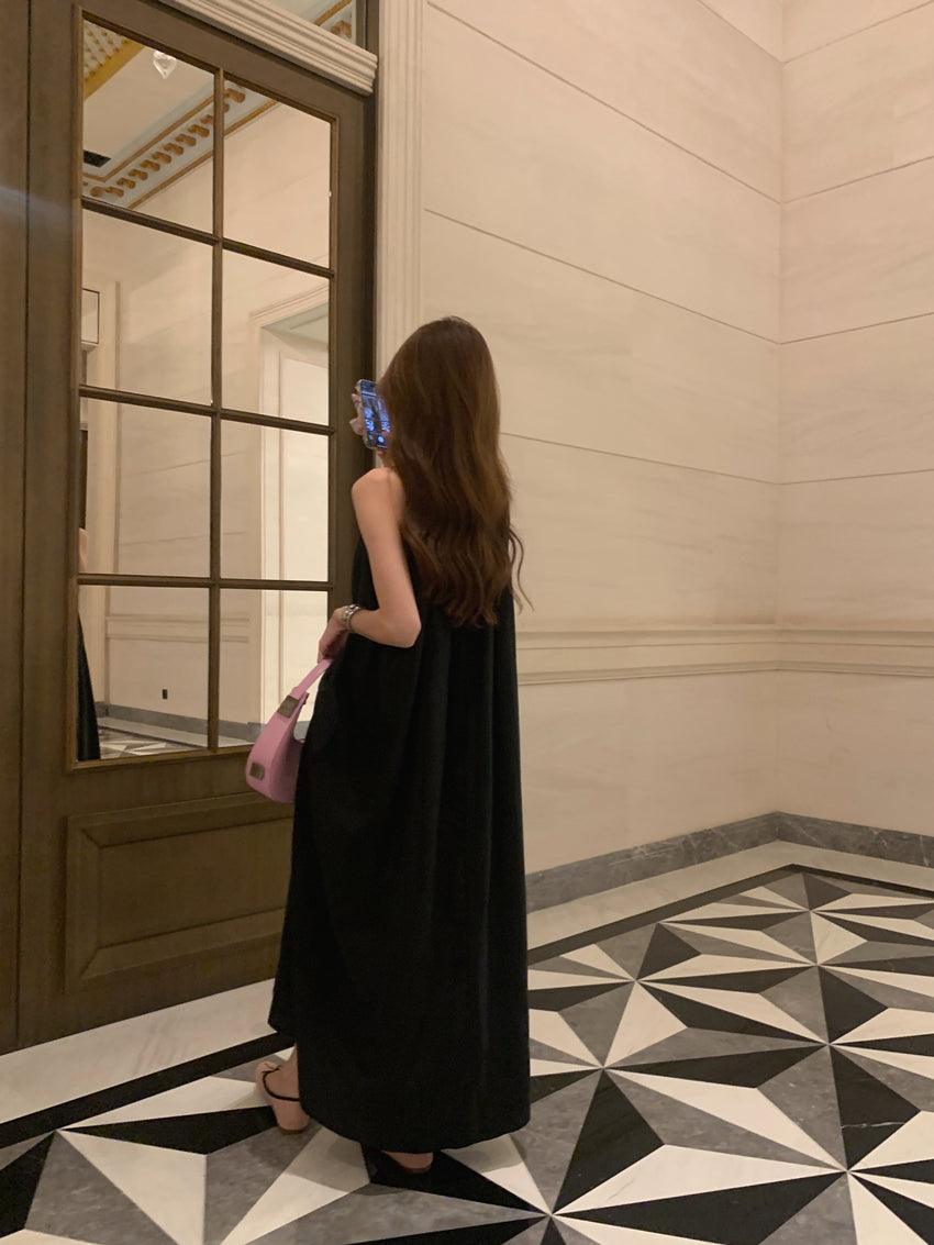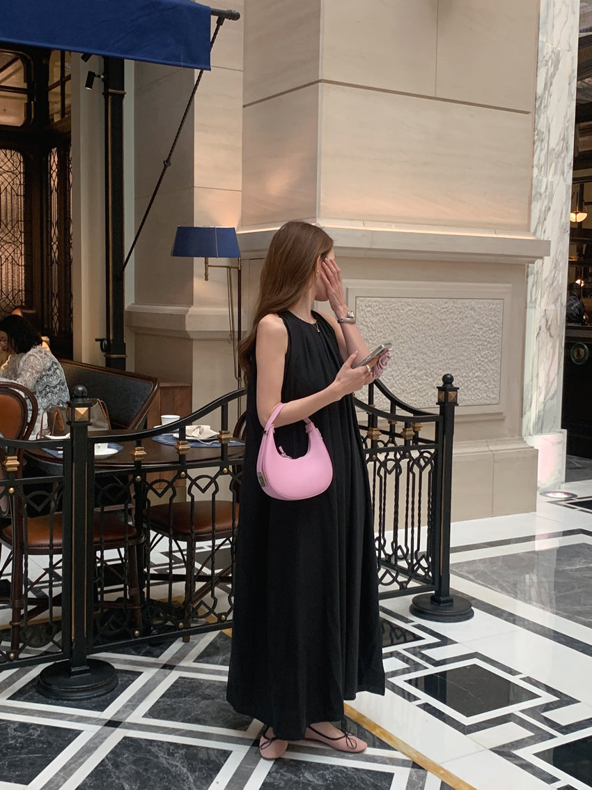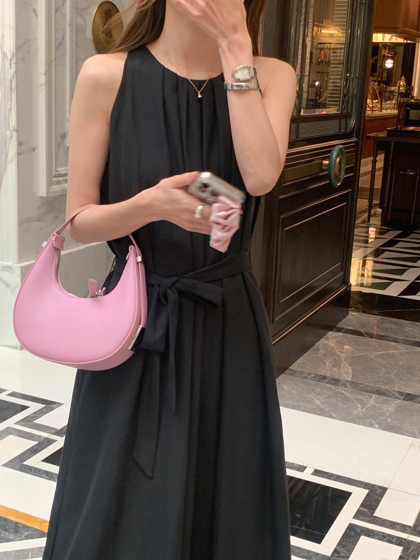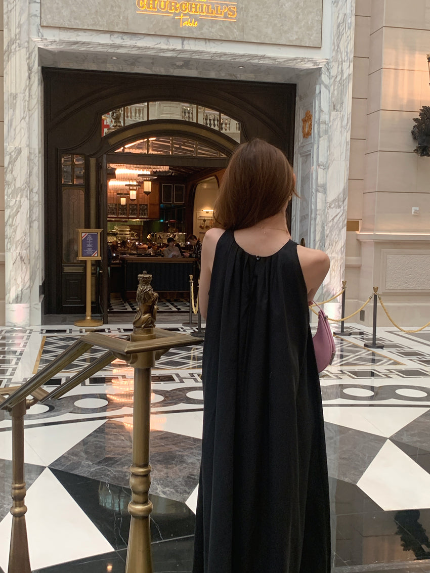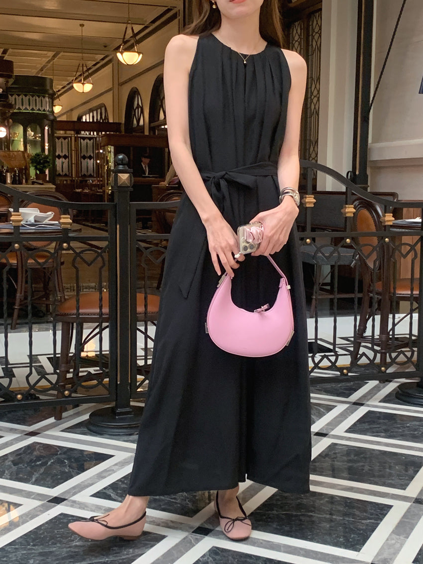 【F60310】實拍度假氣質慵懶 無袖收褶雪紡洋裝250401
