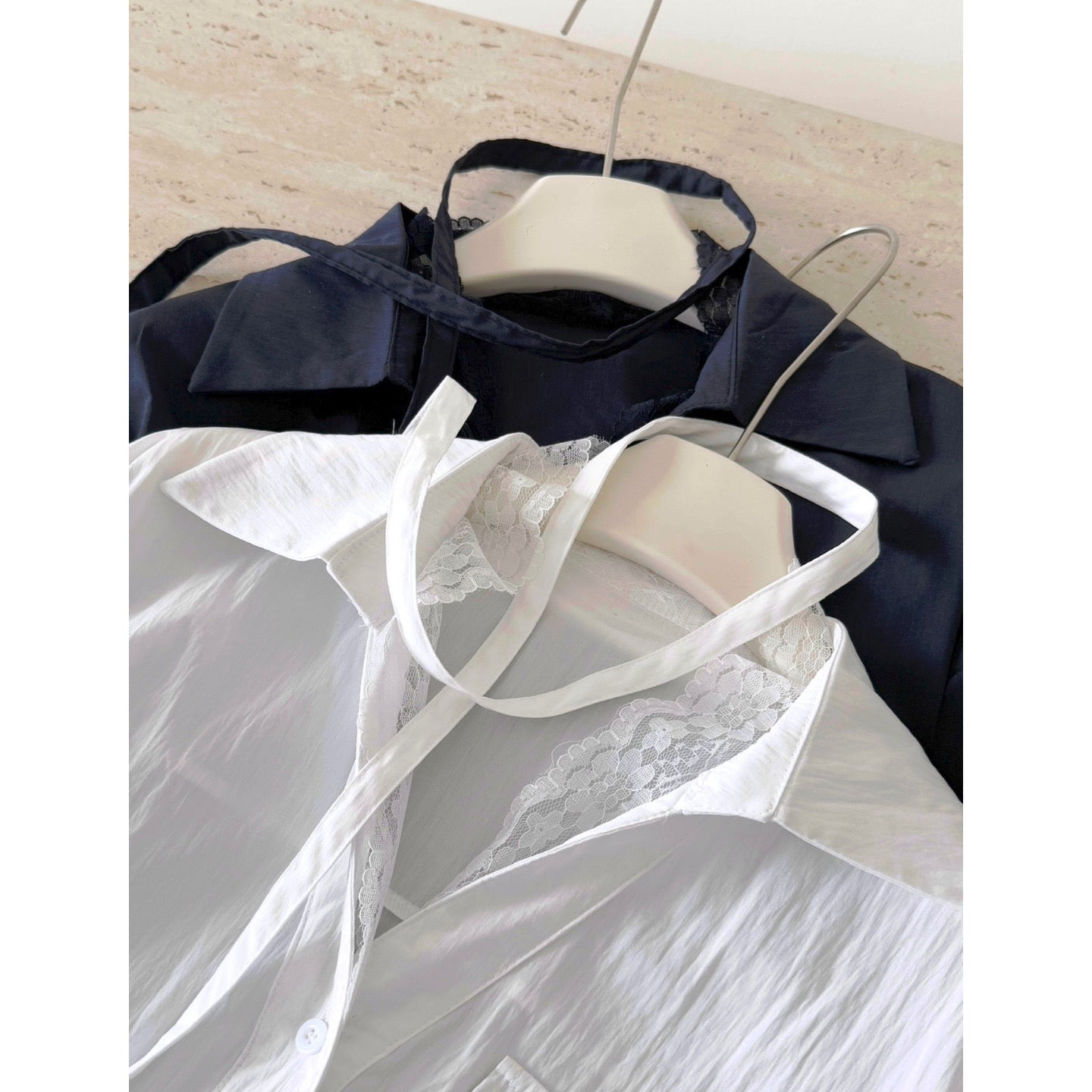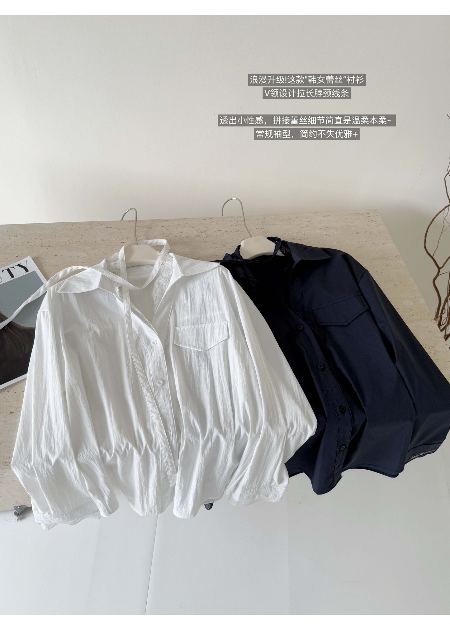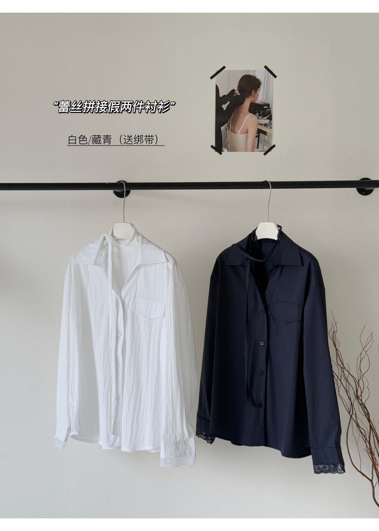 【F60317】實拍春夏綁帶蕾絲襯衫(天絲60)250401