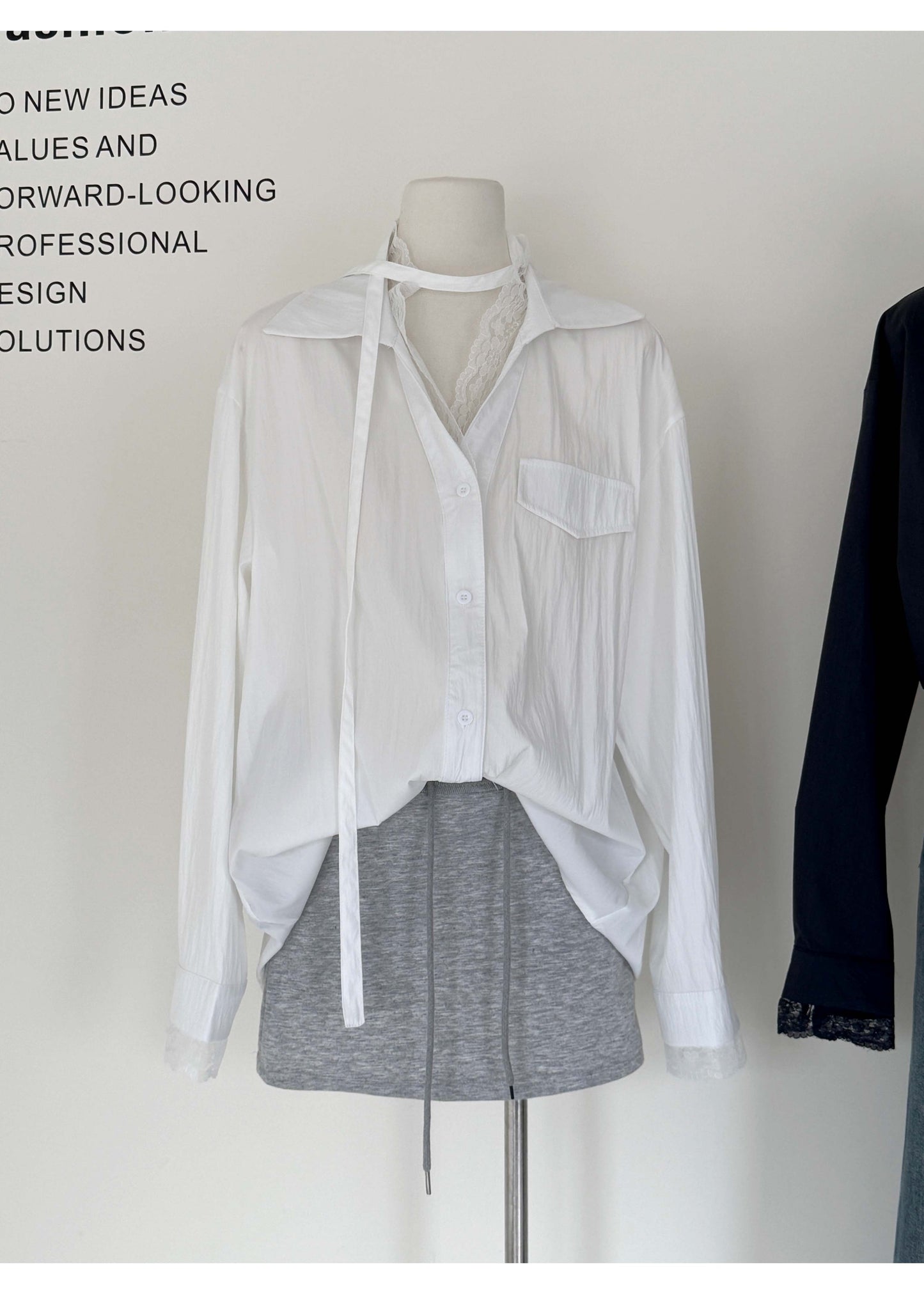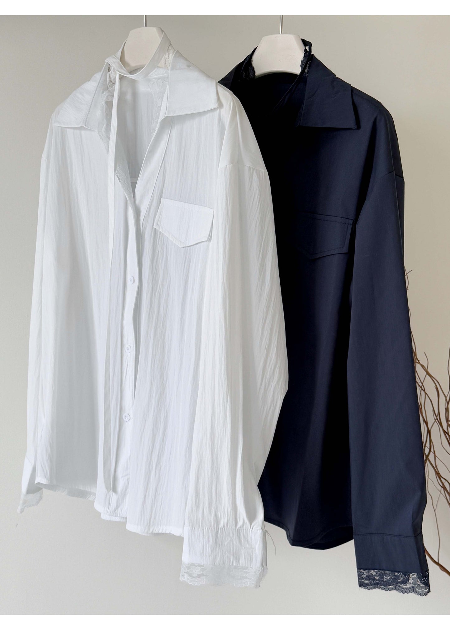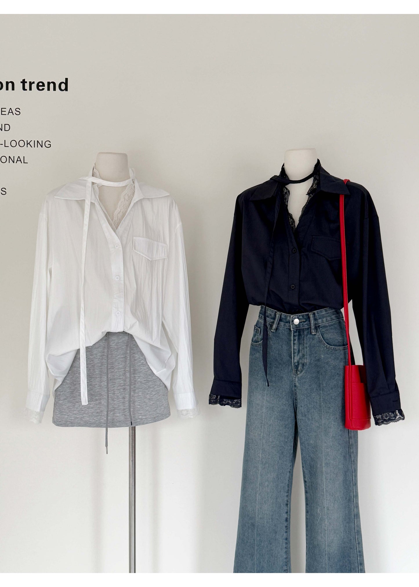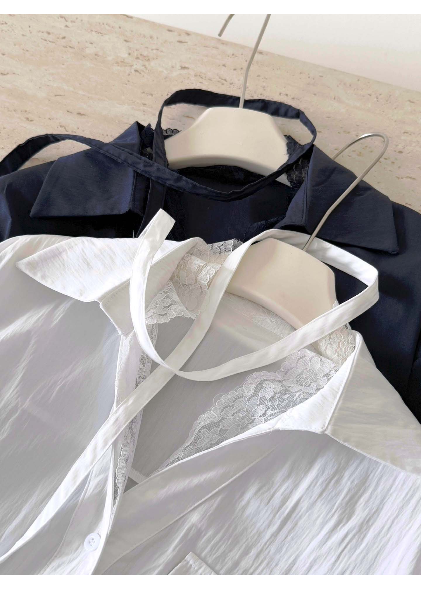 【F60317】實拍春夏綁帶蕾絲襯衫(天絲60)250401