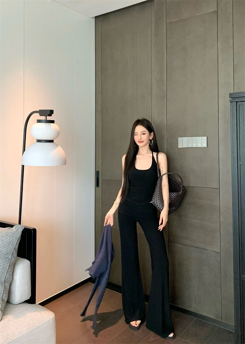 【F60327】實拍美式舒適微喇叭超顯瘦長褲+含胸墊背心 套裝250408