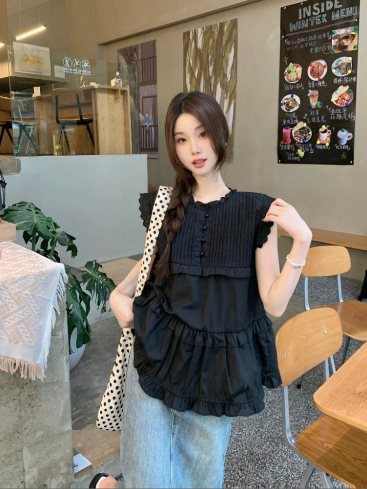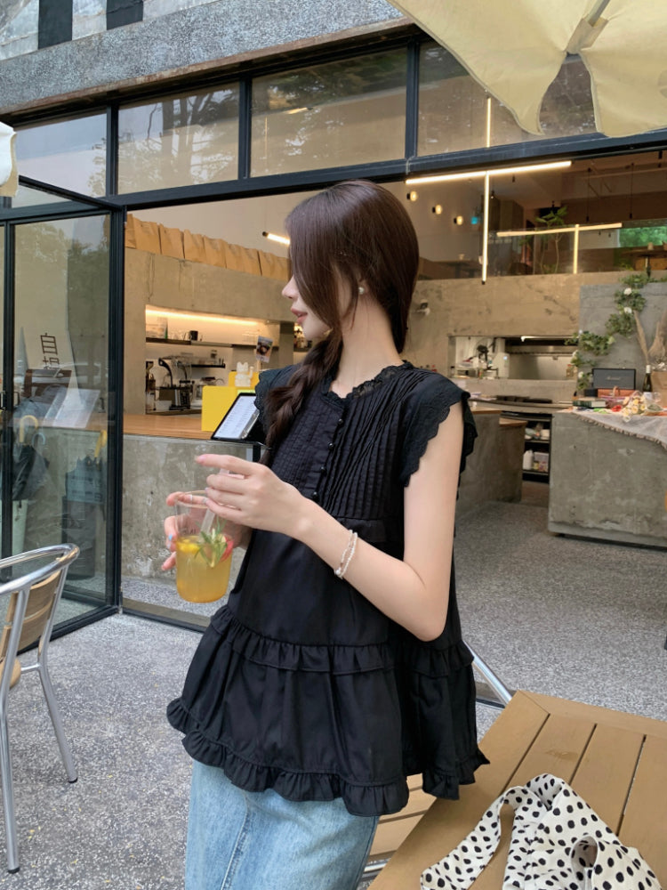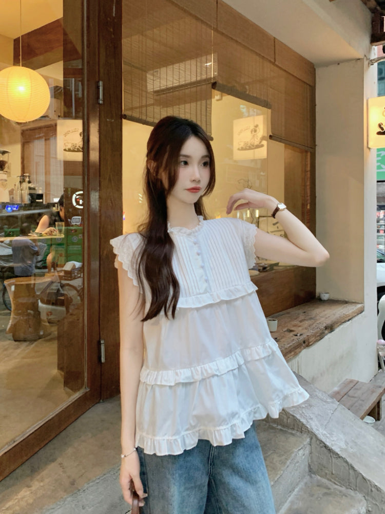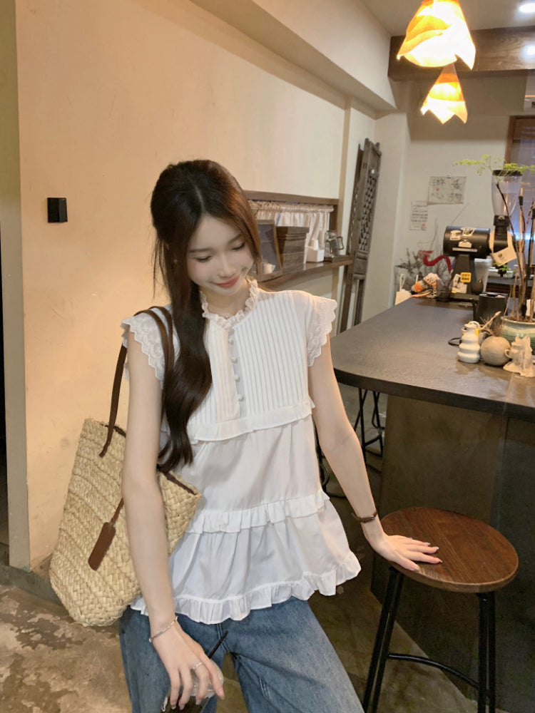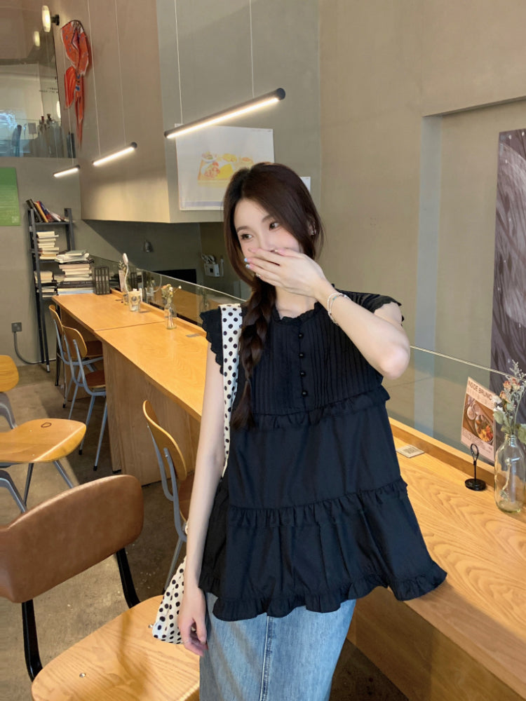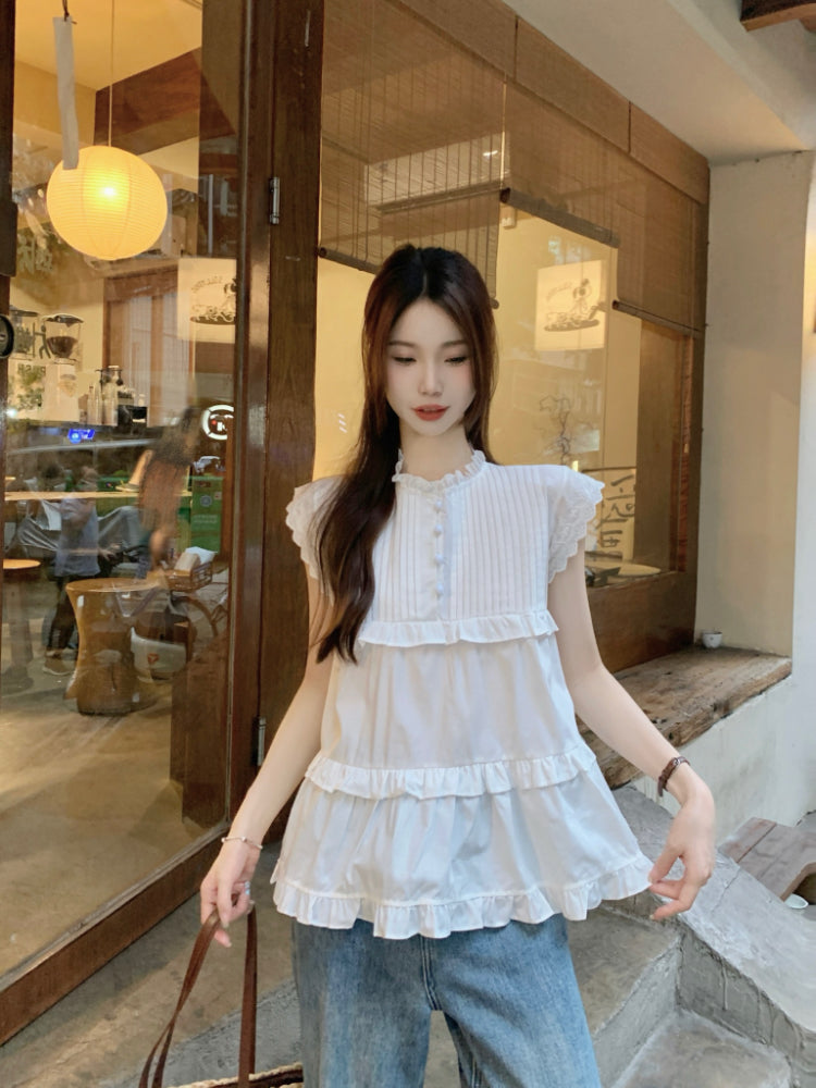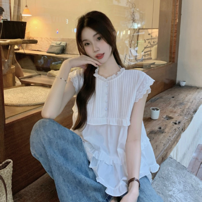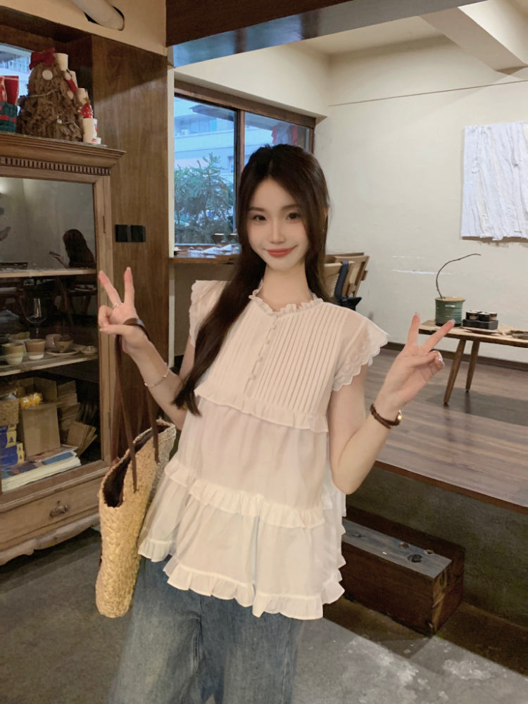 【F60343】實拍夏日甜美壓摺飛飛袖襯衫250408