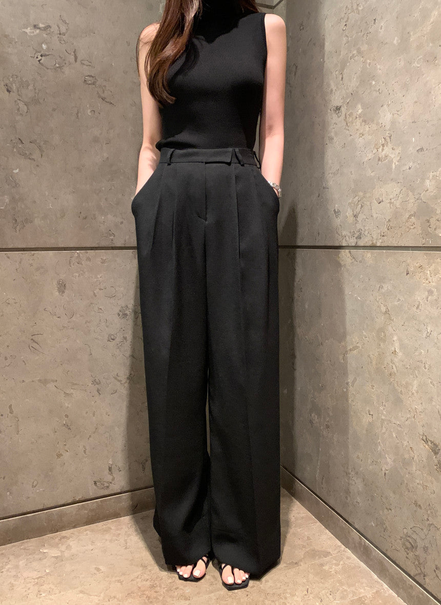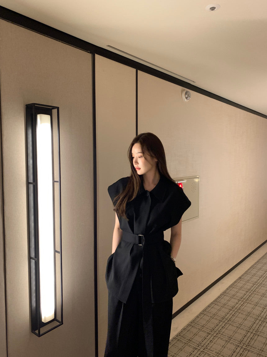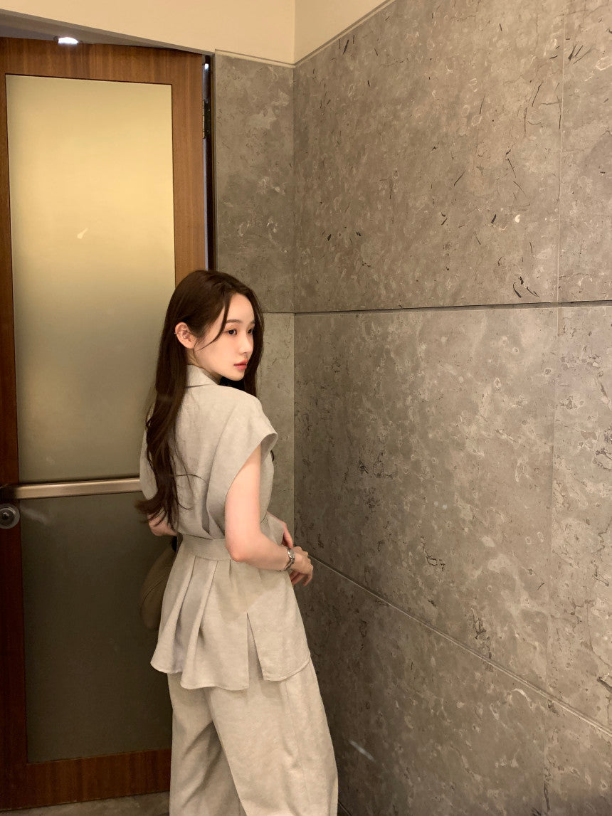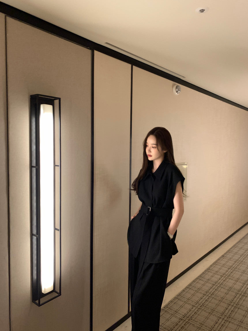 【F60356】夏季法式簡約繫帶襯衫+高腰闊腿褲 套裝250408