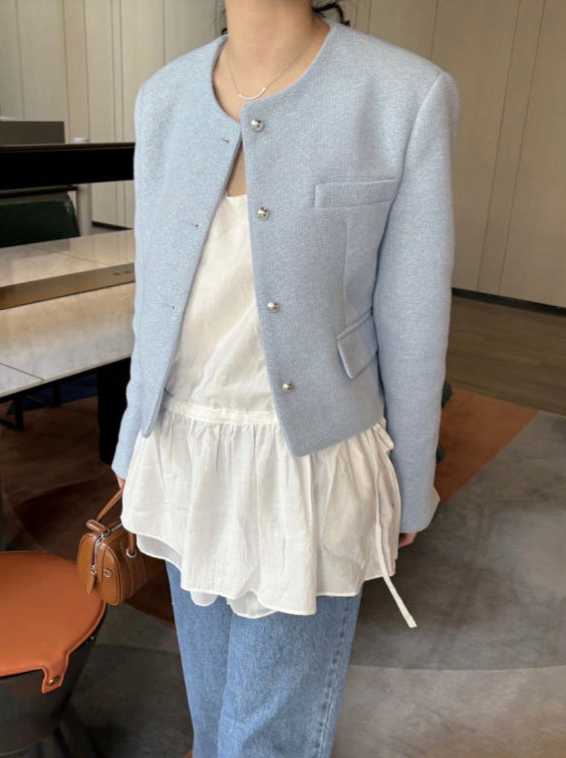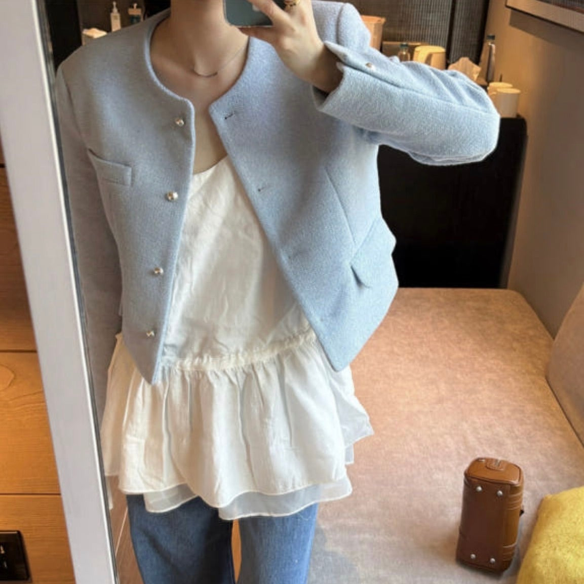 【F60357】韓國夏季法式微甜芭蕾抽繩收腰上衣短洋250408
