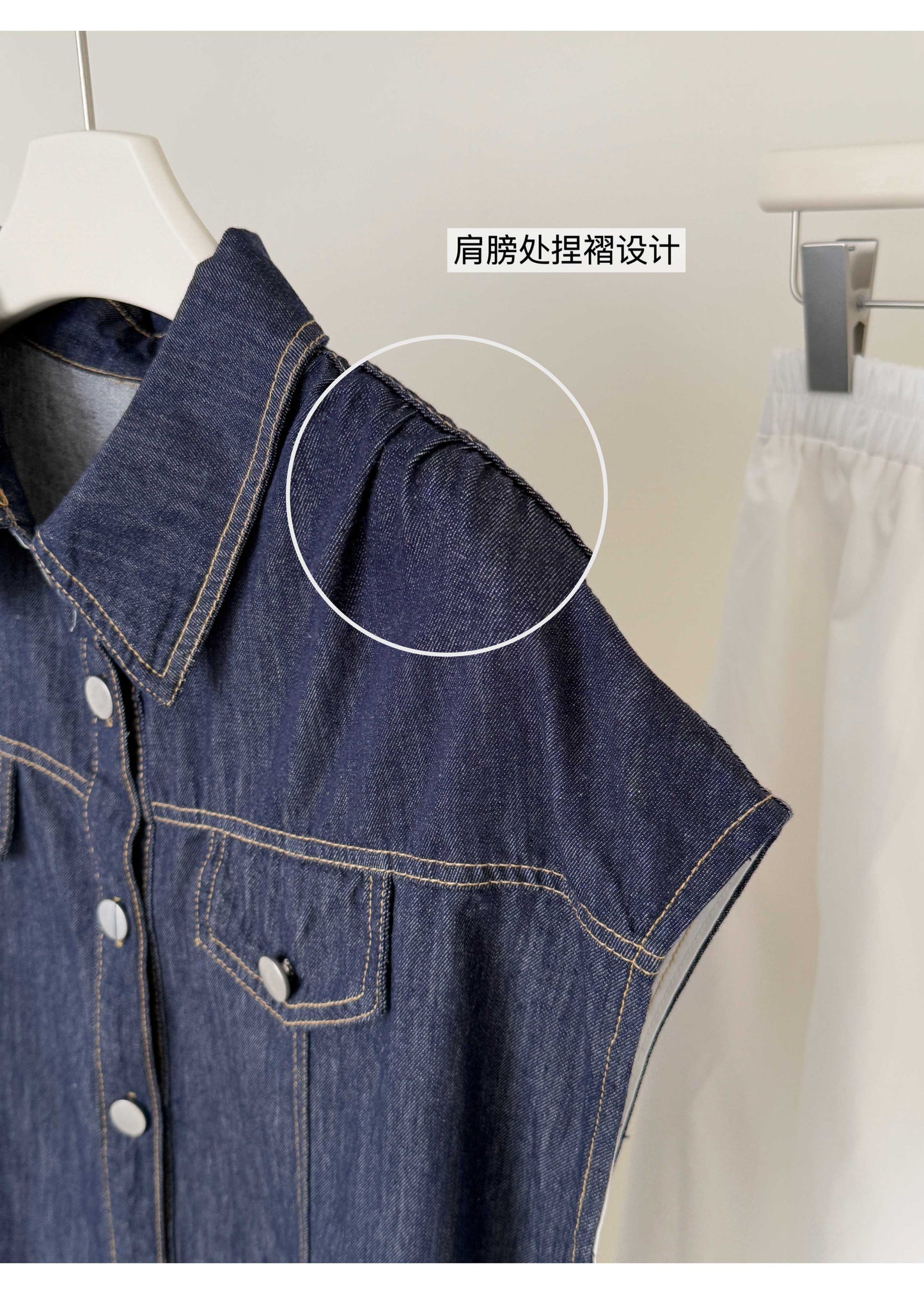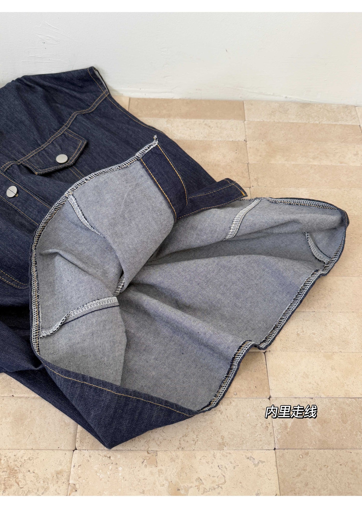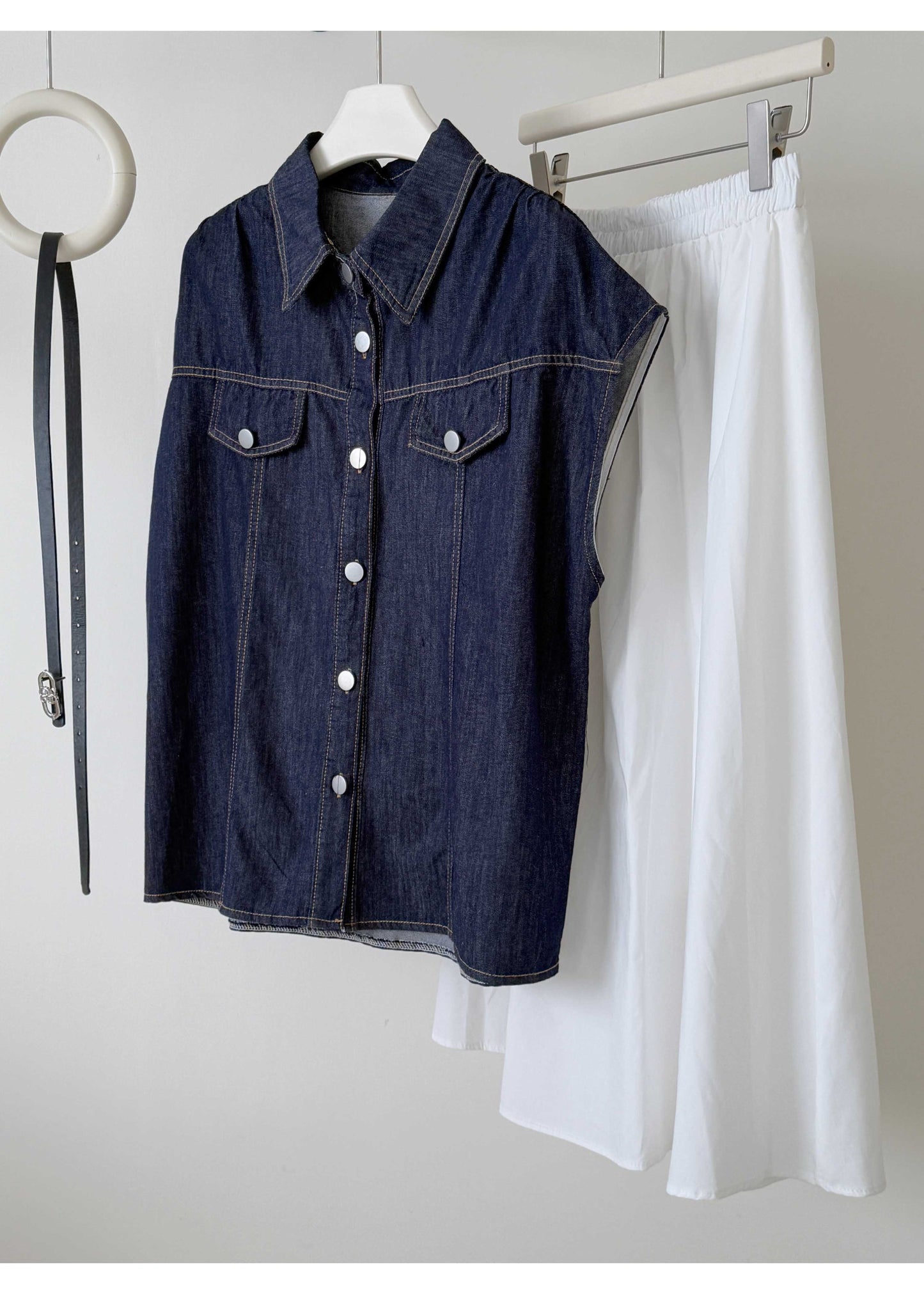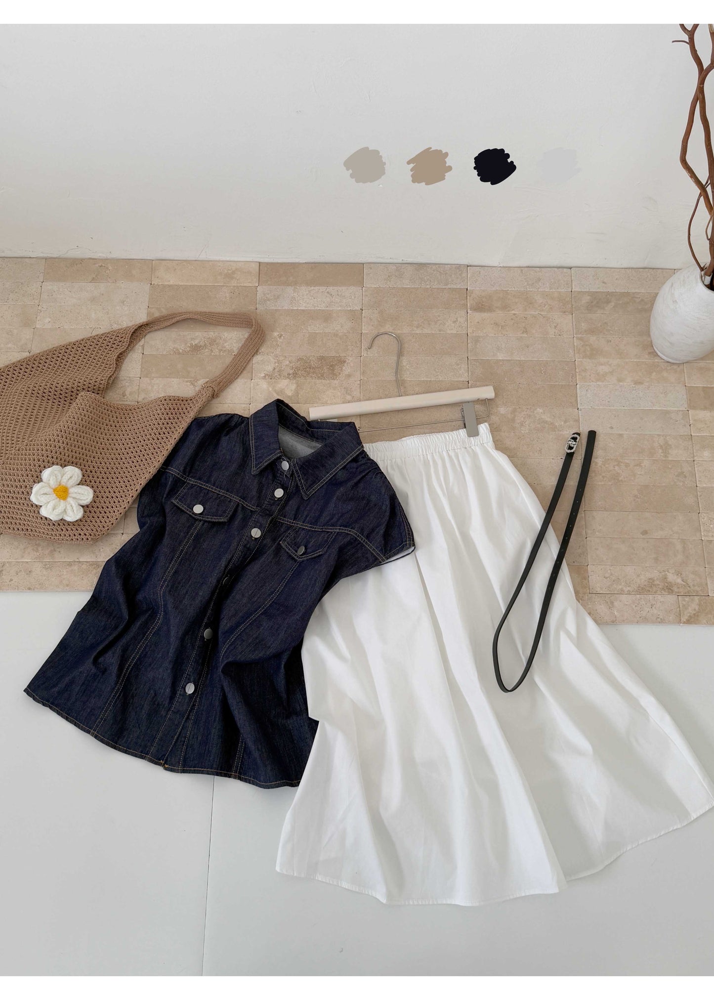 【F60364】夏季小眾設計感套裝|牛仔襯衫+高腰a字裙含腰帶250512