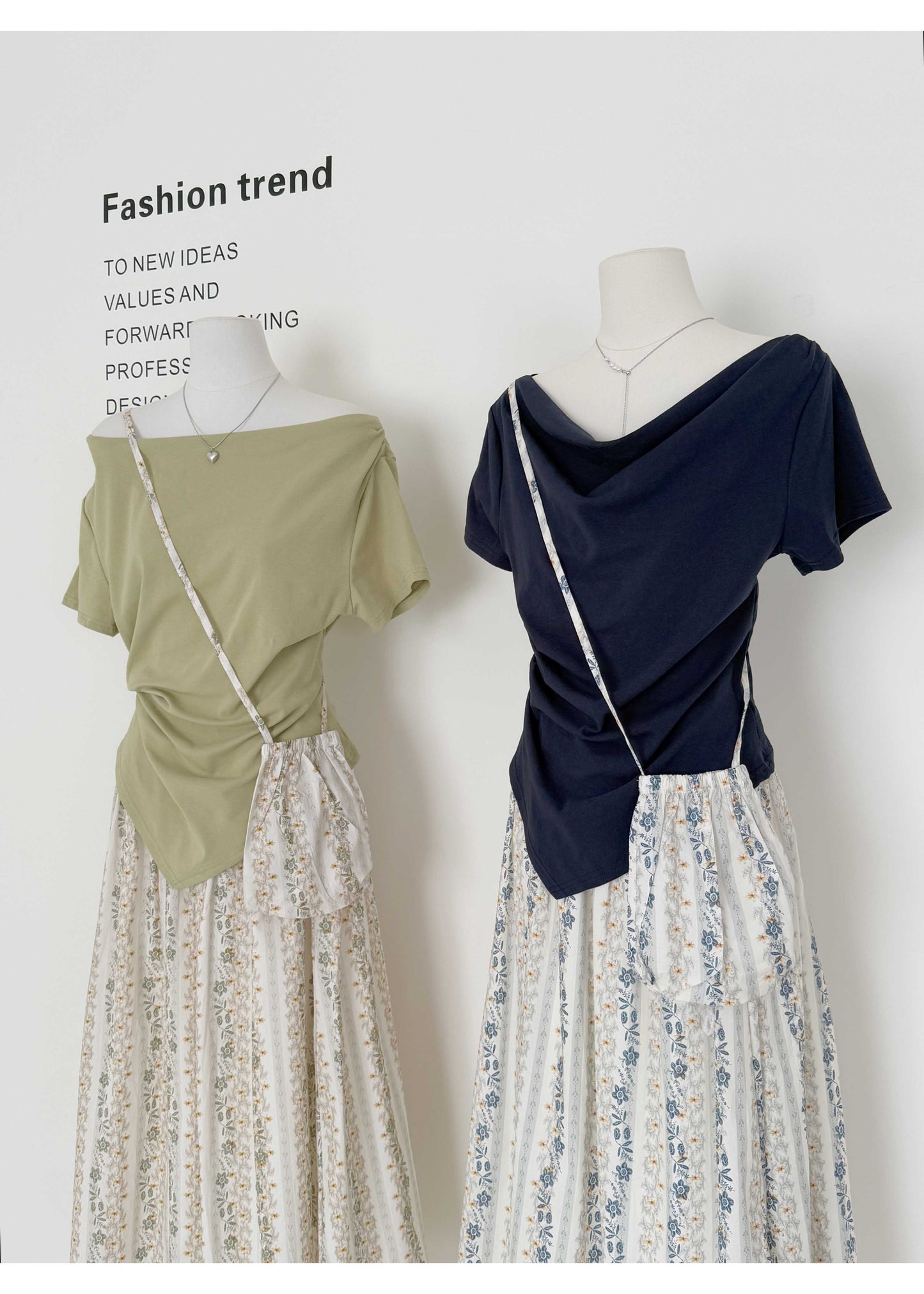【F60365】實拍夏季小眾碎花洋裝三件組|不規則上衣+a字裙+斜背包250512