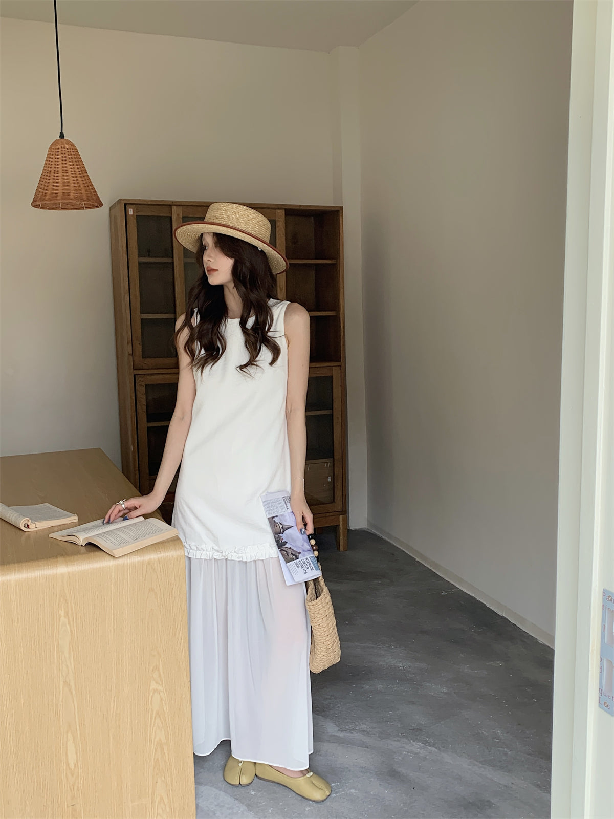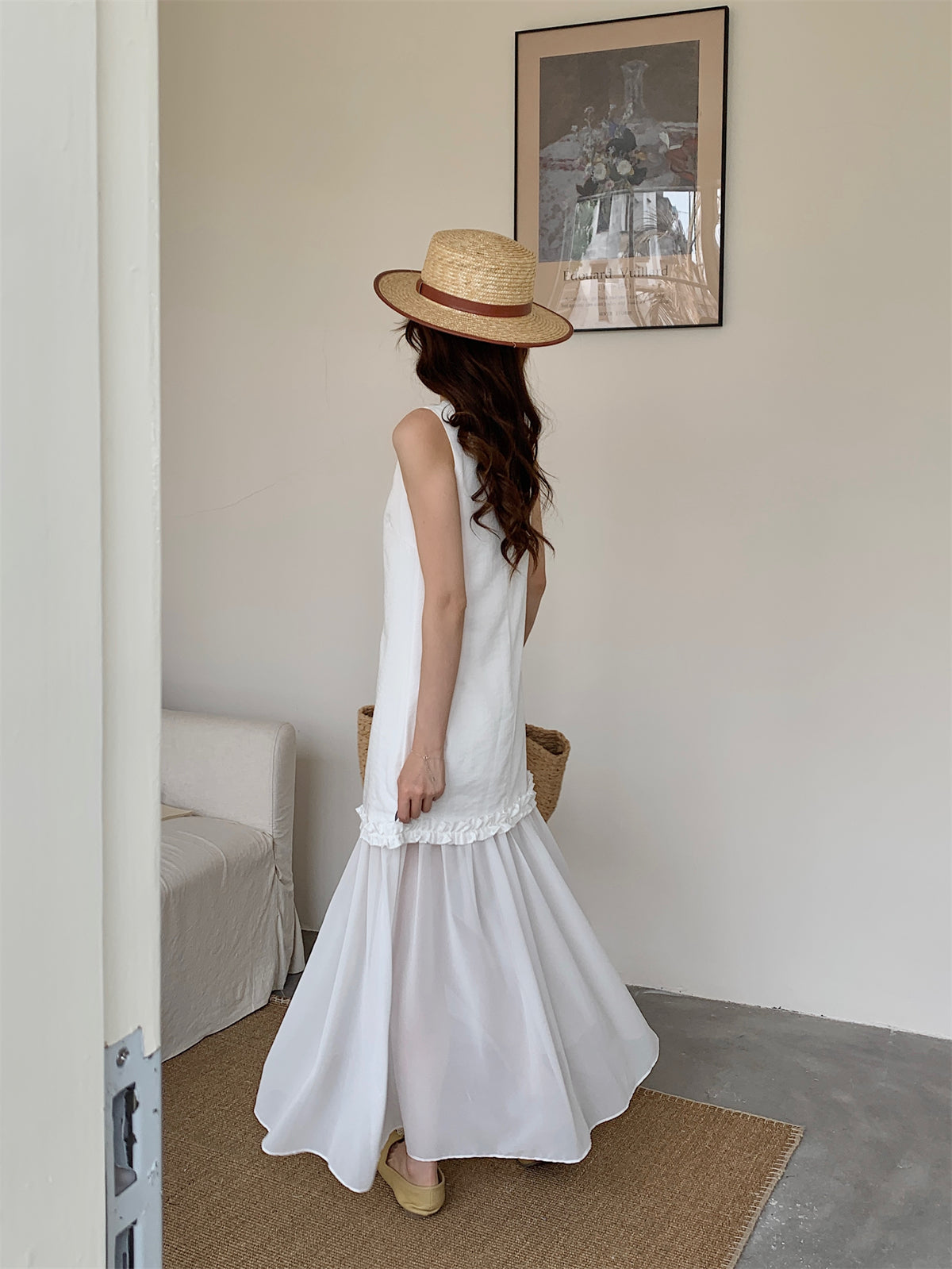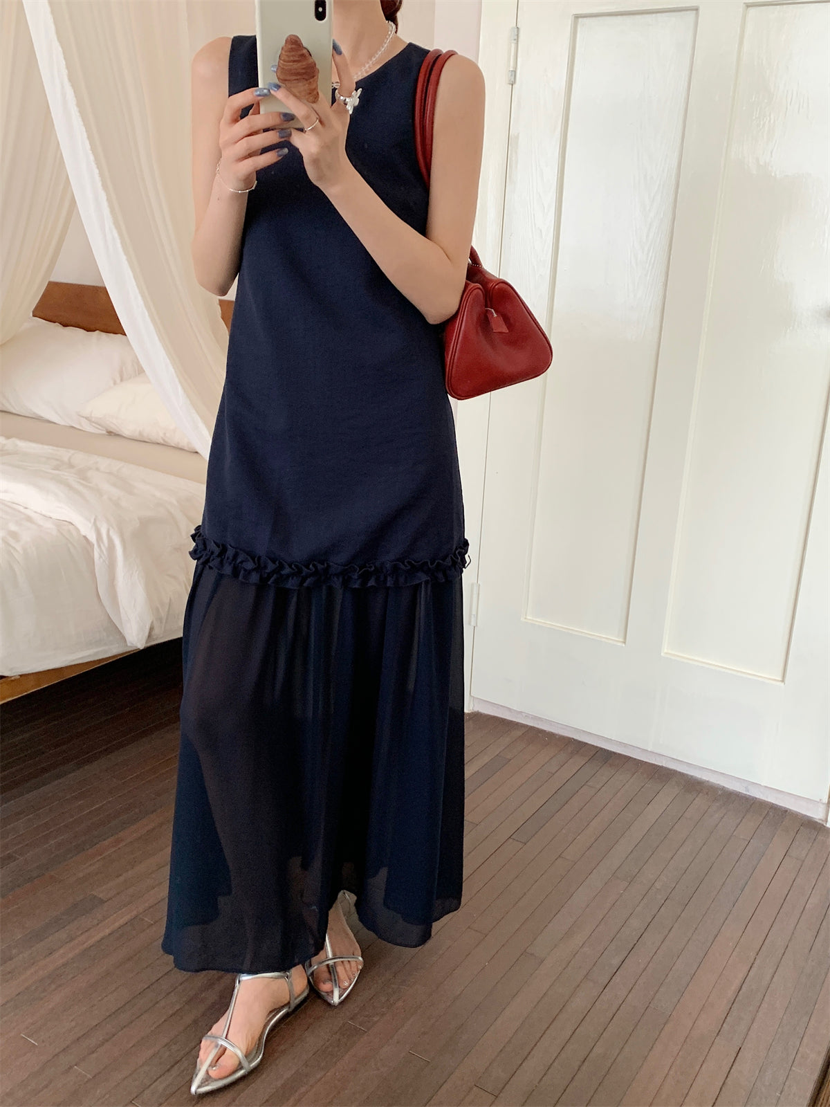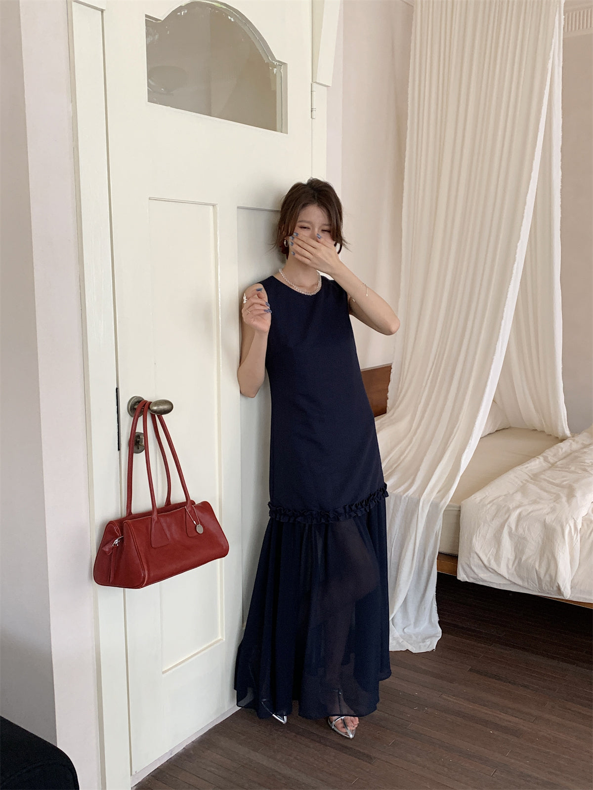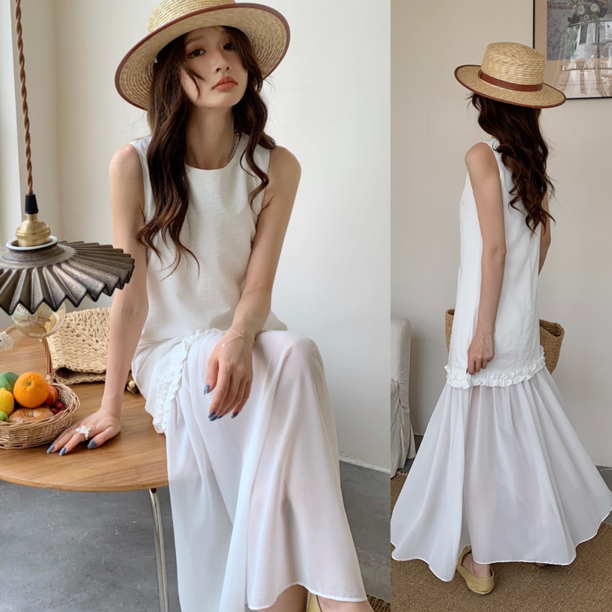 【F60375】實拍夏天高級感假兩件雪紡拼接洋裝250512