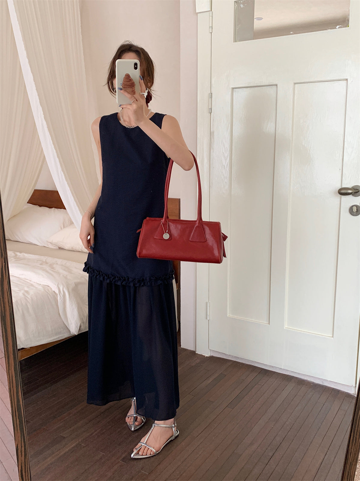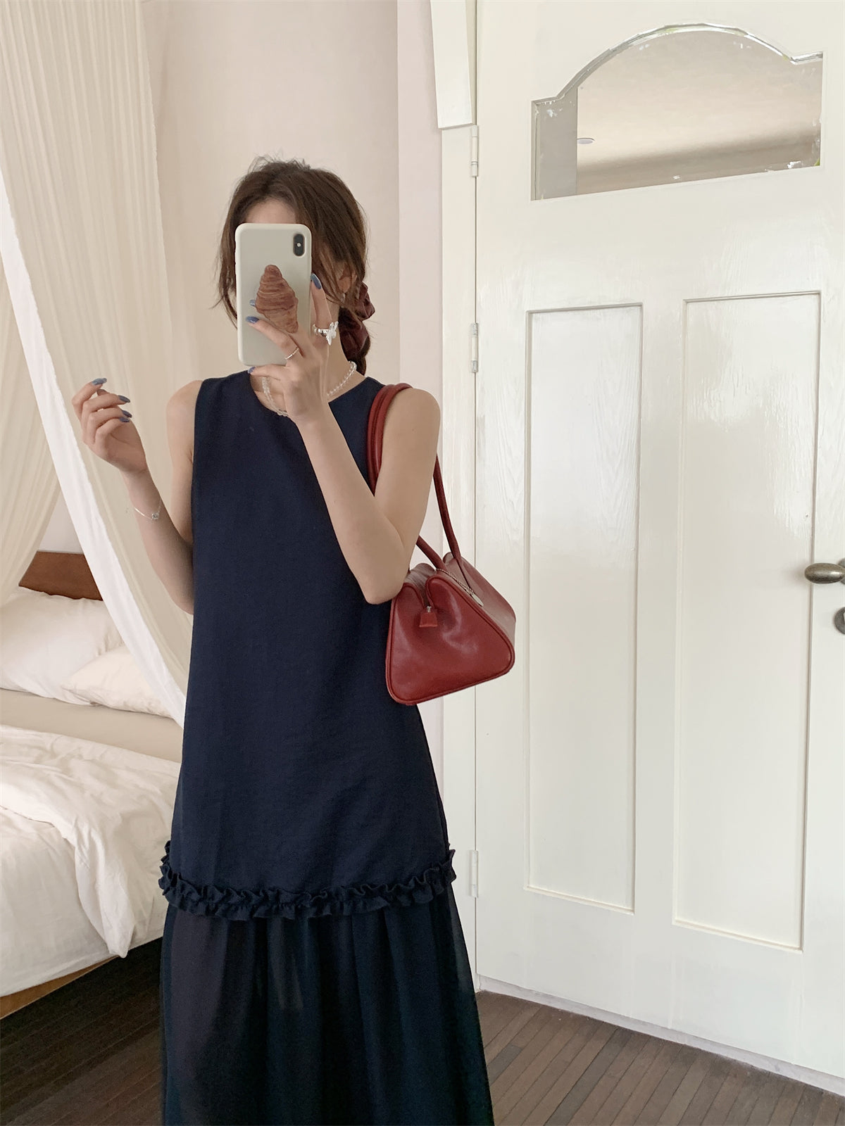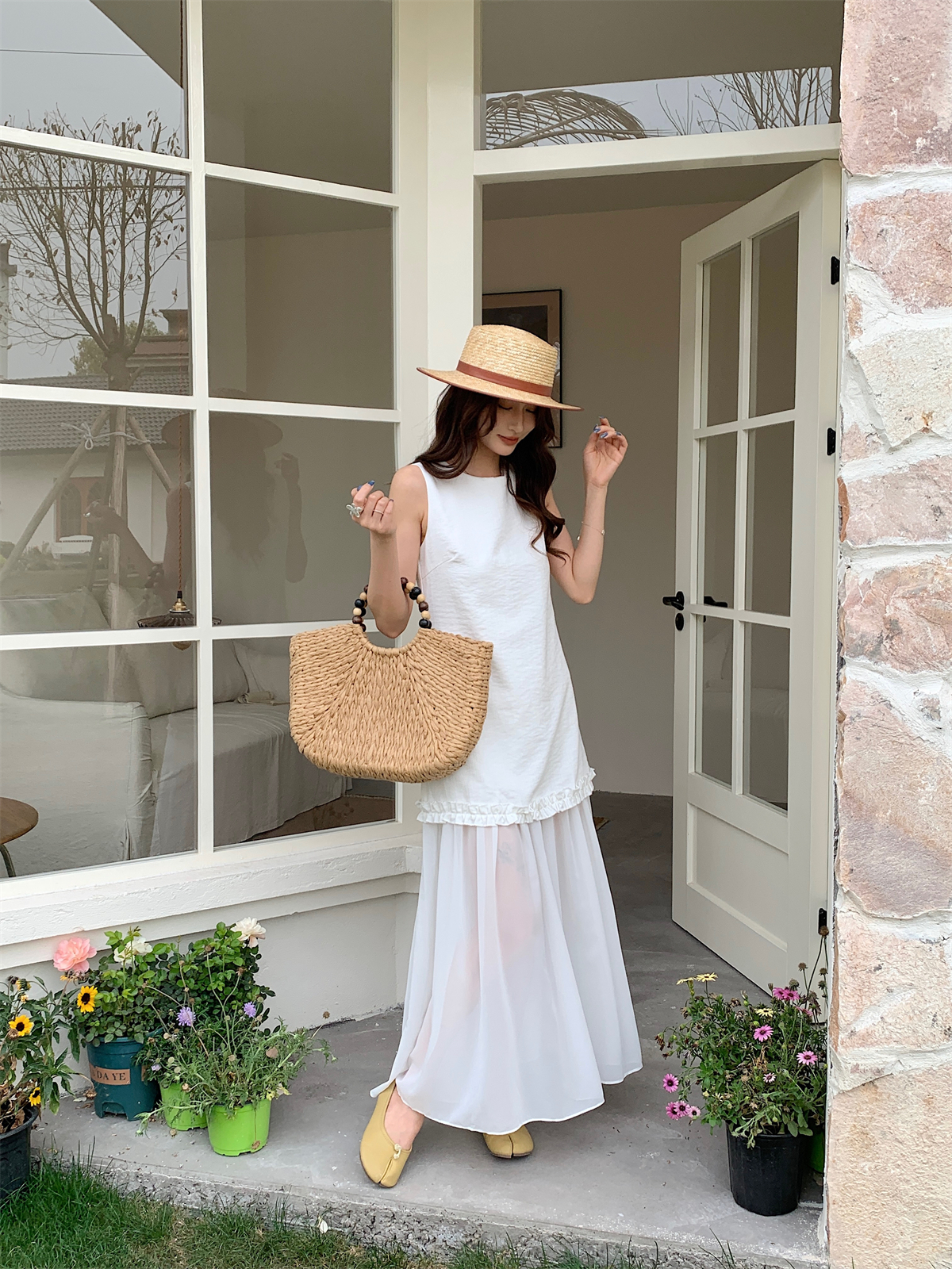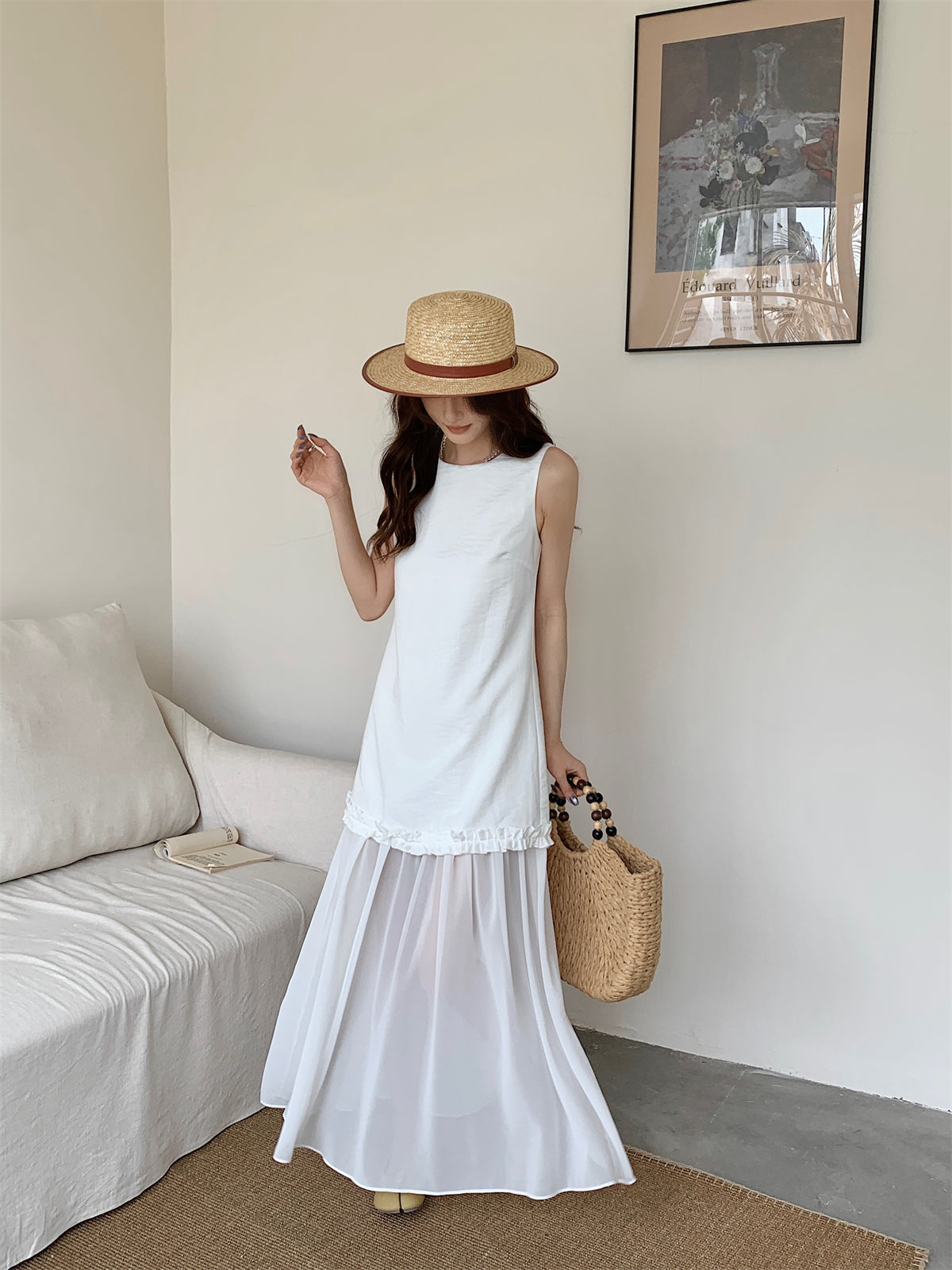 【F60375】實拍夏天高級感假兩件雪紡拼接洋裝250512