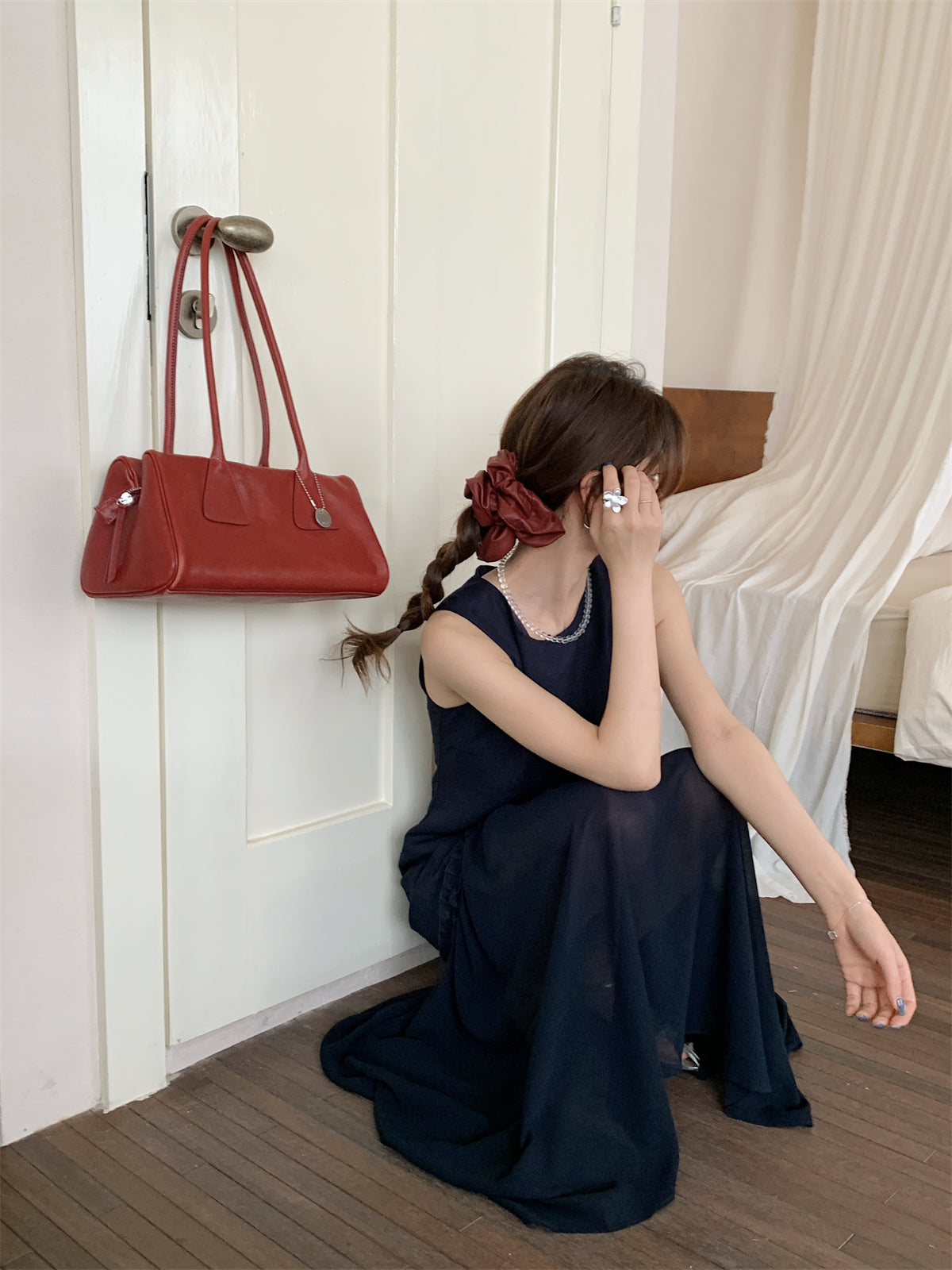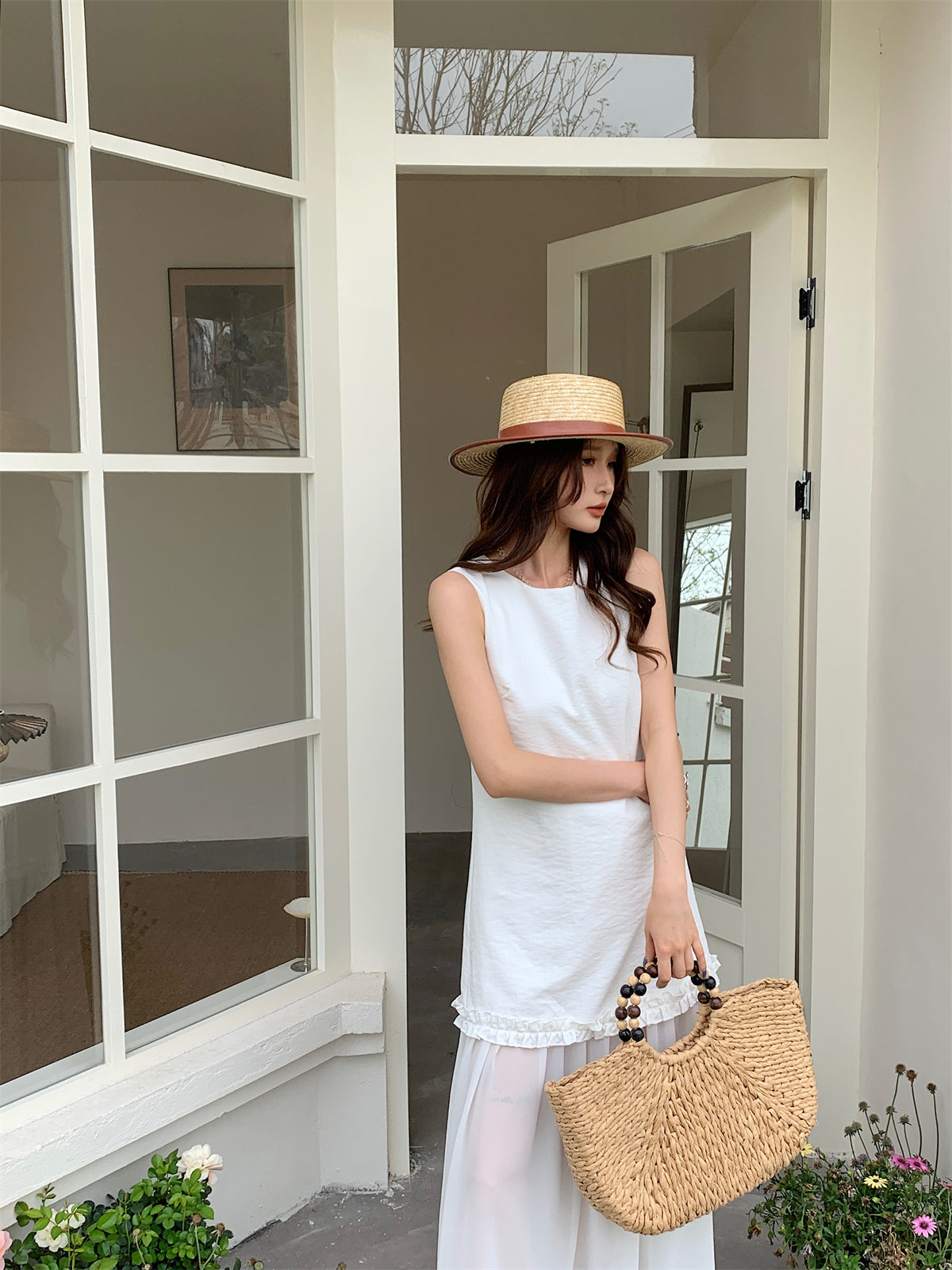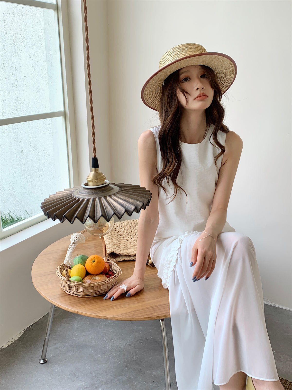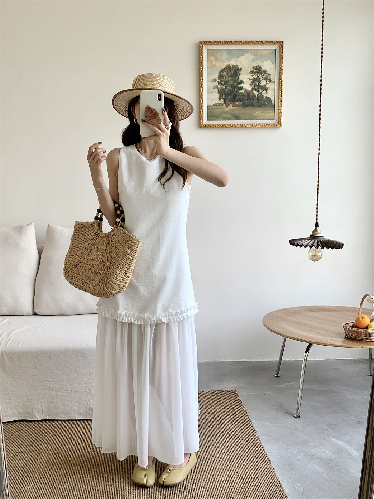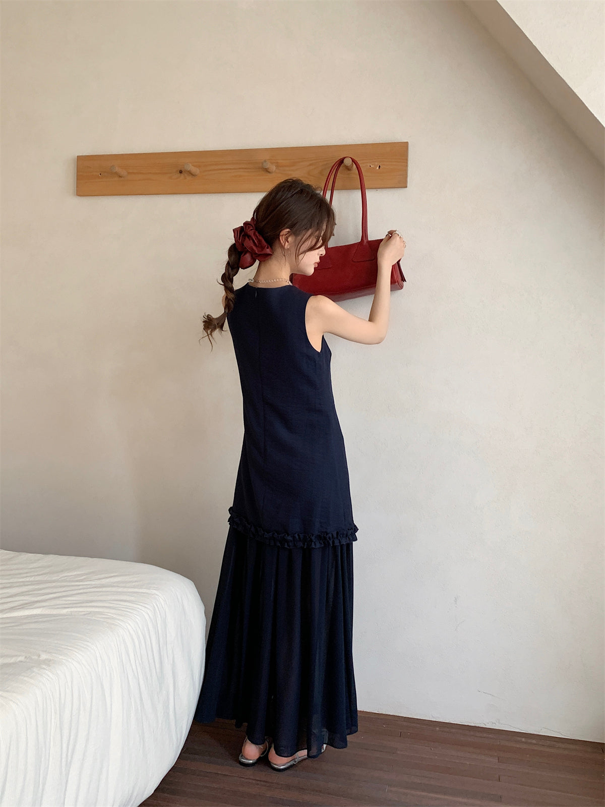 【F60375】實拍夏天高級感假兩件雪紡拼接洋裝250512