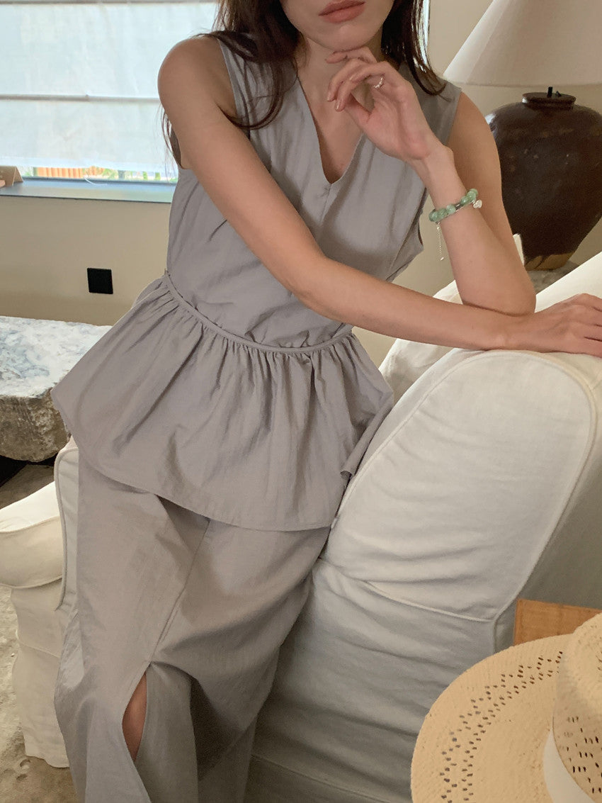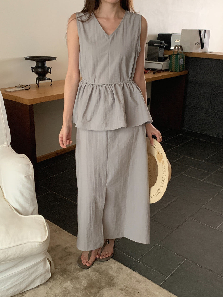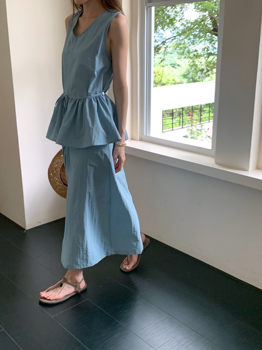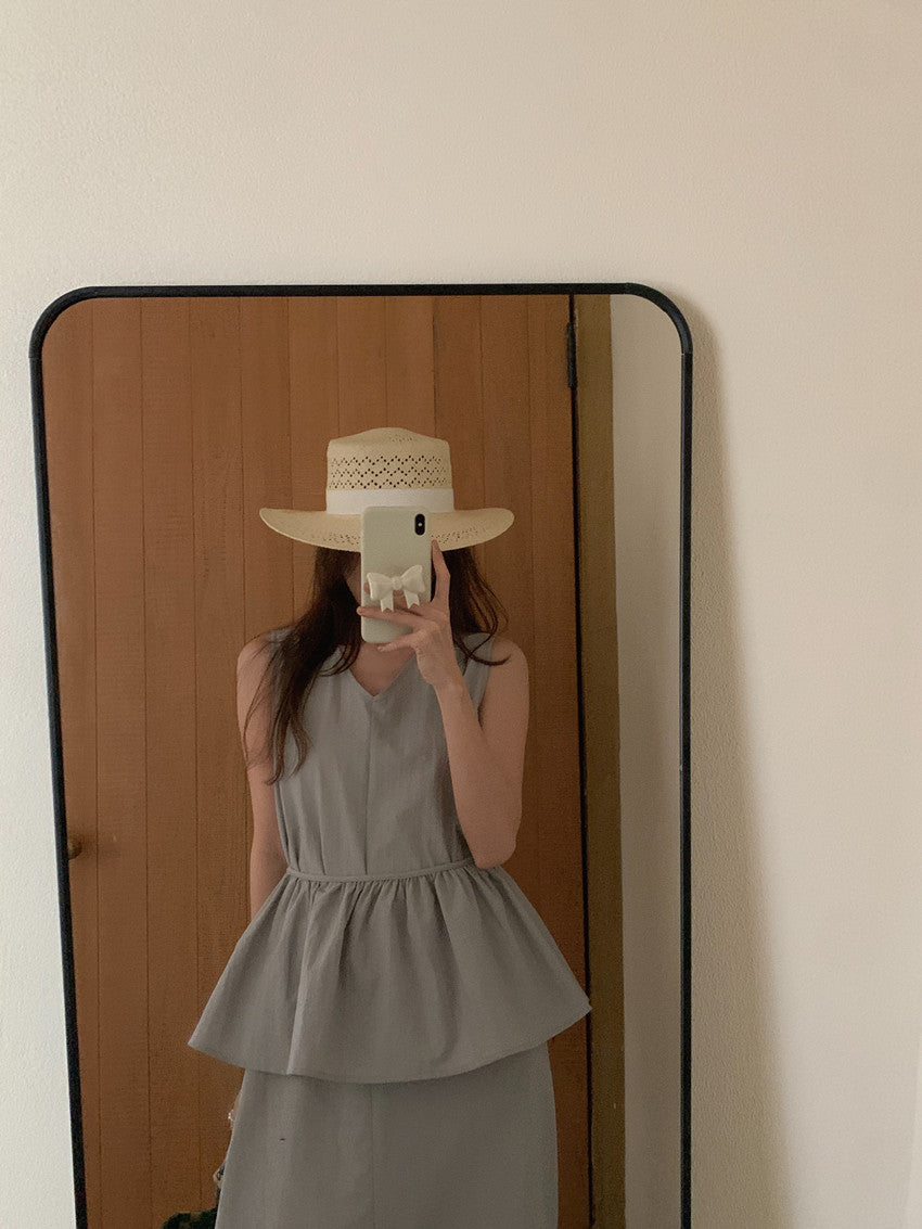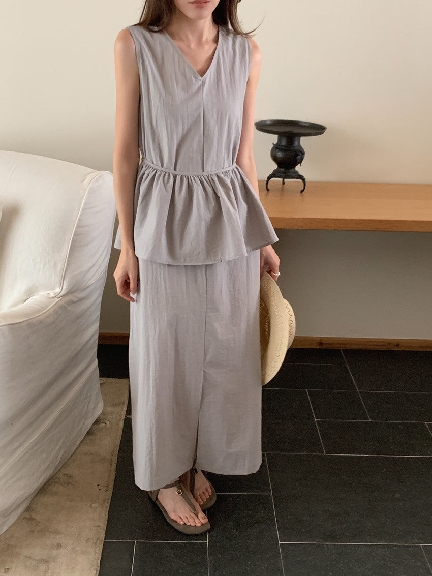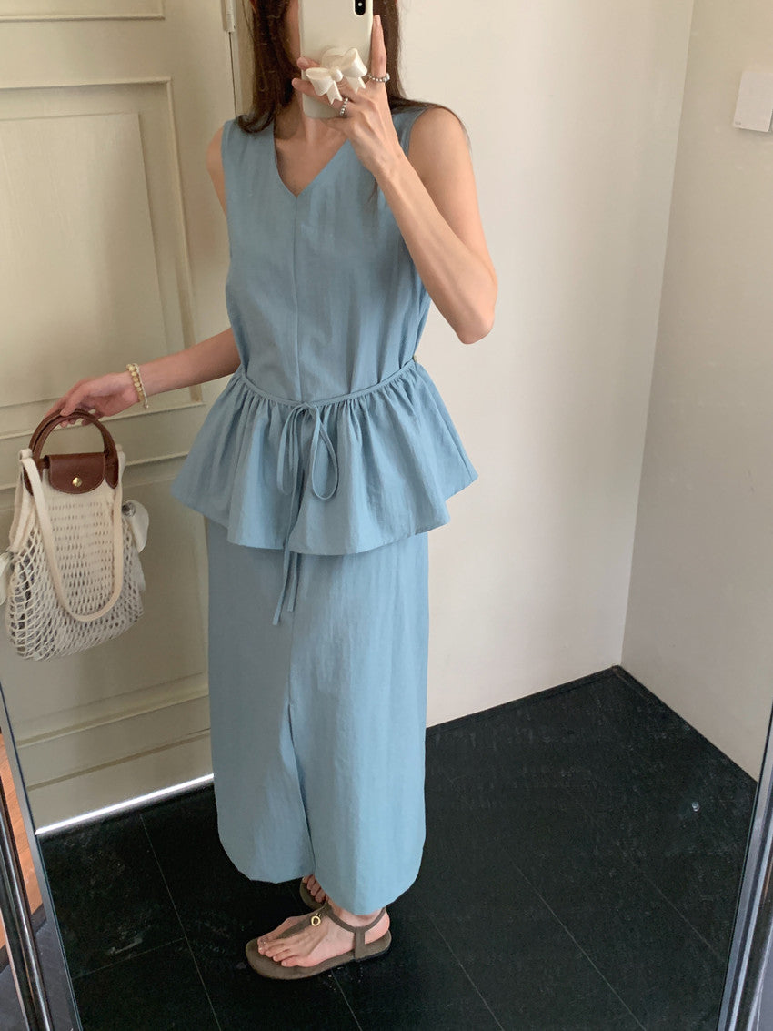 【F60380】實拍夏季簡約長版開叉洋裝+甜美荷葉可拆裙擺250512