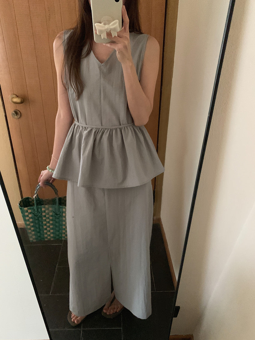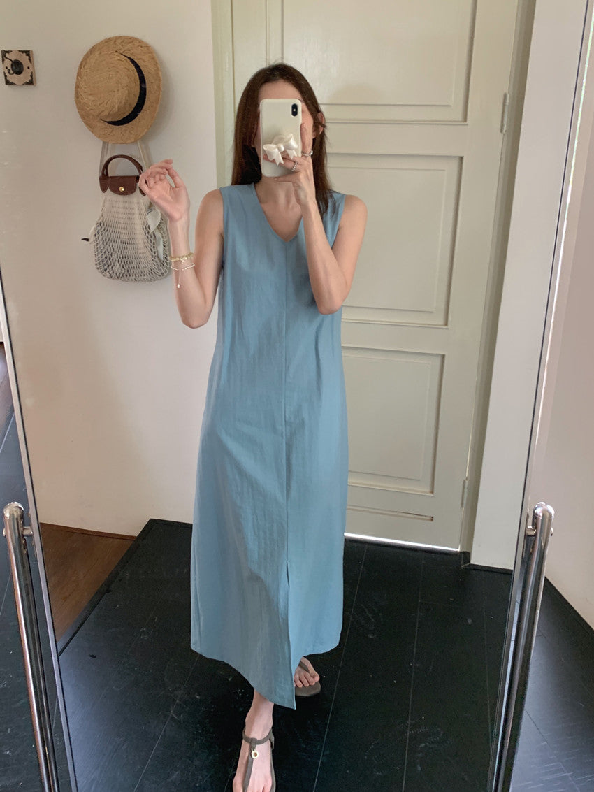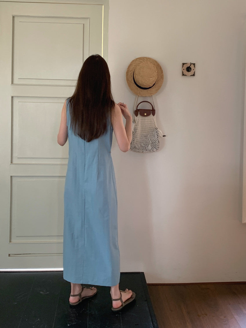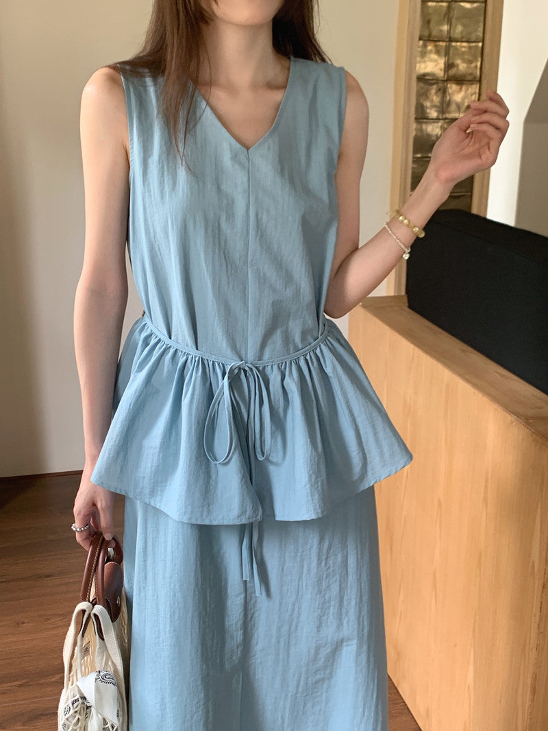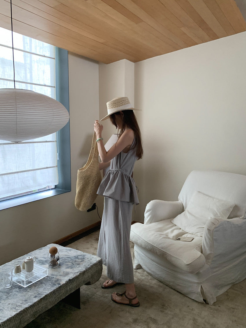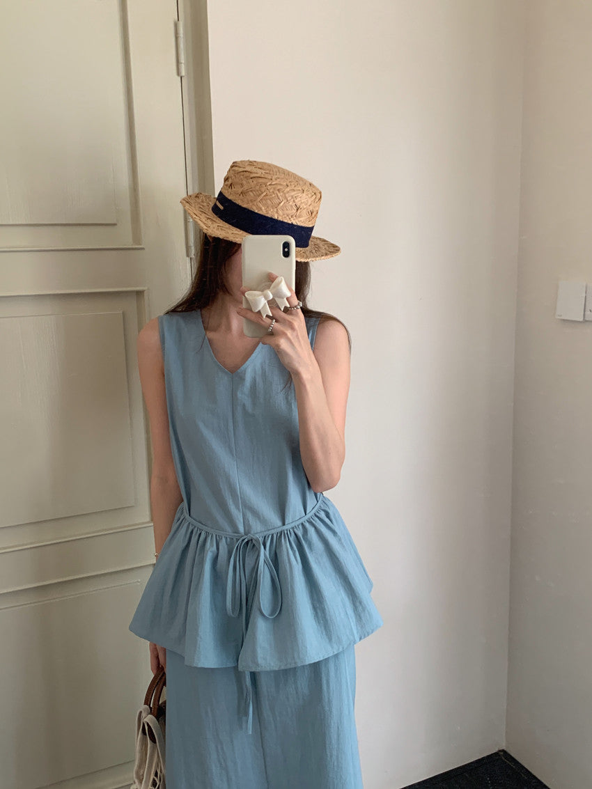 【F60380】實拍夏季簡約長版開叉洋裝+甜美荷葉可拆裙擺250512
