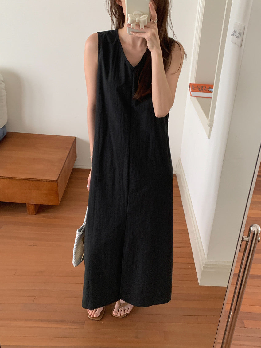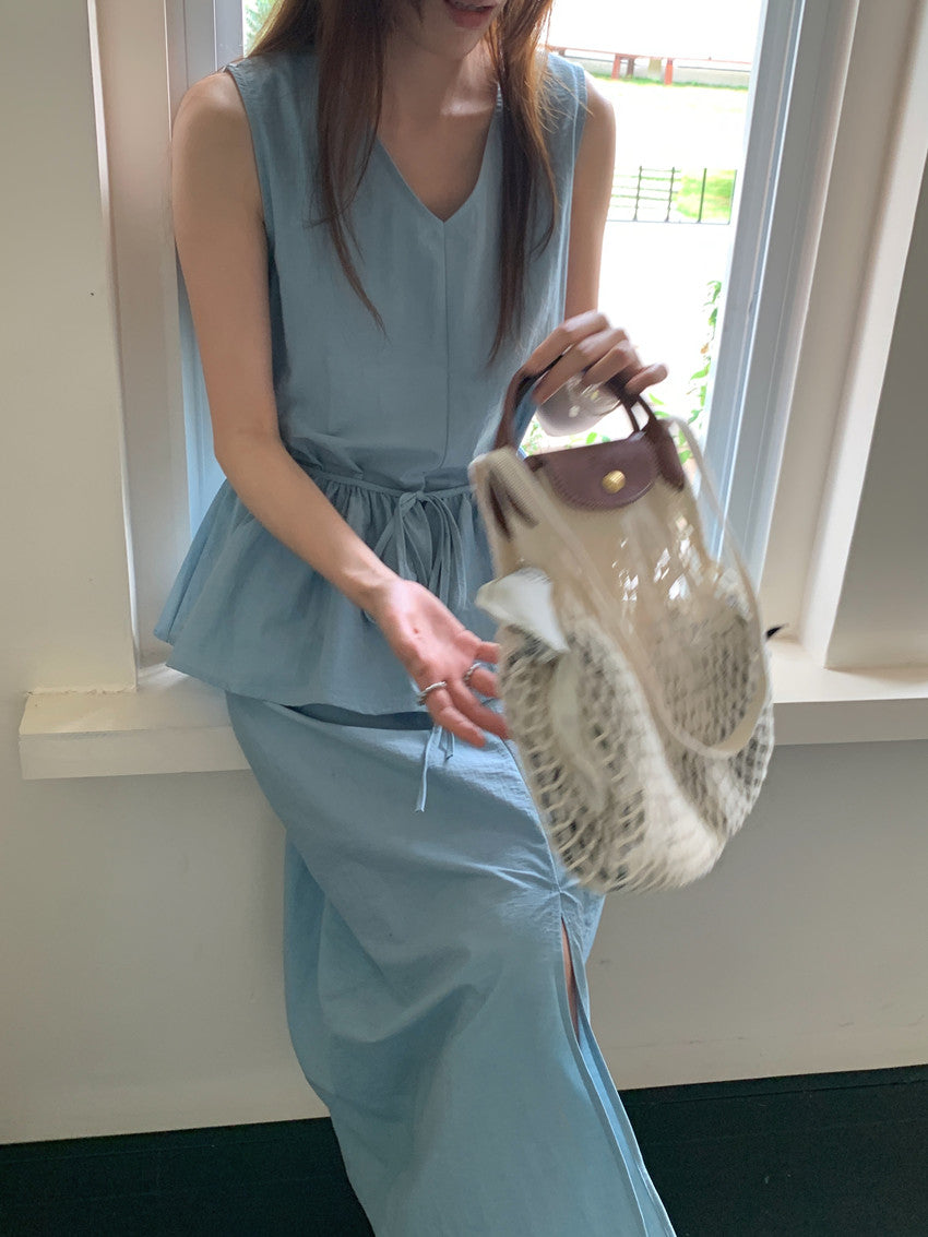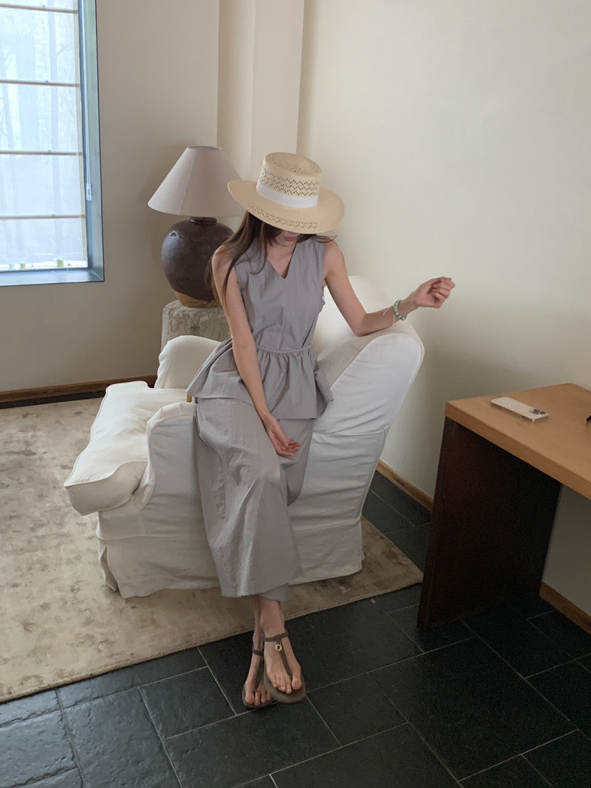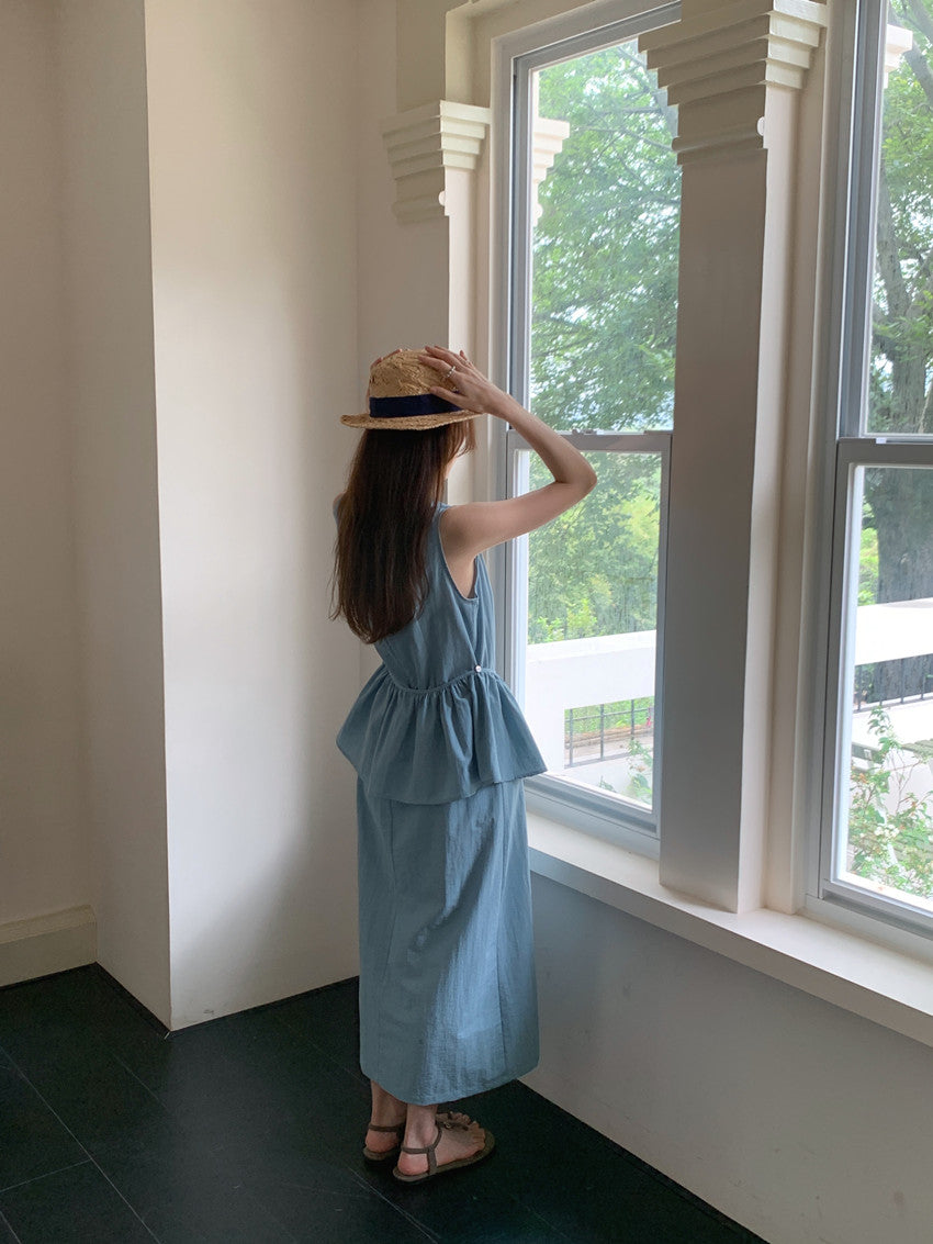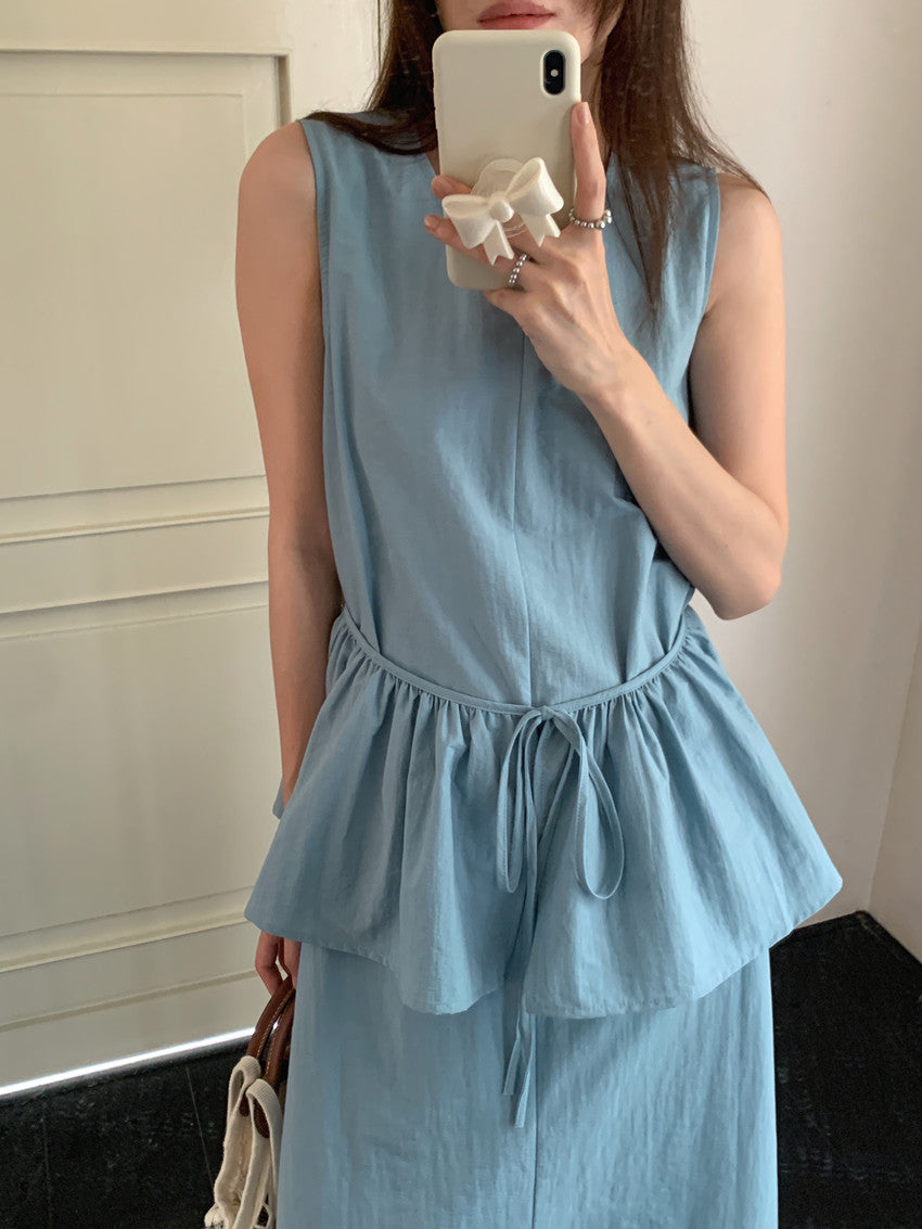 【F60380】實拍夏季簡約長版開叉洋裝+甜美荷葉可拆裙擺250512