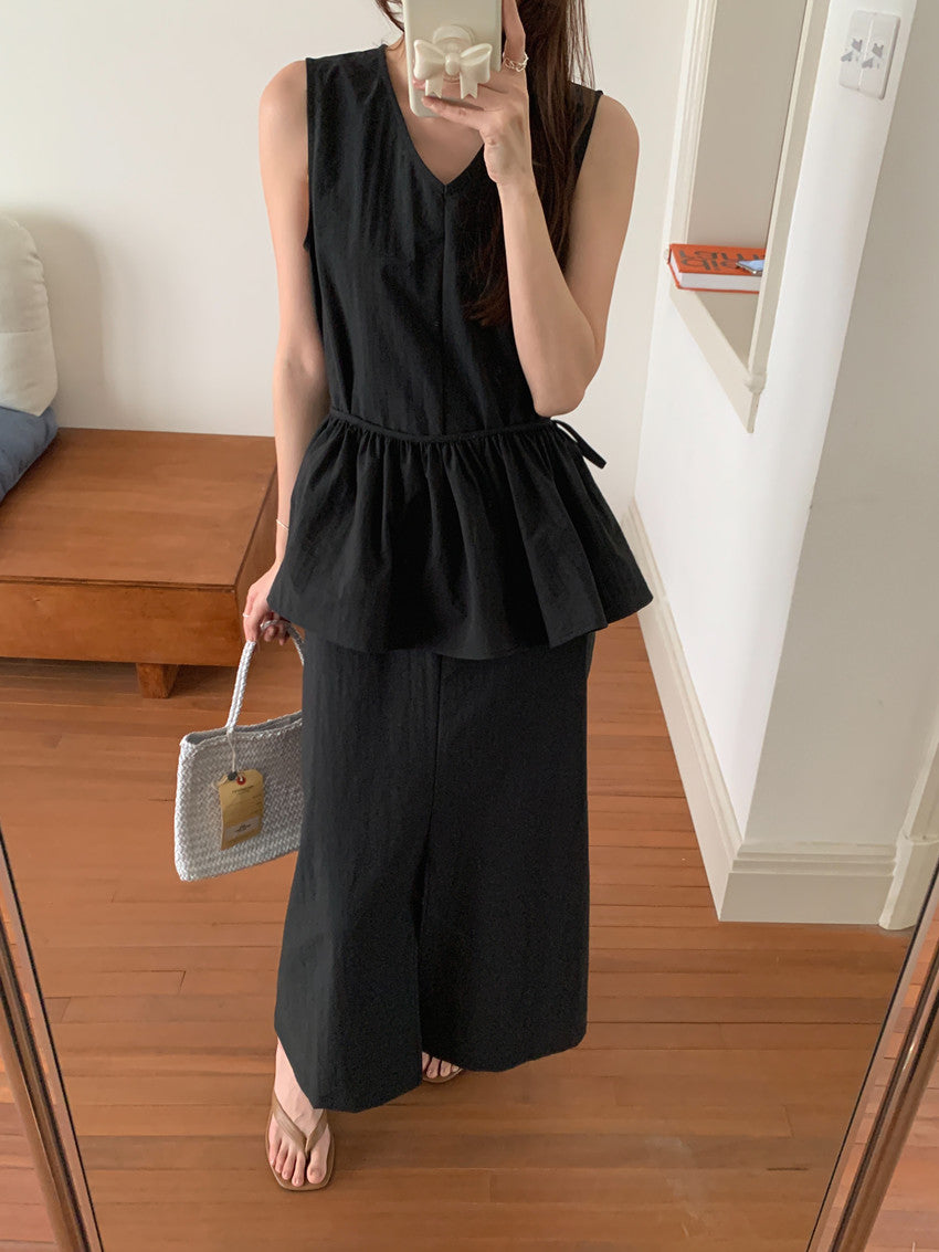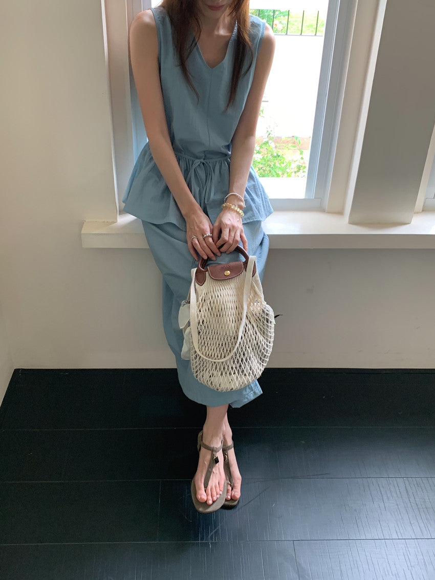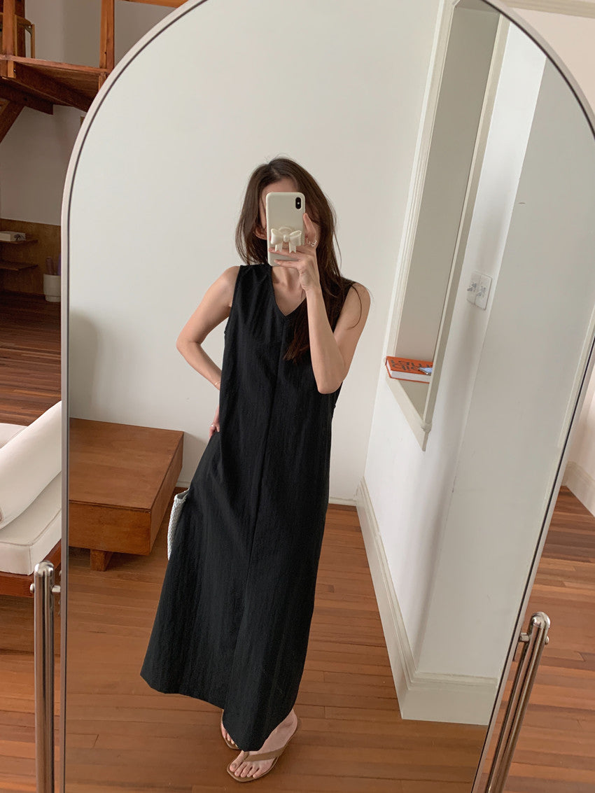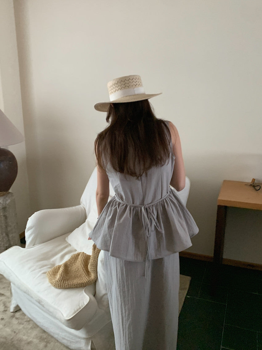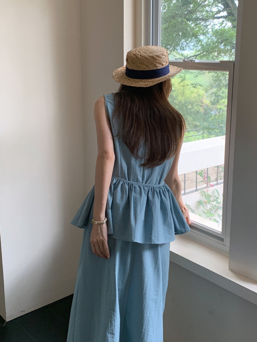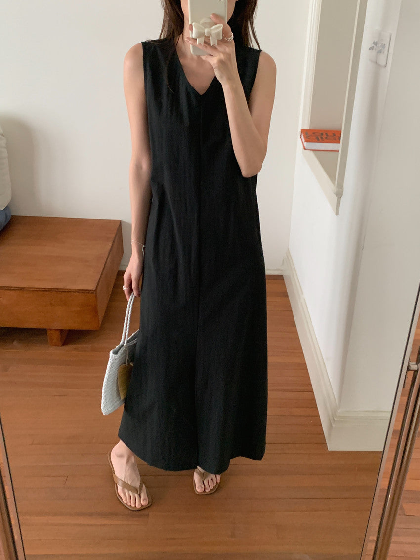 【F60380】實拍夏季簡約長版開叉洋裝+甜美荷葉可拆裙擺250512