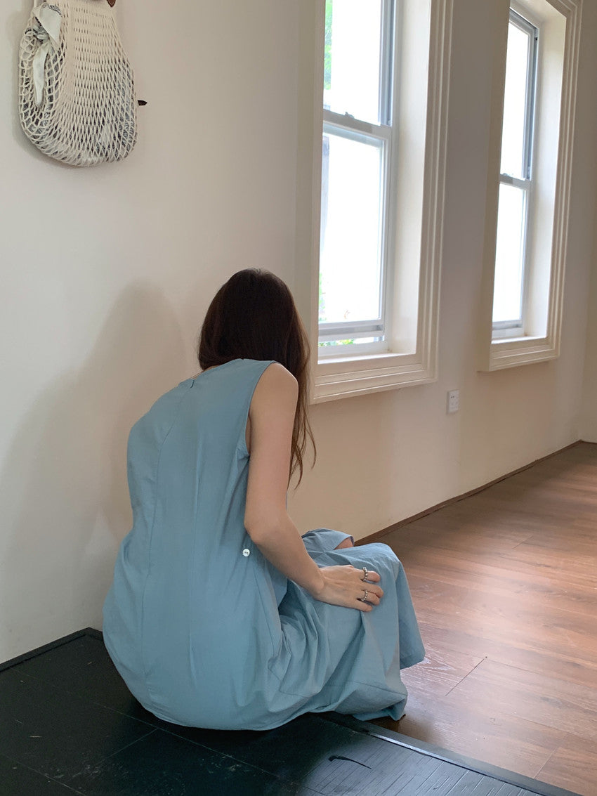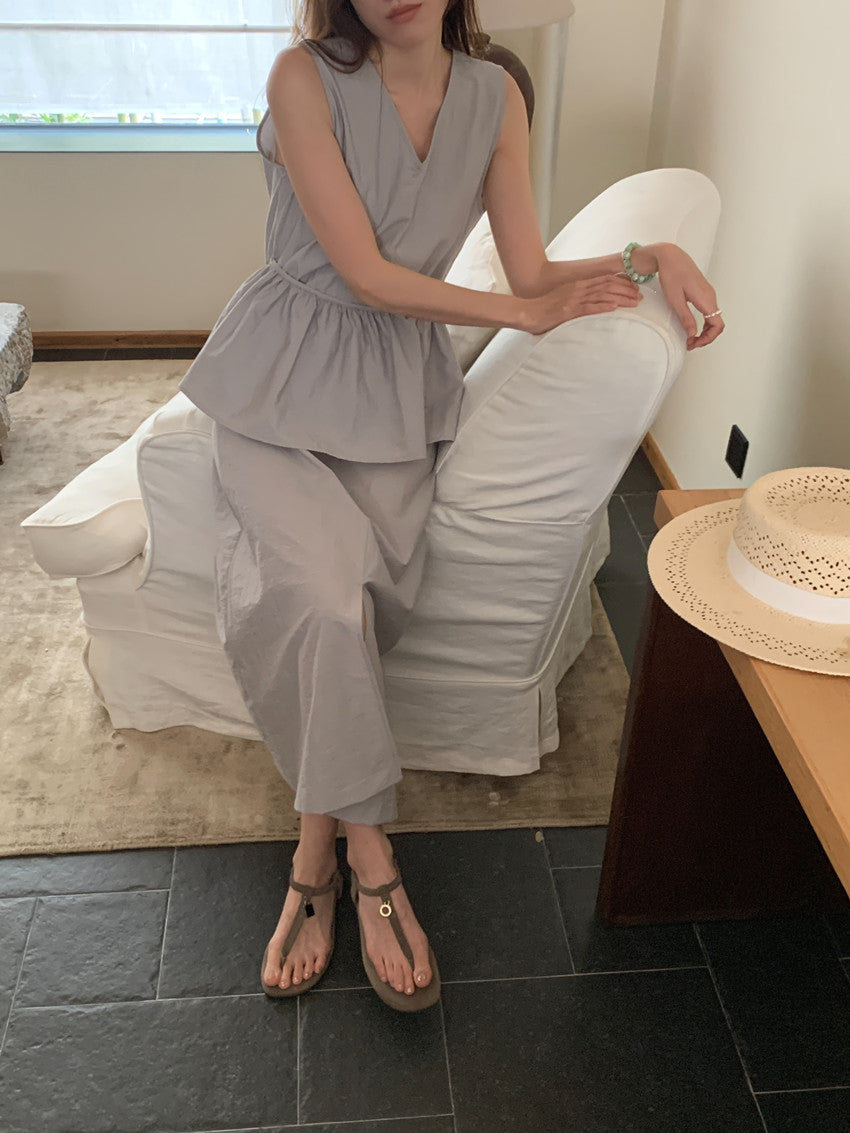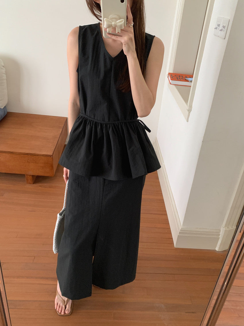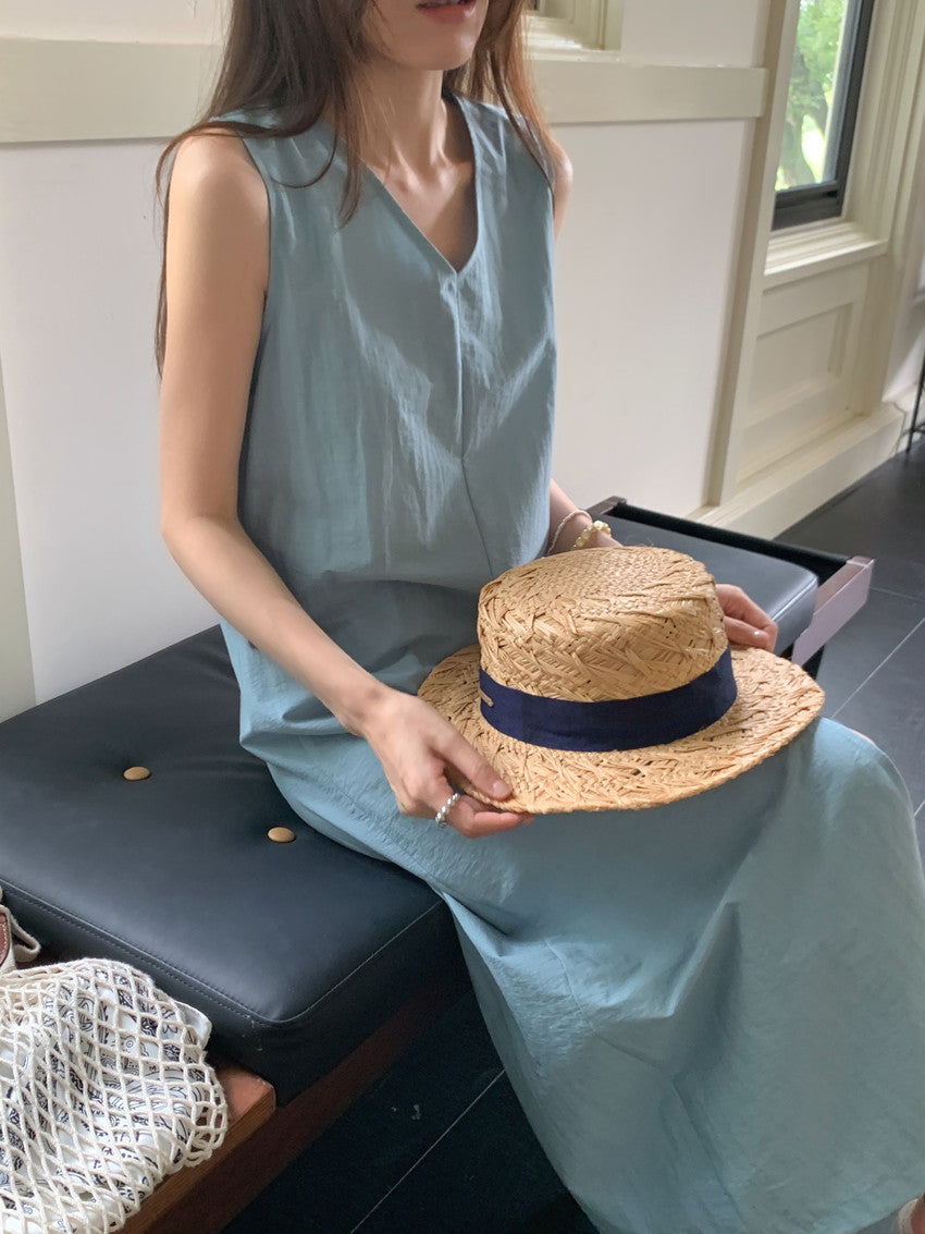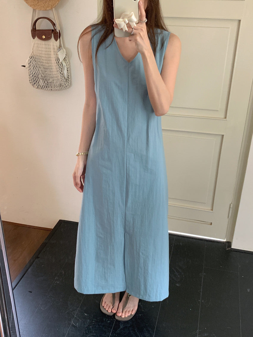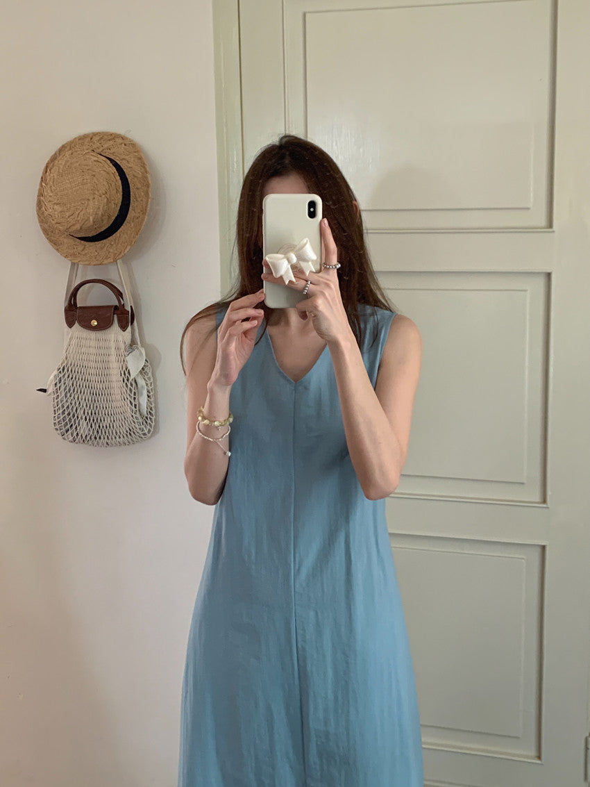 【F60380】實拍夏季簡約長版開叉洋裝+甜美荷葉可拆裙擺250512