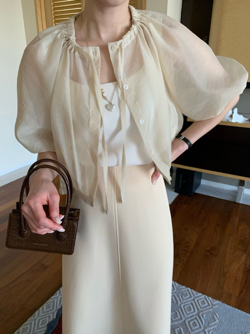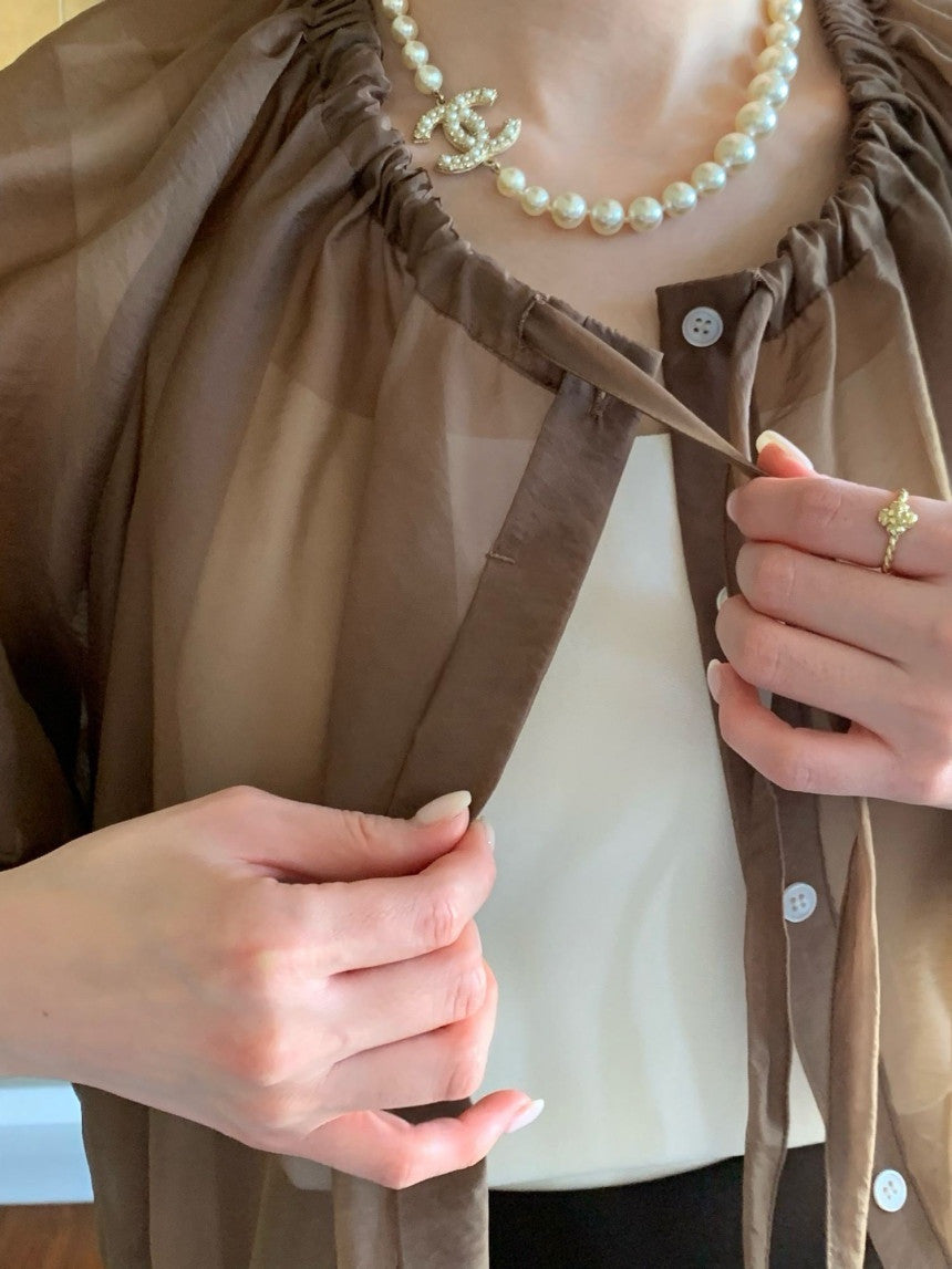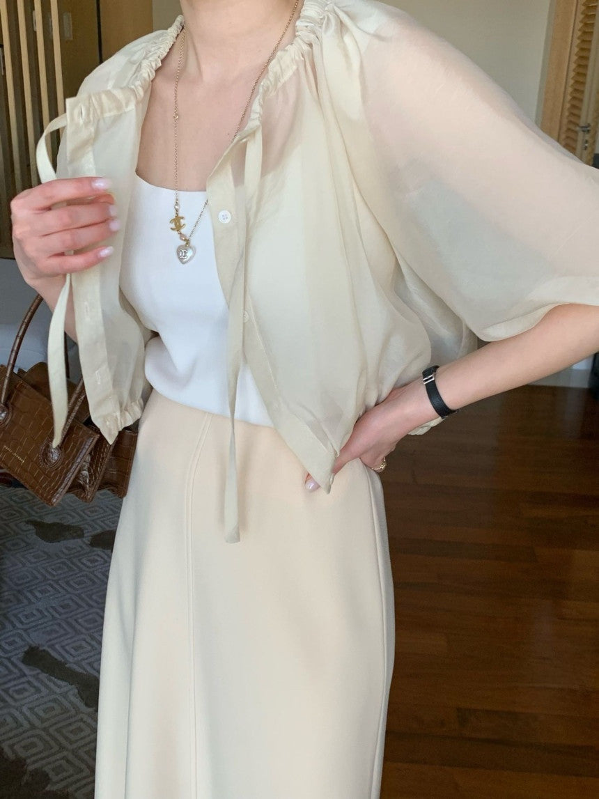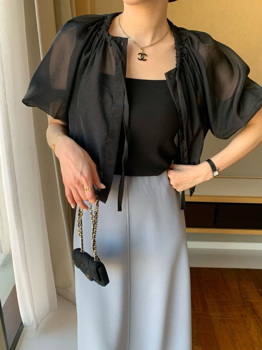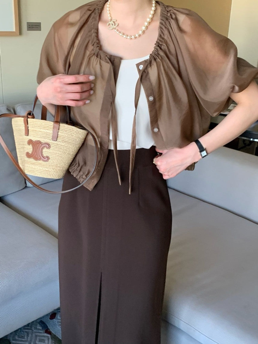 【F60381】實拍夏季氣質防曬外套|法式抽繩設計+微透雪紡罩衫250512