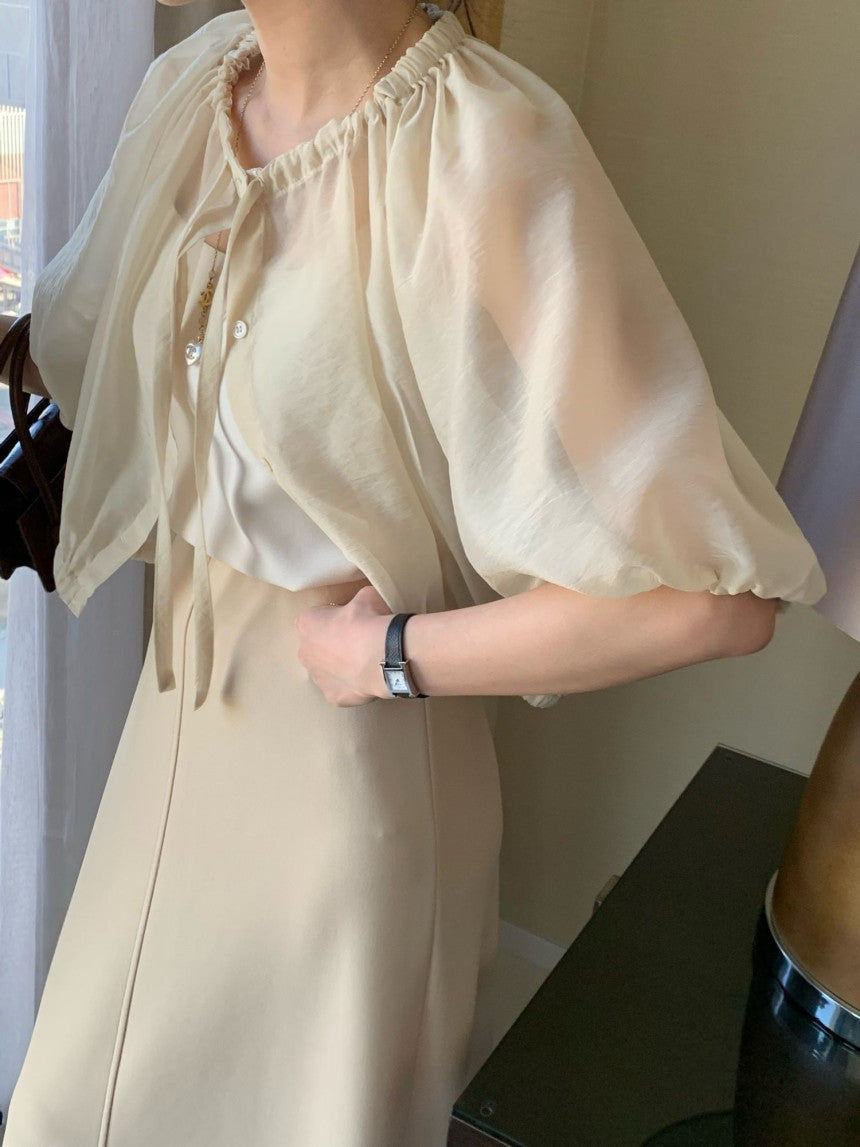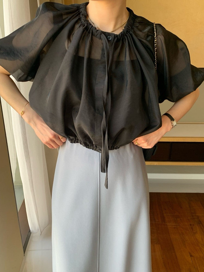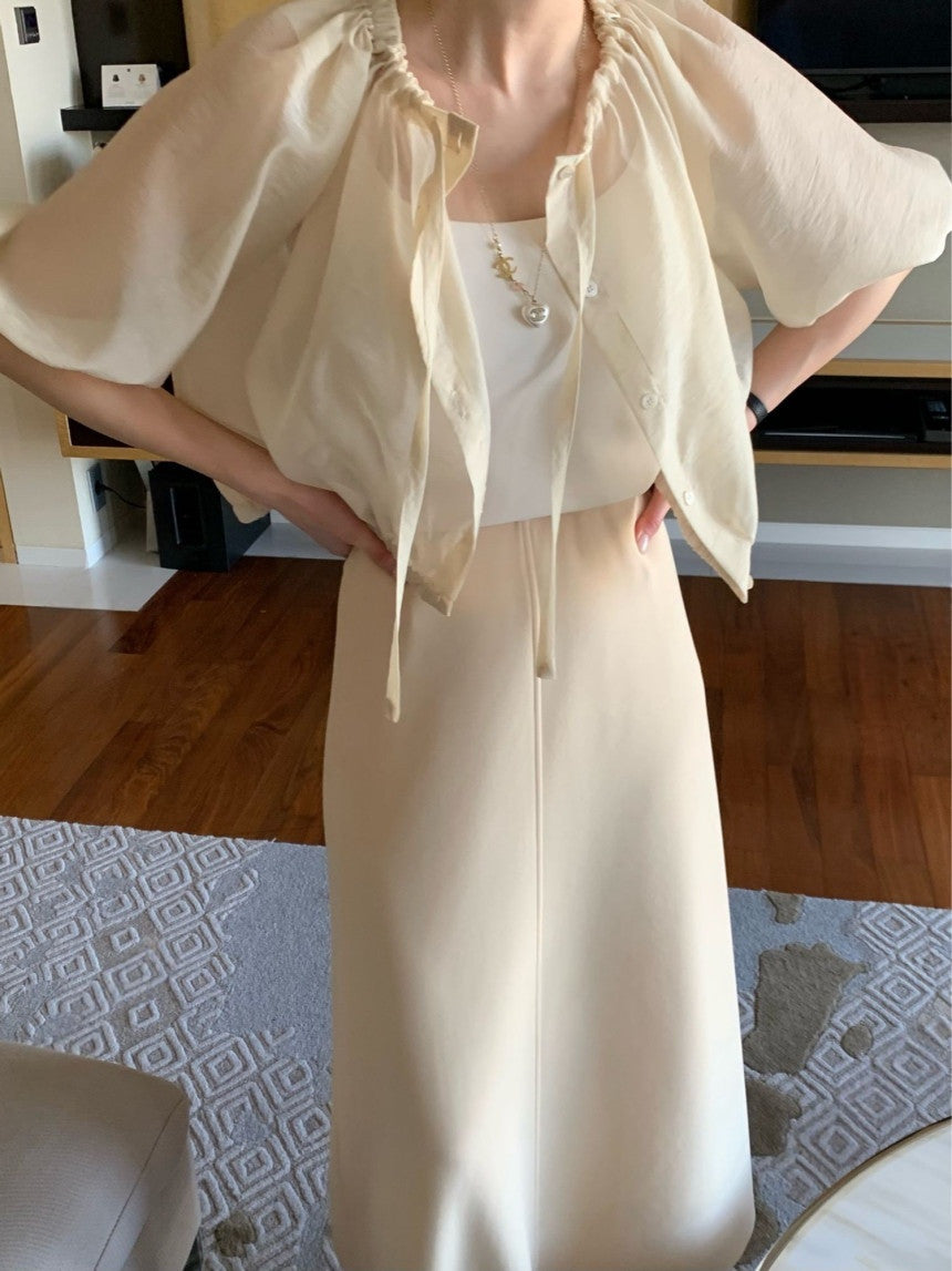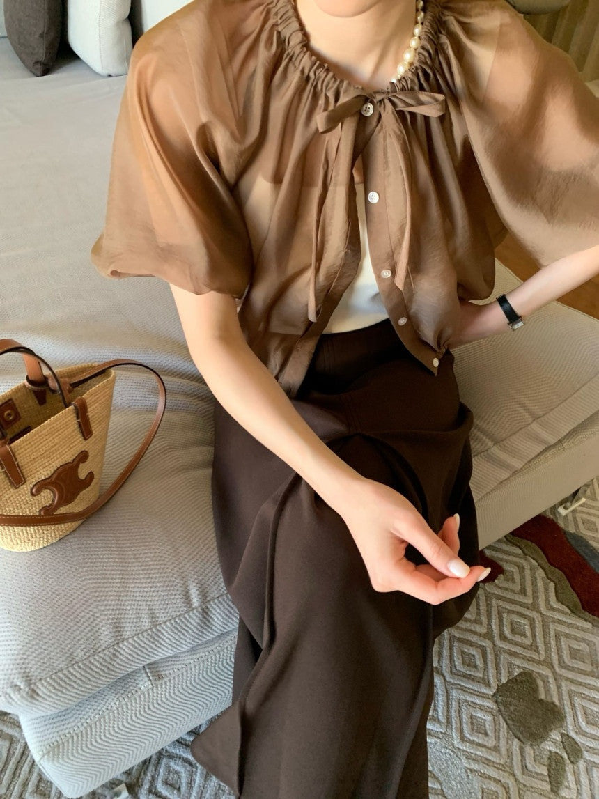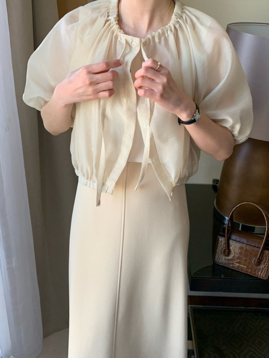 【F60381】實拍夏季氣質防曬外套|法式抽繩設計+微透雪紡罩衫250512