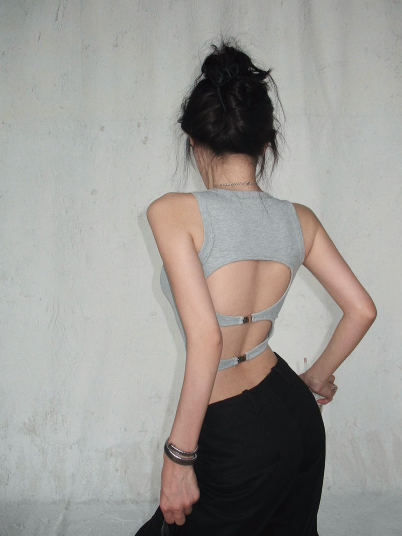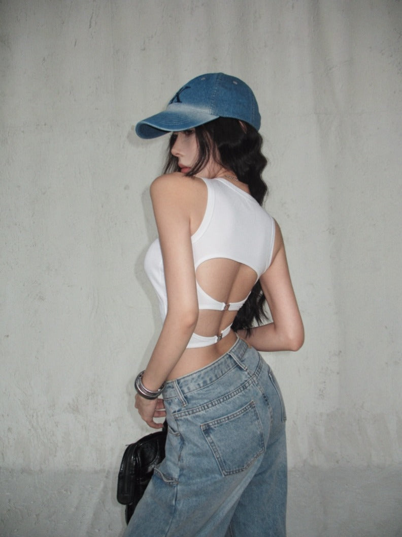 【F60440】實拍夏季鏤空設計款背心(帶胸墊)250609