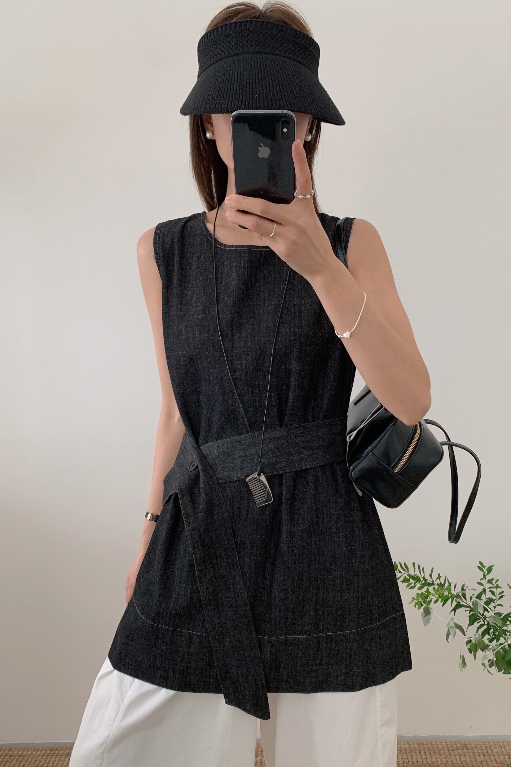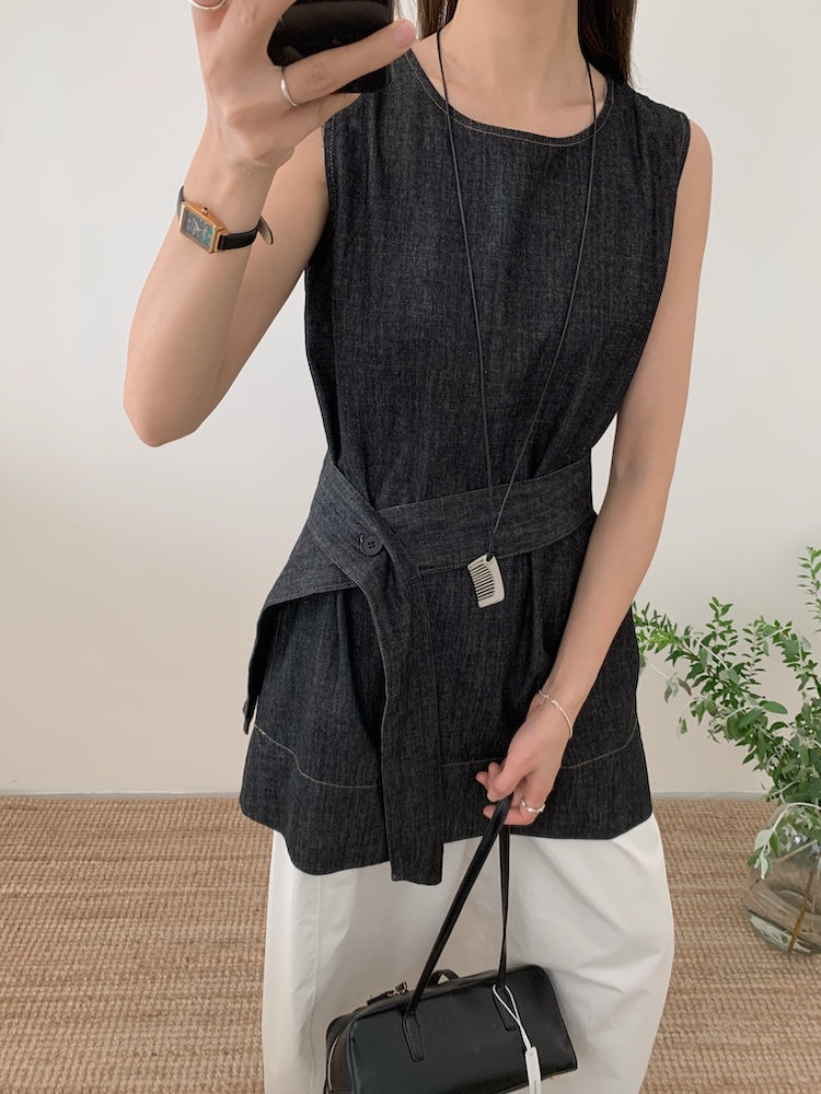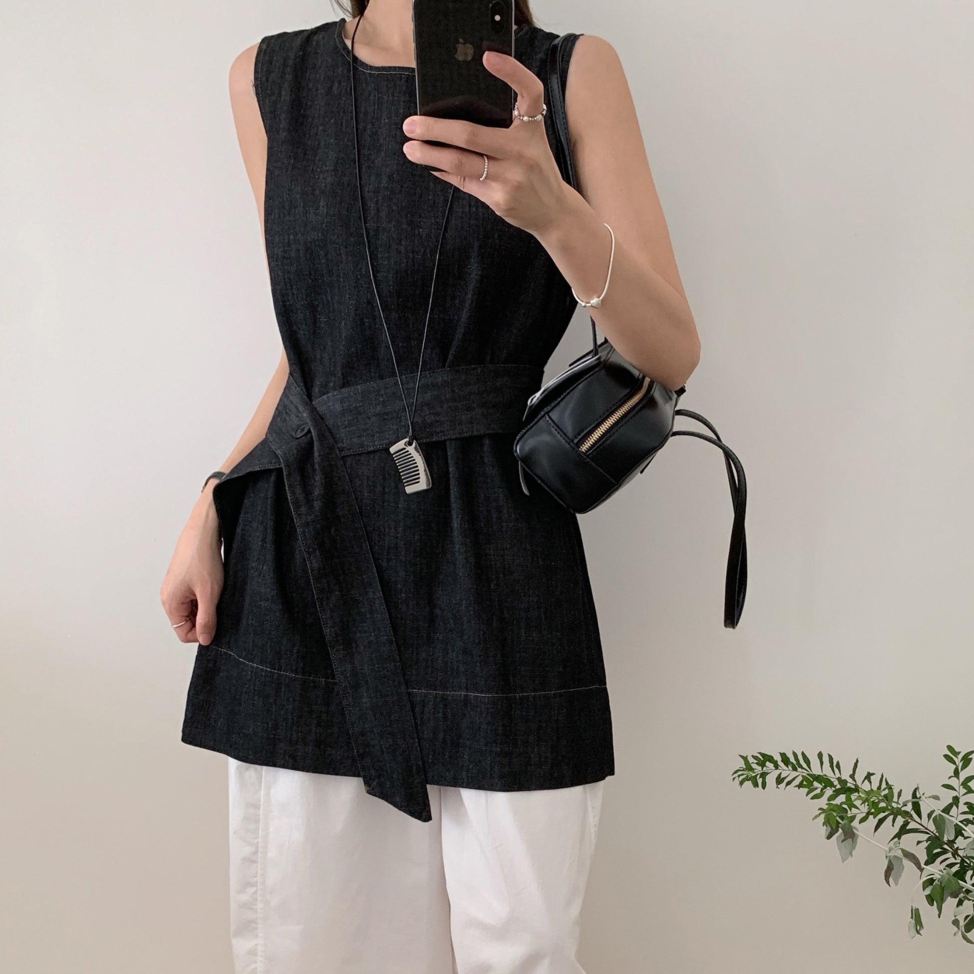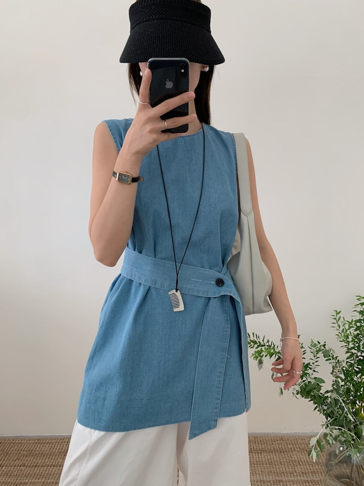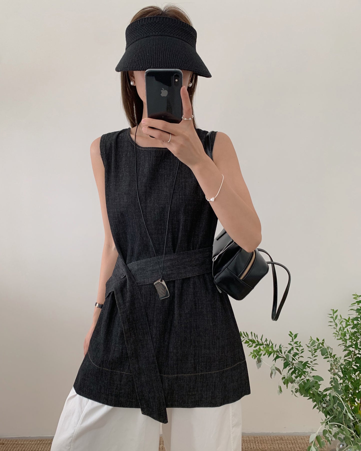 【F60450】實拍簡約設計款洗水牛仔背心+腰帶250609