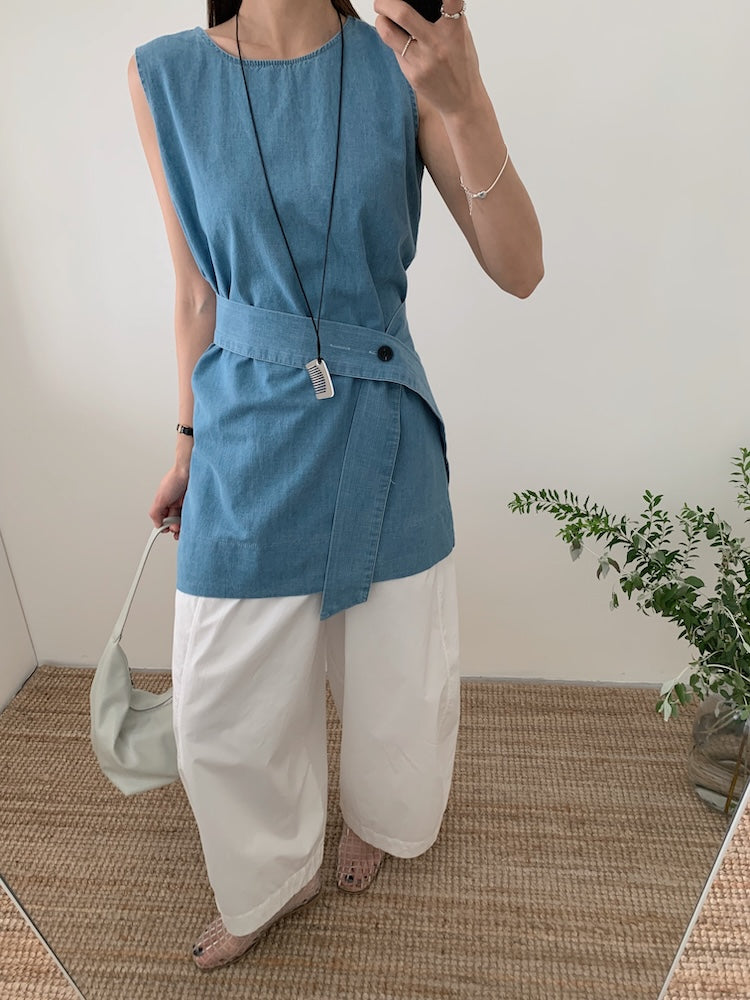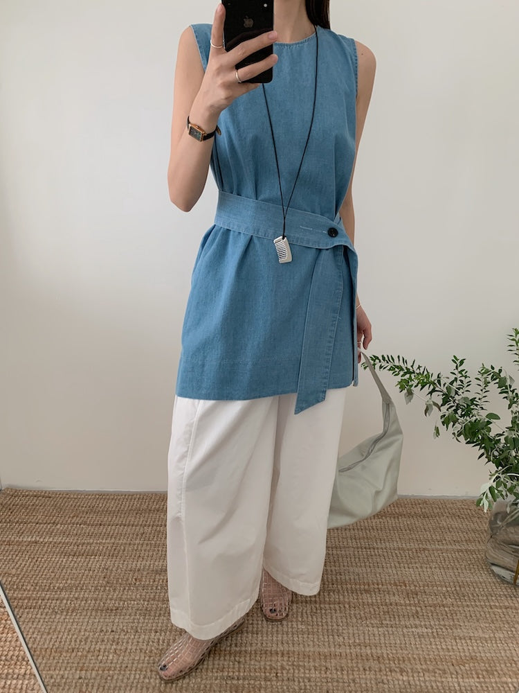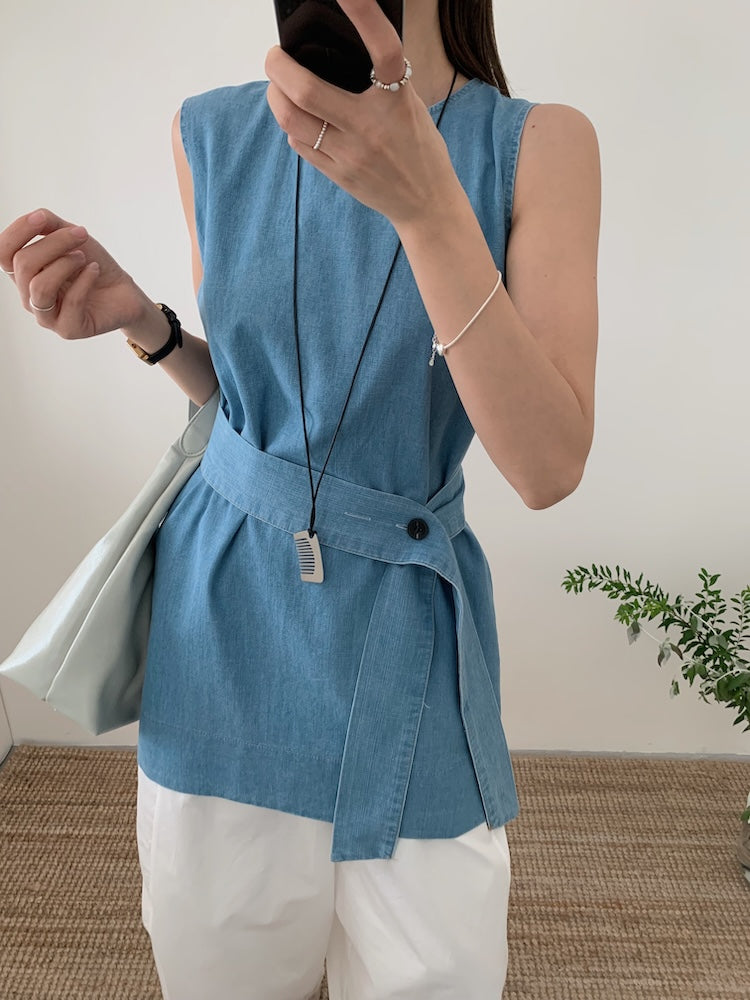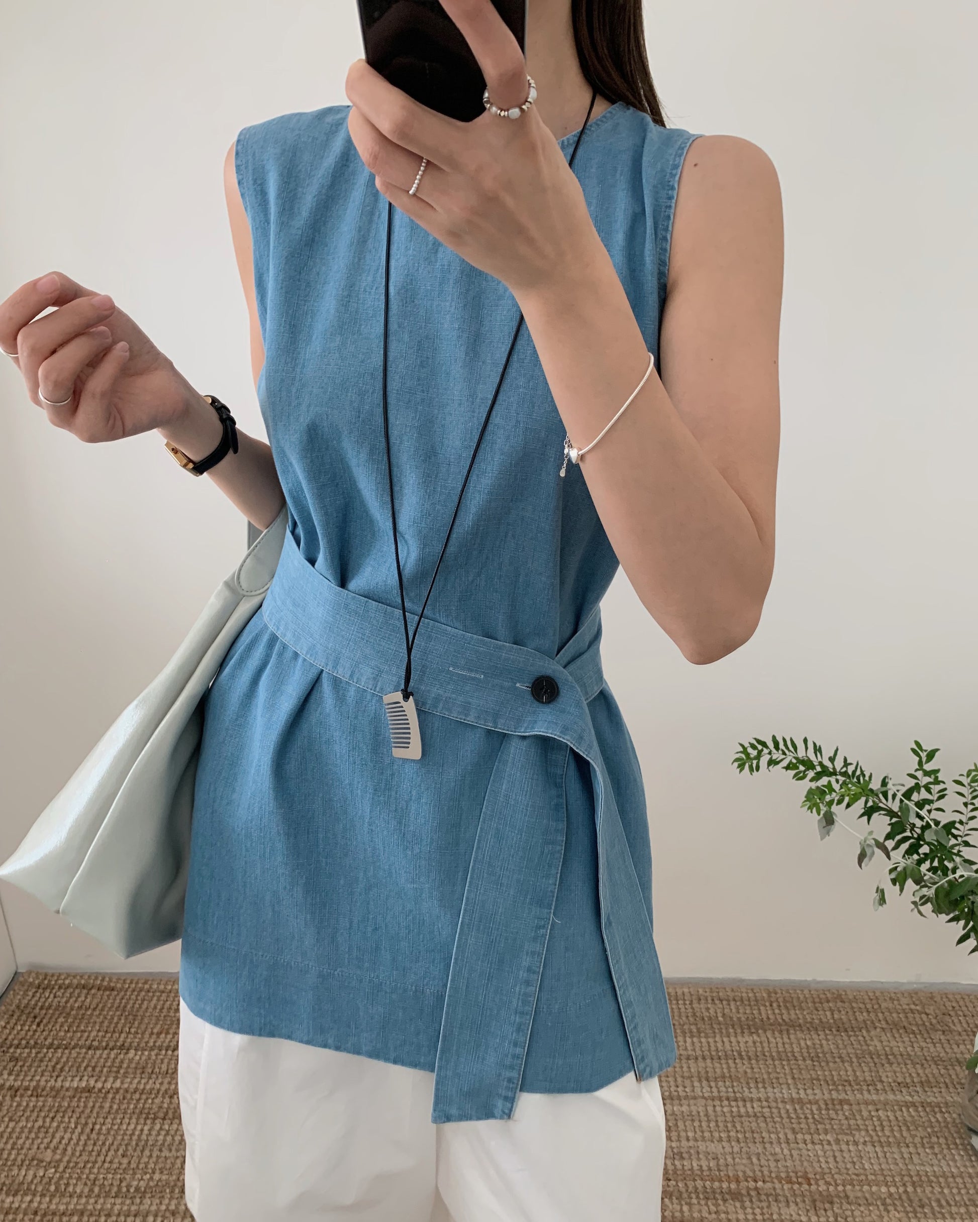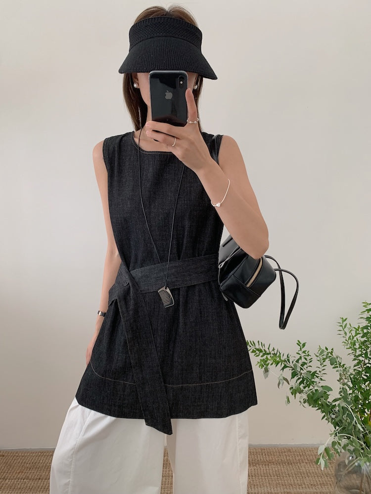 【F60450】實拍簡約設計款洗水牛仔背心+腰帶250609