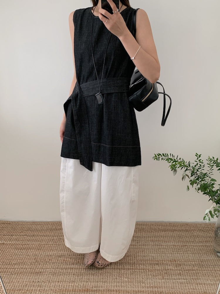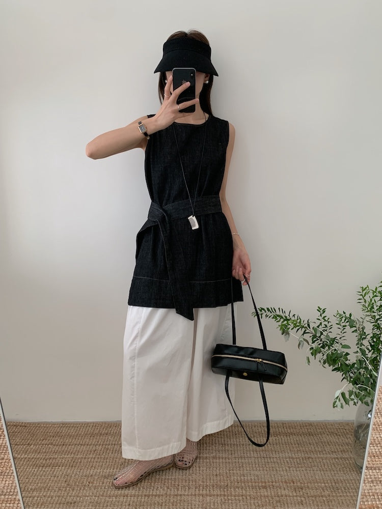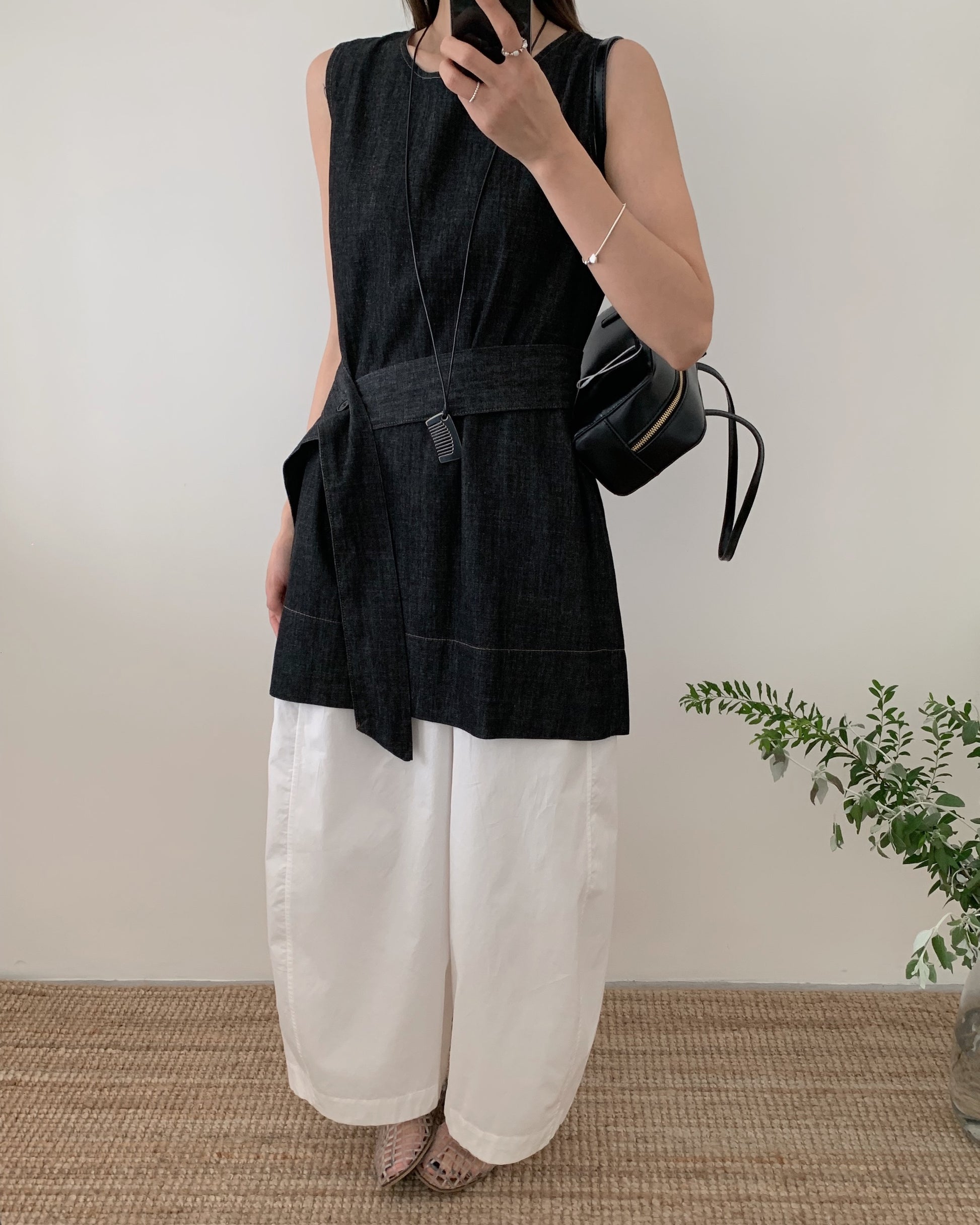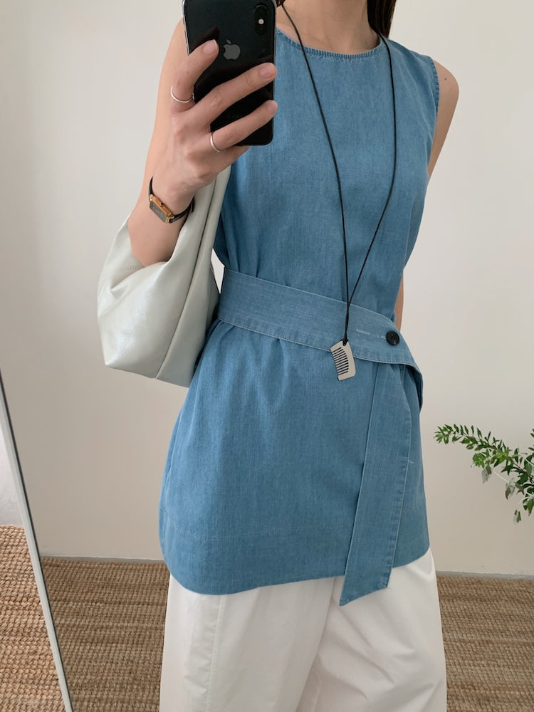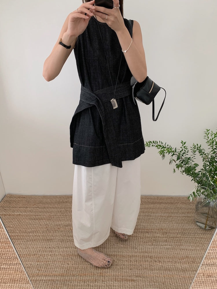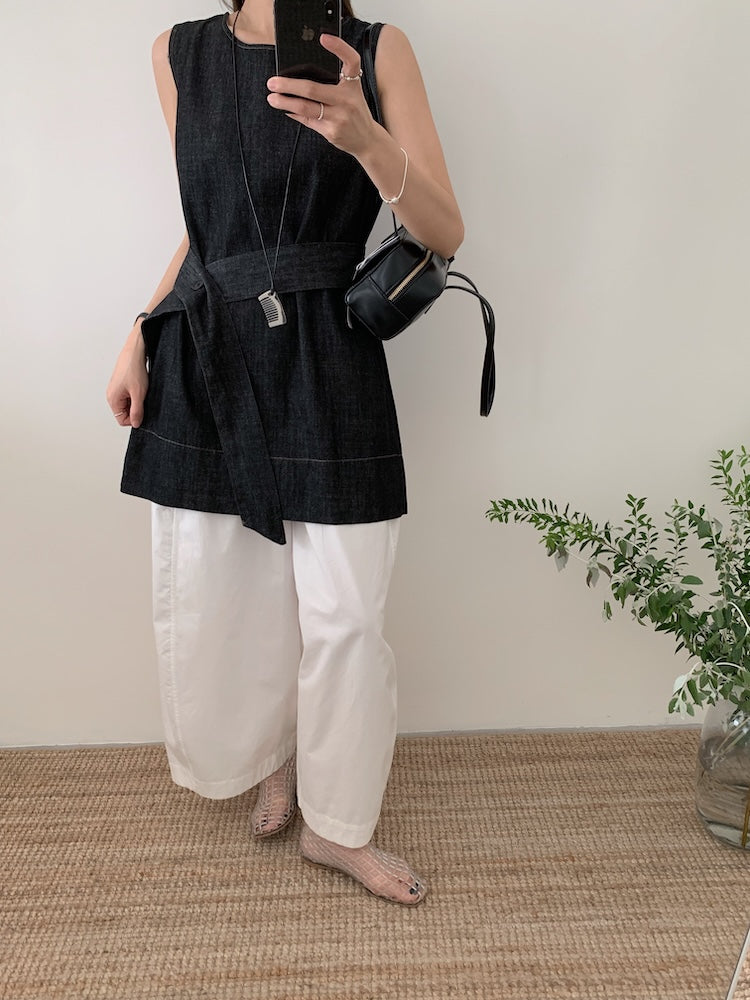 【F60450】實拍簡約設計款洗水牛仔背心+腰帶250609