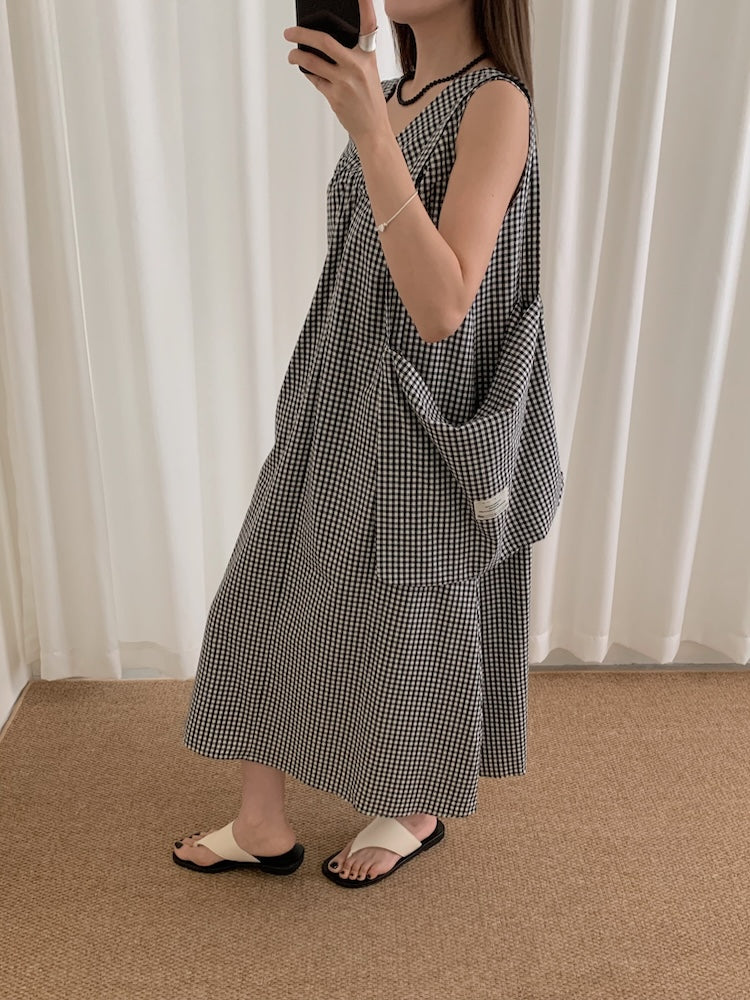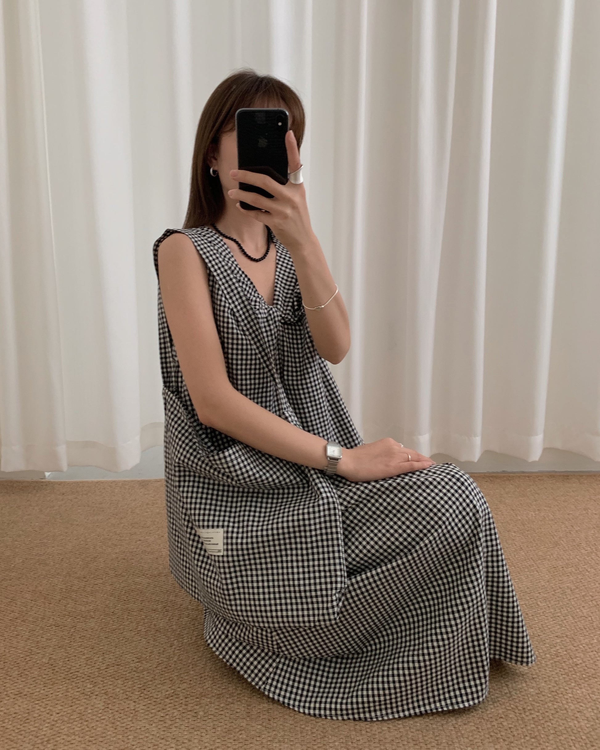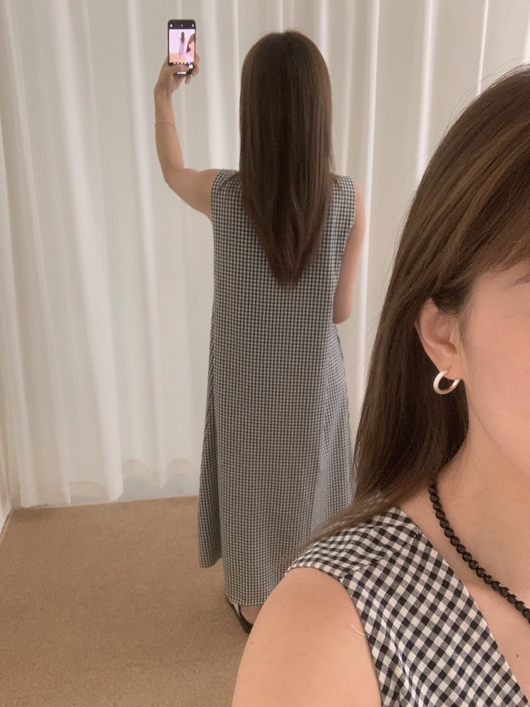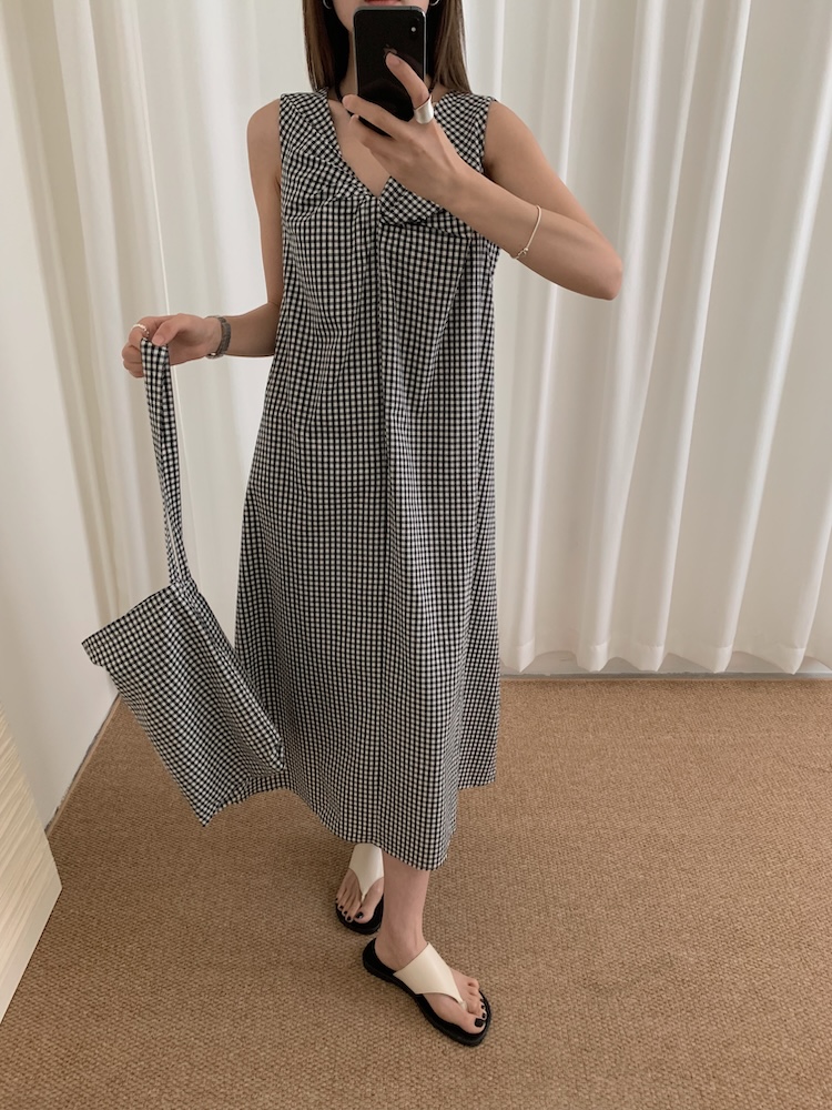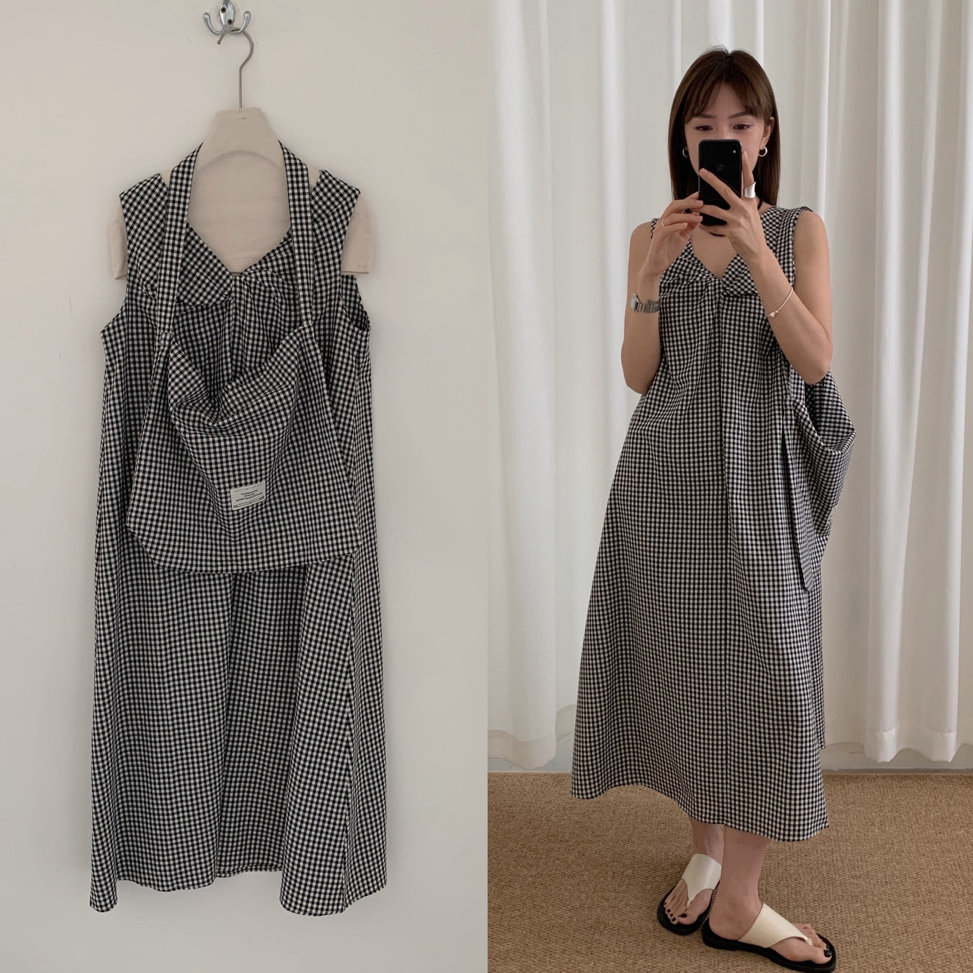 【F60451】實拍夏日清新日系寬鬆格子長洋裝 附包包250609