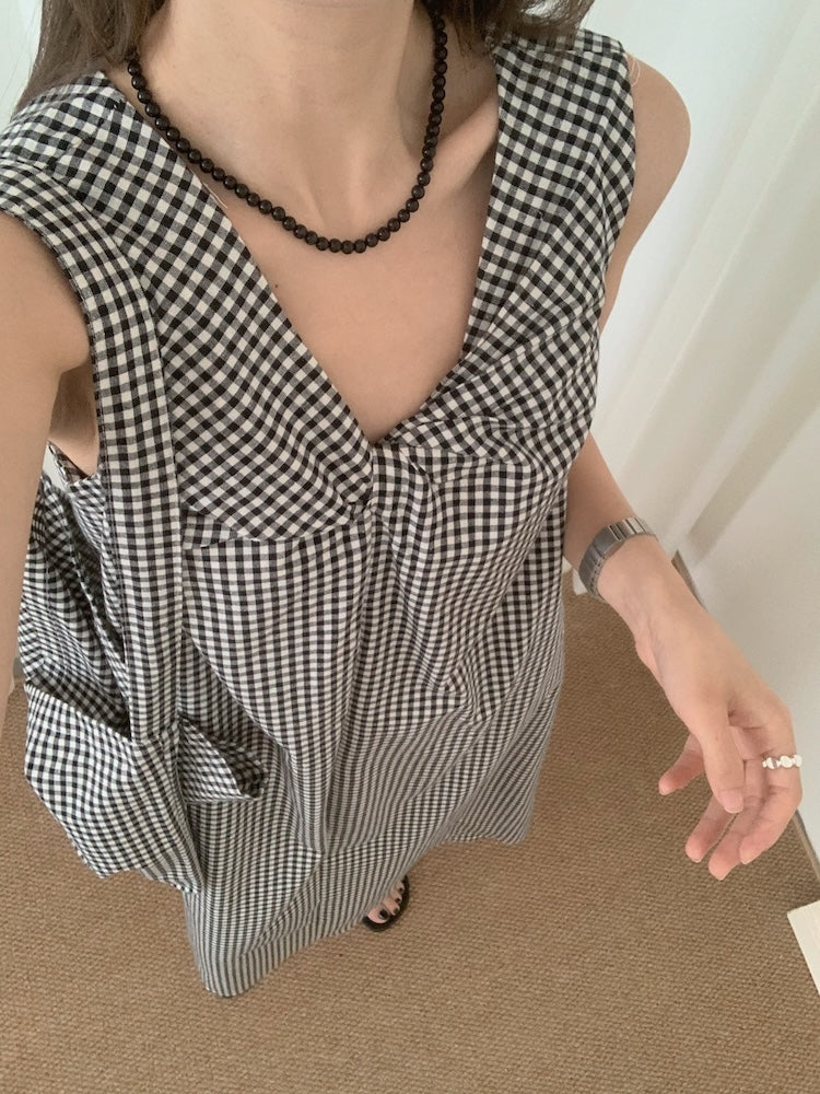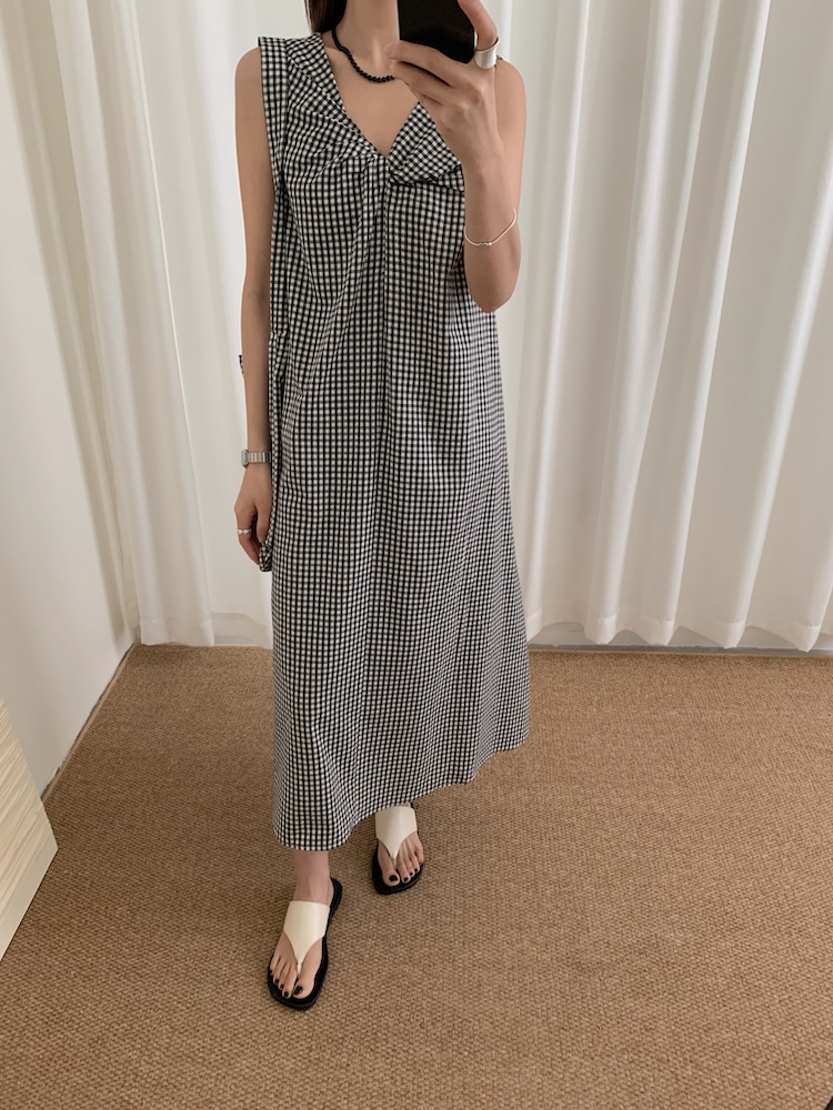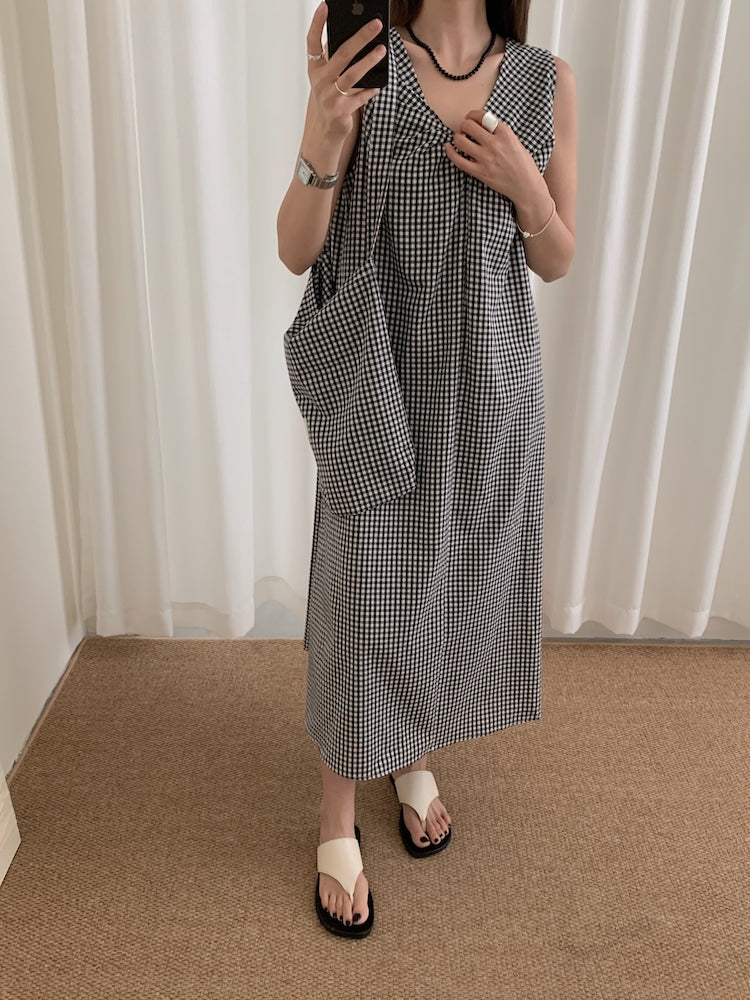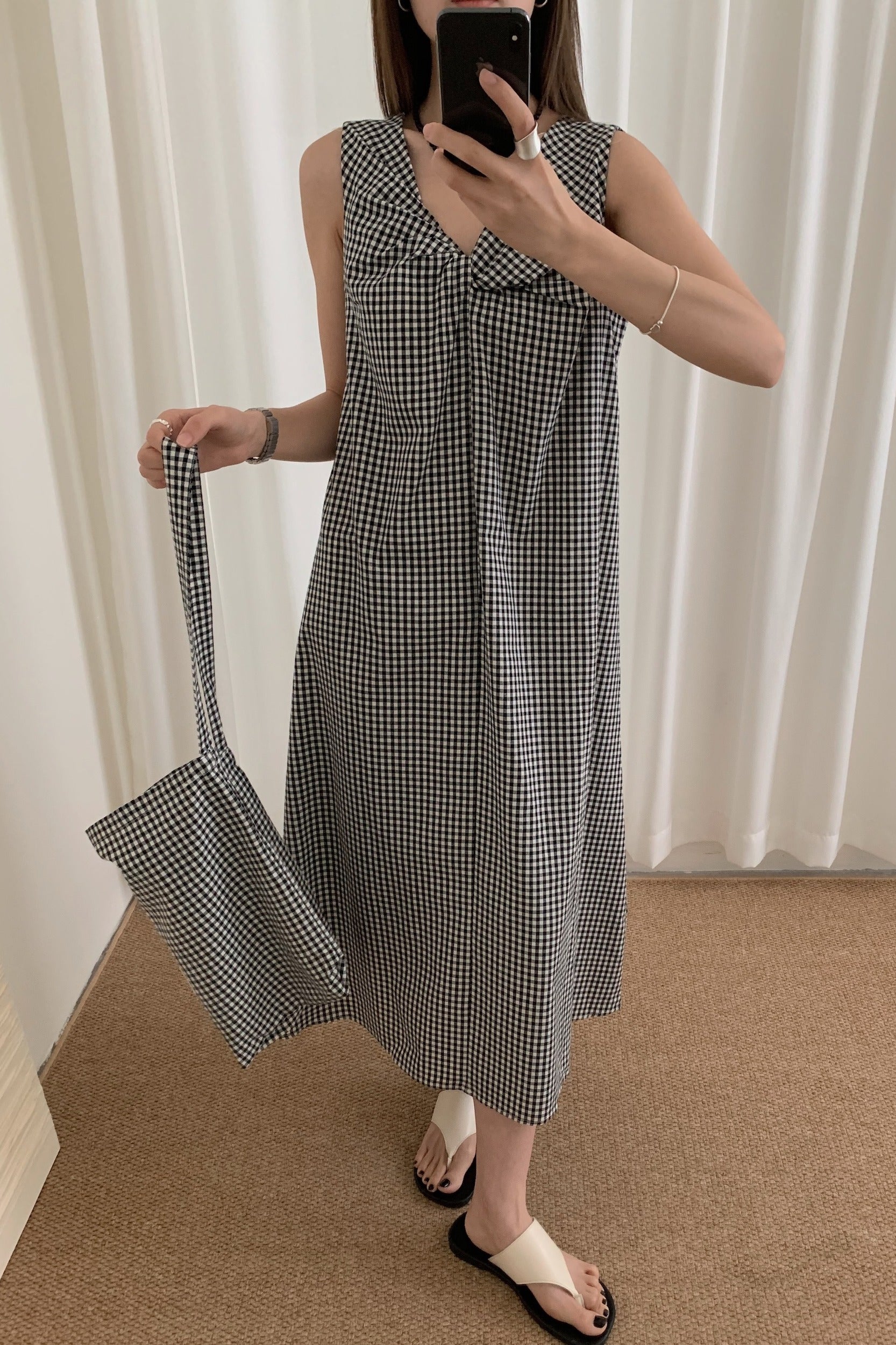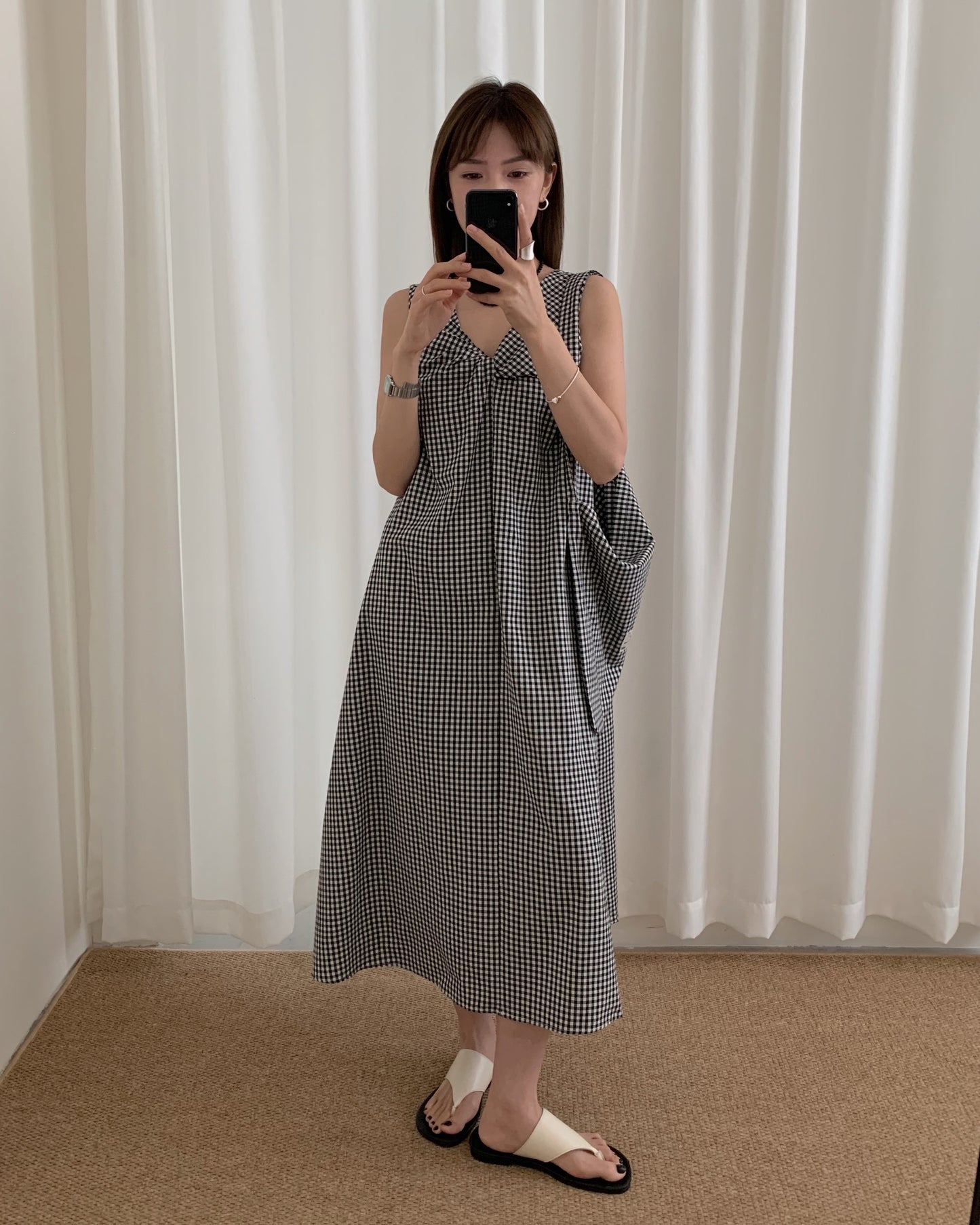 【F60451】實拍夏日清新日系寬鬆格子長洋裝 附包包250609