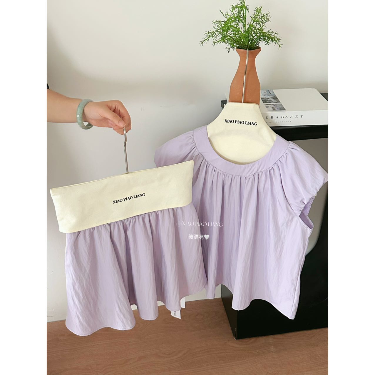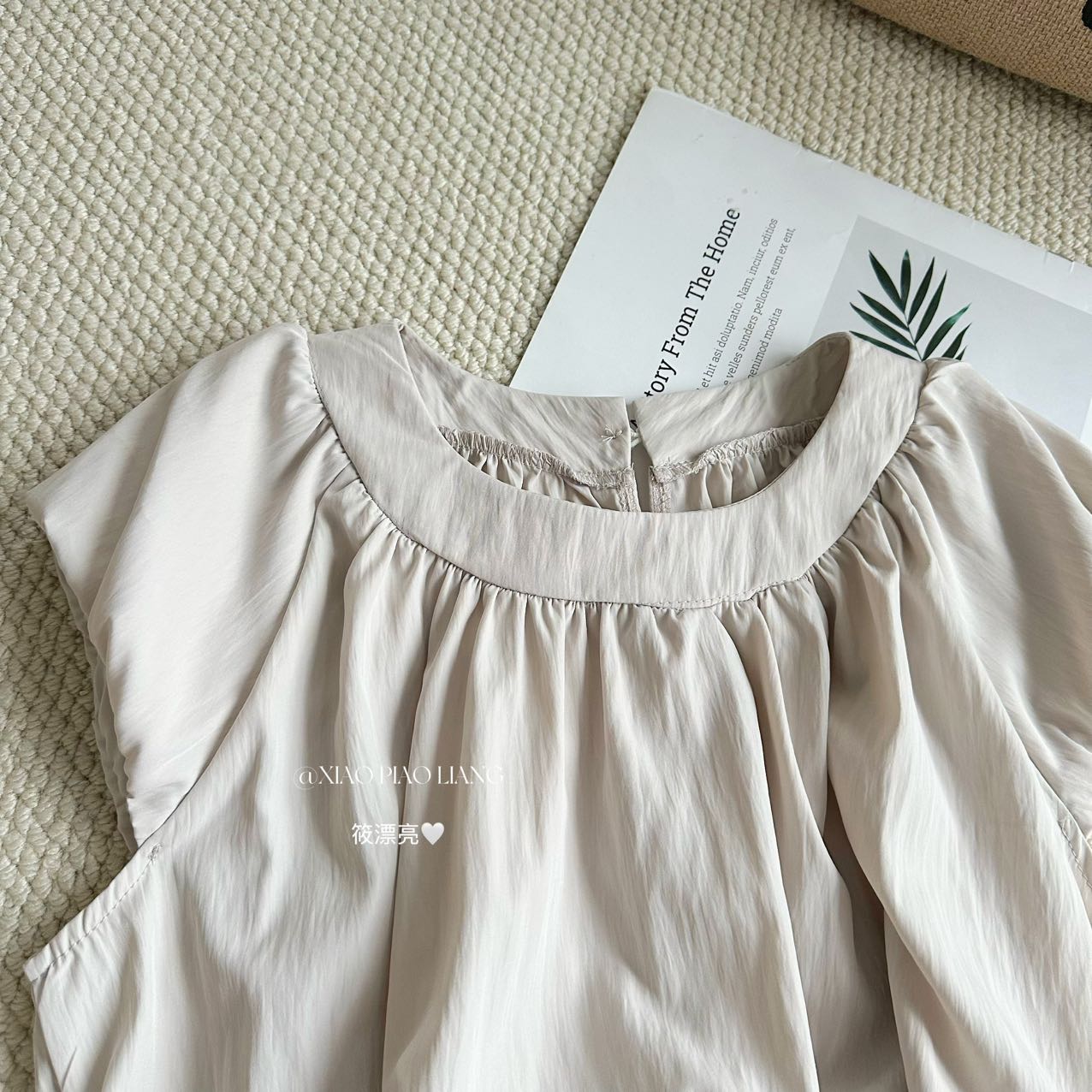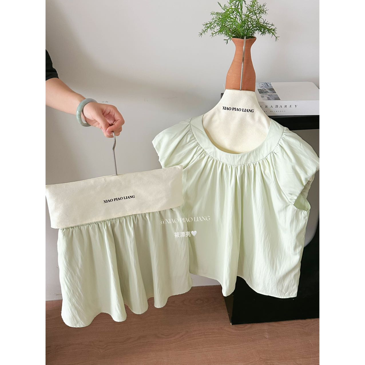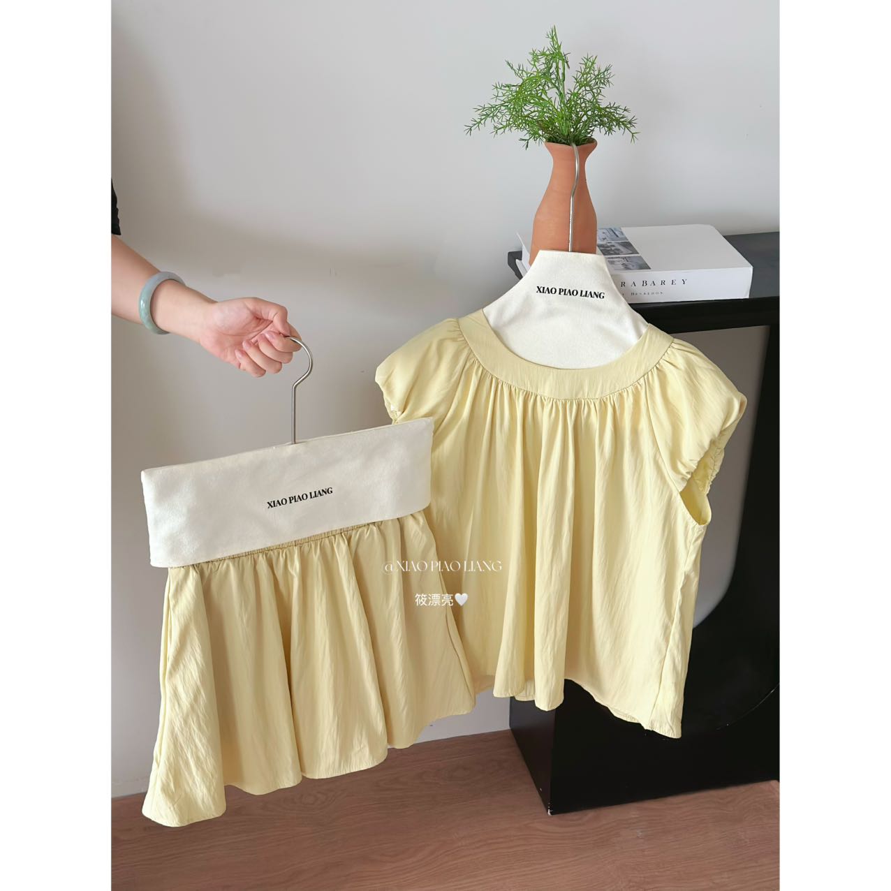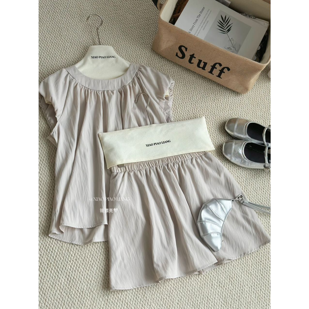 【F60458】實拍極簡舒適個性小飛袖上衣(小墊肩)+鬆緊腰短裙250609