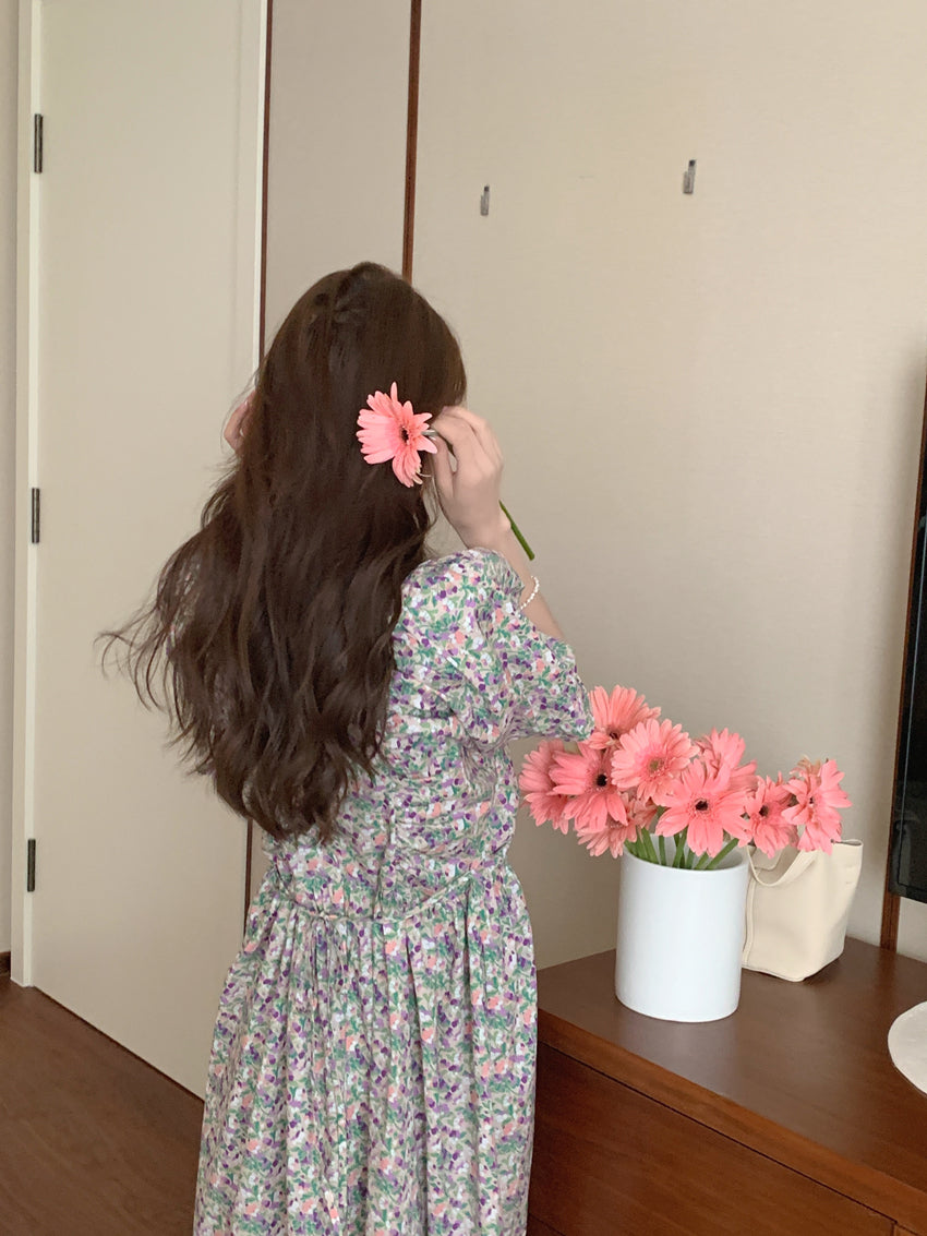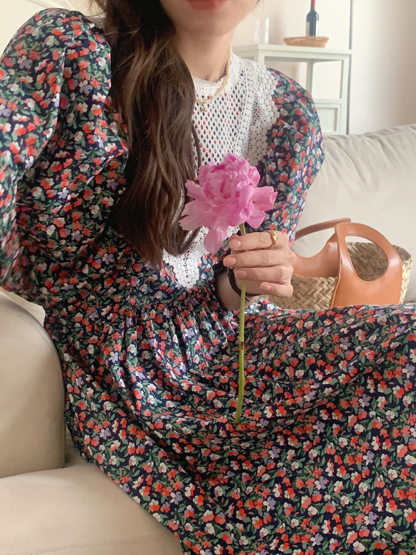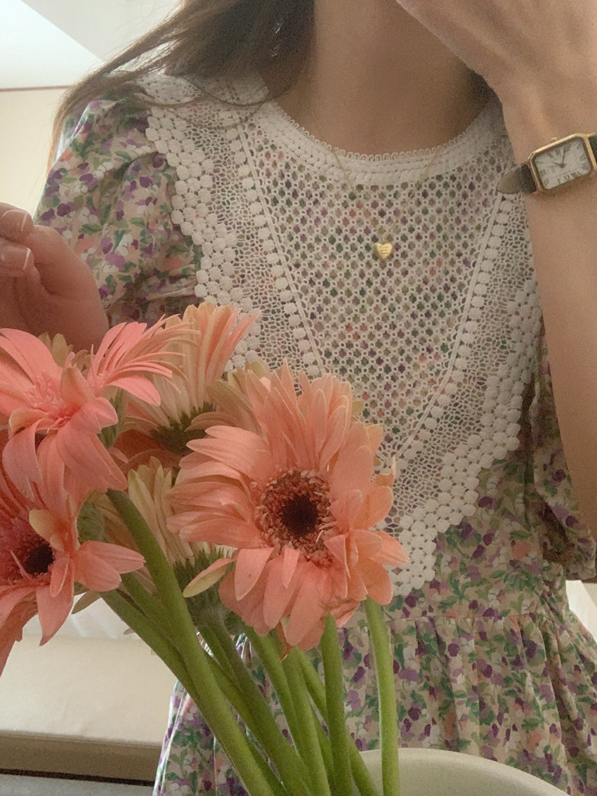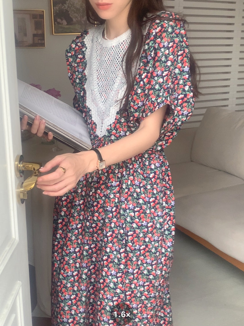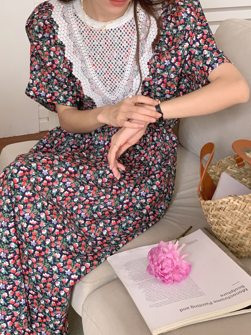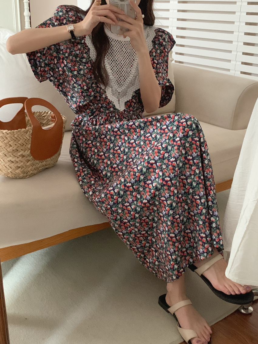 【F60562】氣質溫柔白月光🕊️復古泡泡袖花邊領拼接寬鬆長版連身洋裝260413