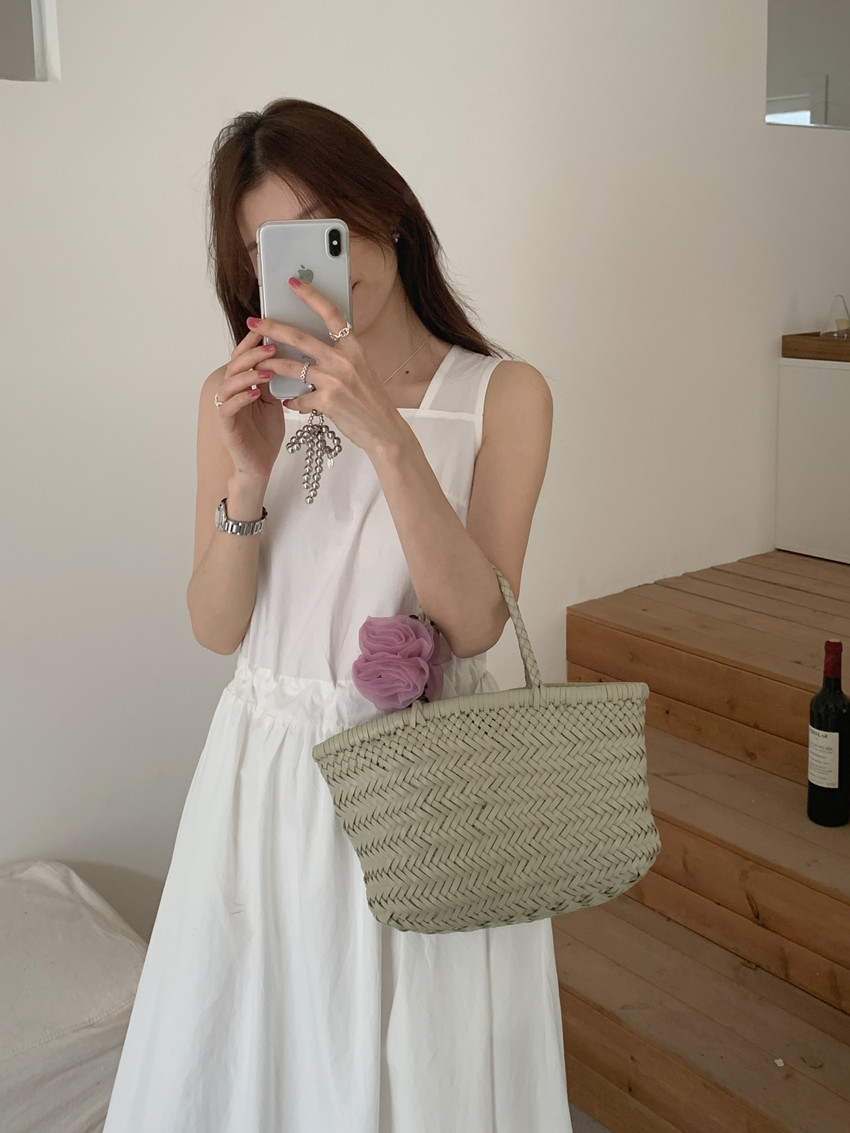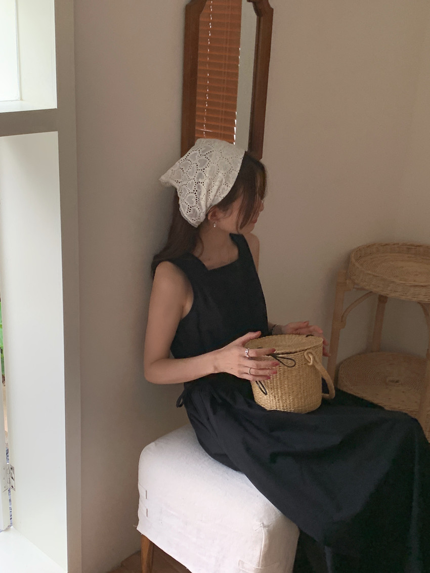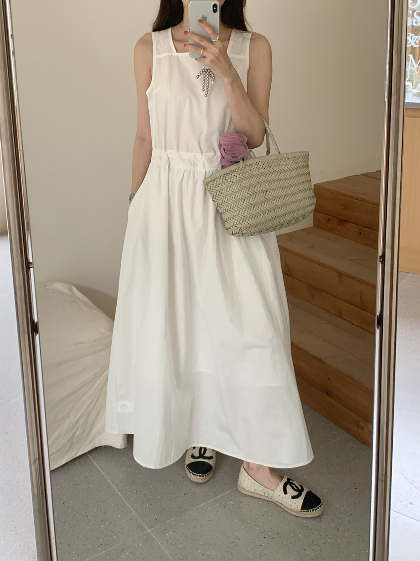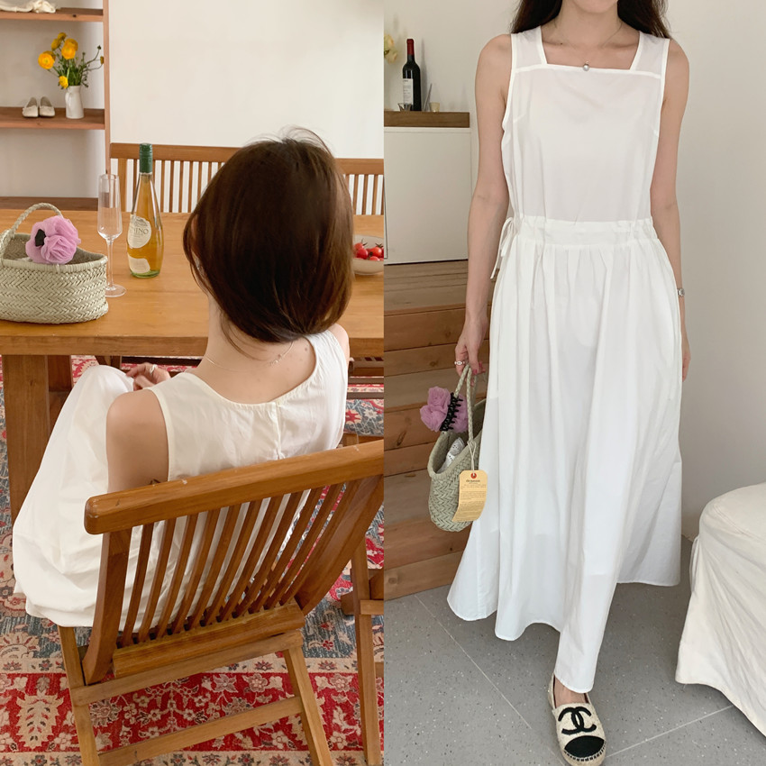 【F60563】法式慵懶度假風🌴小眾復古抽繩設計無袖背心寬鬆長版洋裝260413