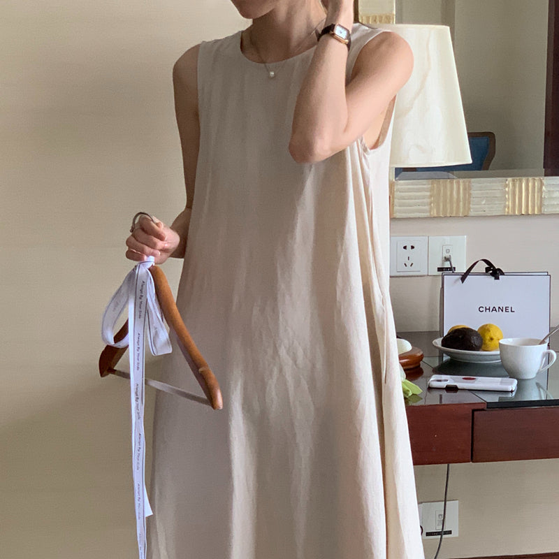 【F7298】實拍韓版自在日常 設計款日常穿的棉麻洋裝-夏季長銷