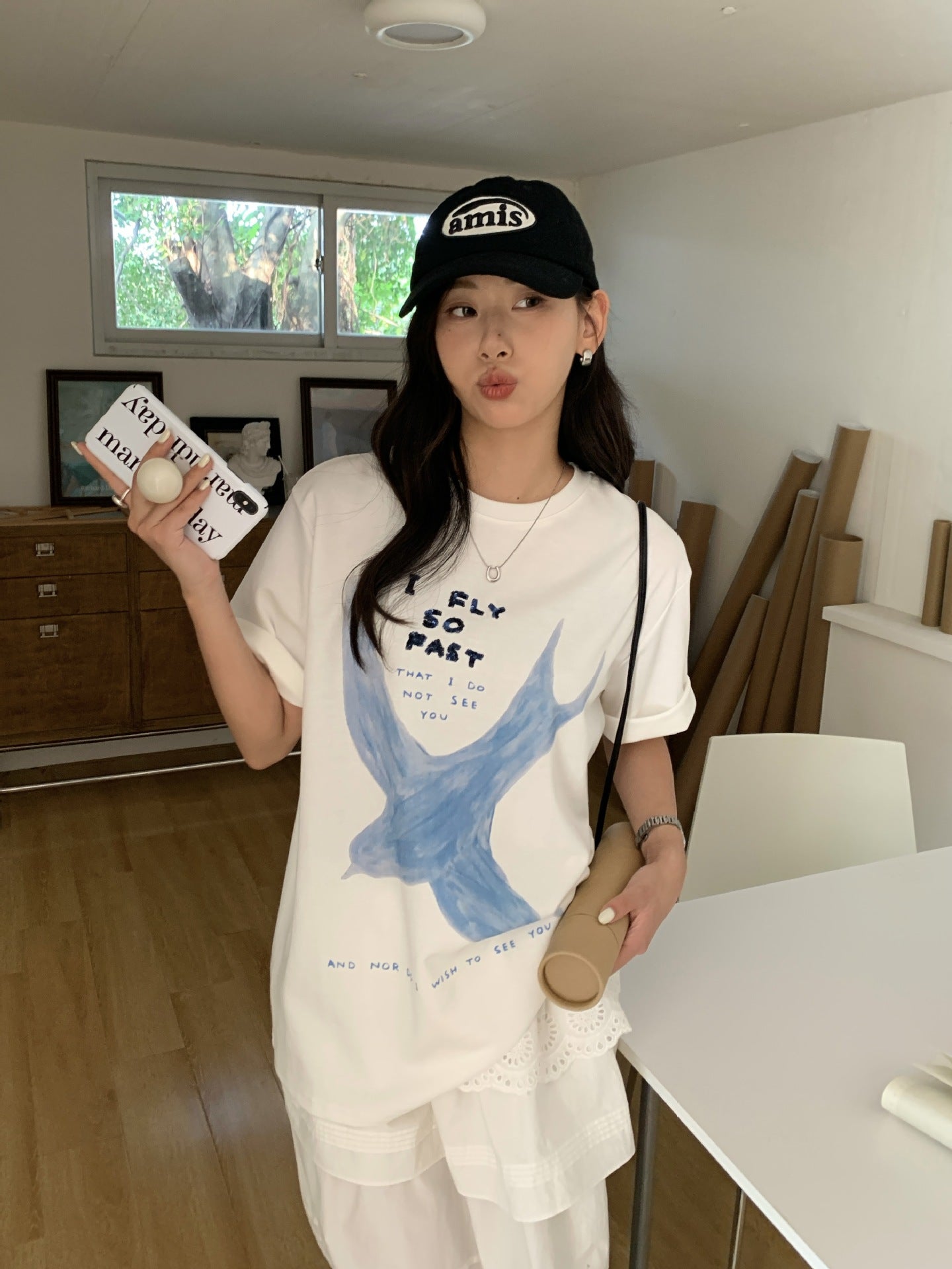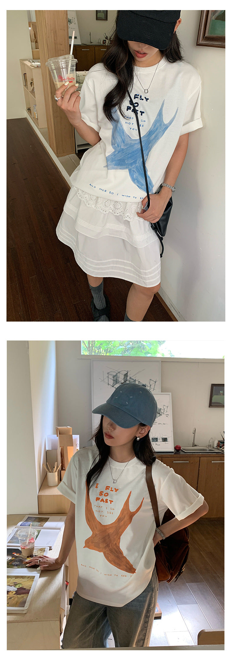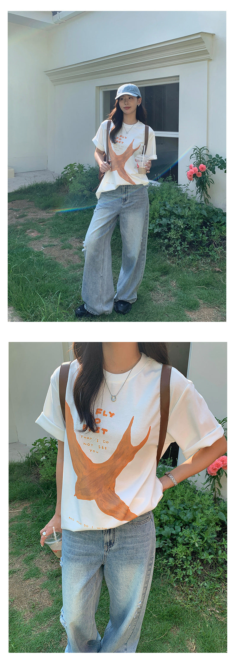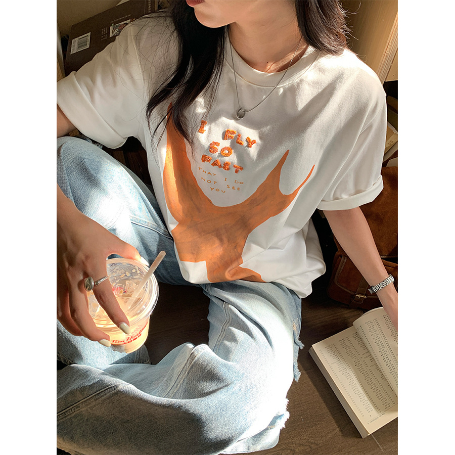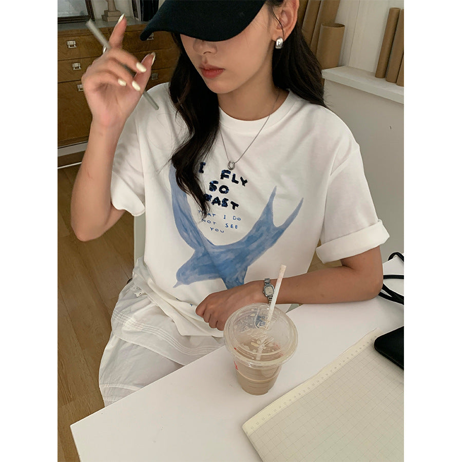 【H5332】實拍簡約夏日印花短袖T恤250624