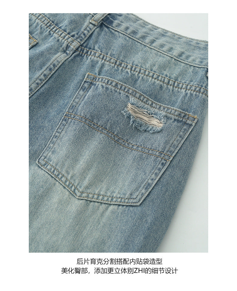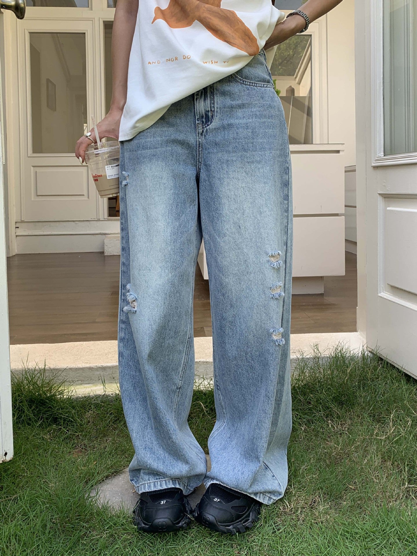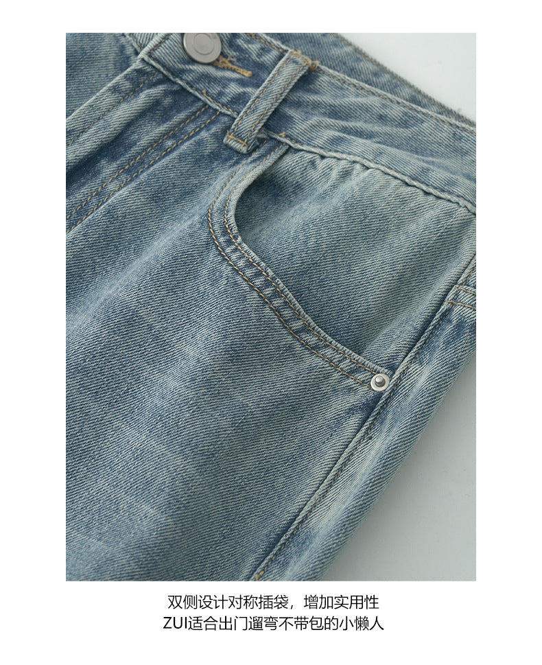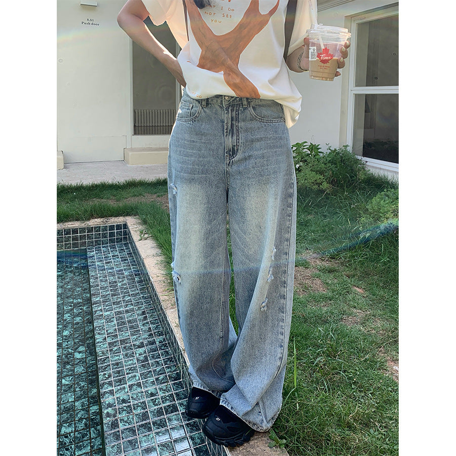 【H5344】實拍S~XL夏日復古洗舊寬鬆牛仔褲250624