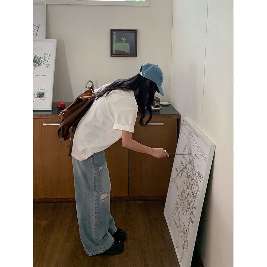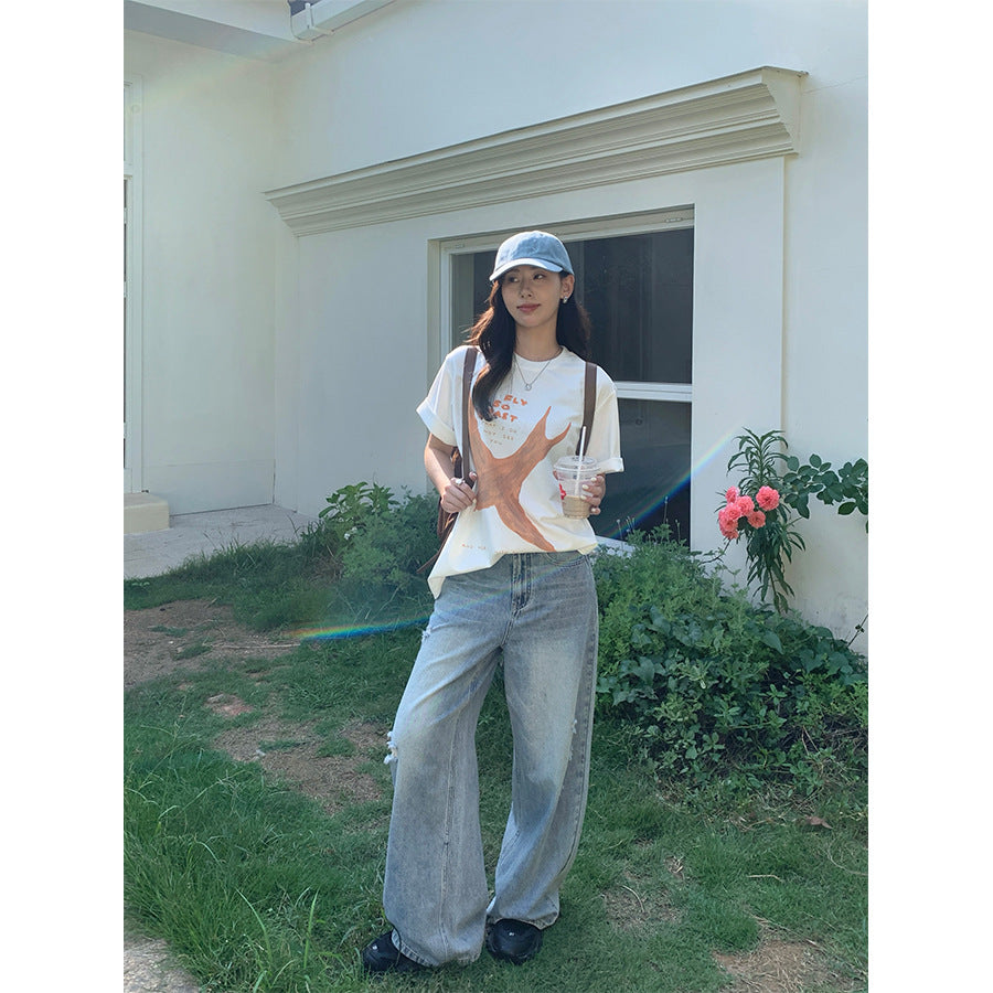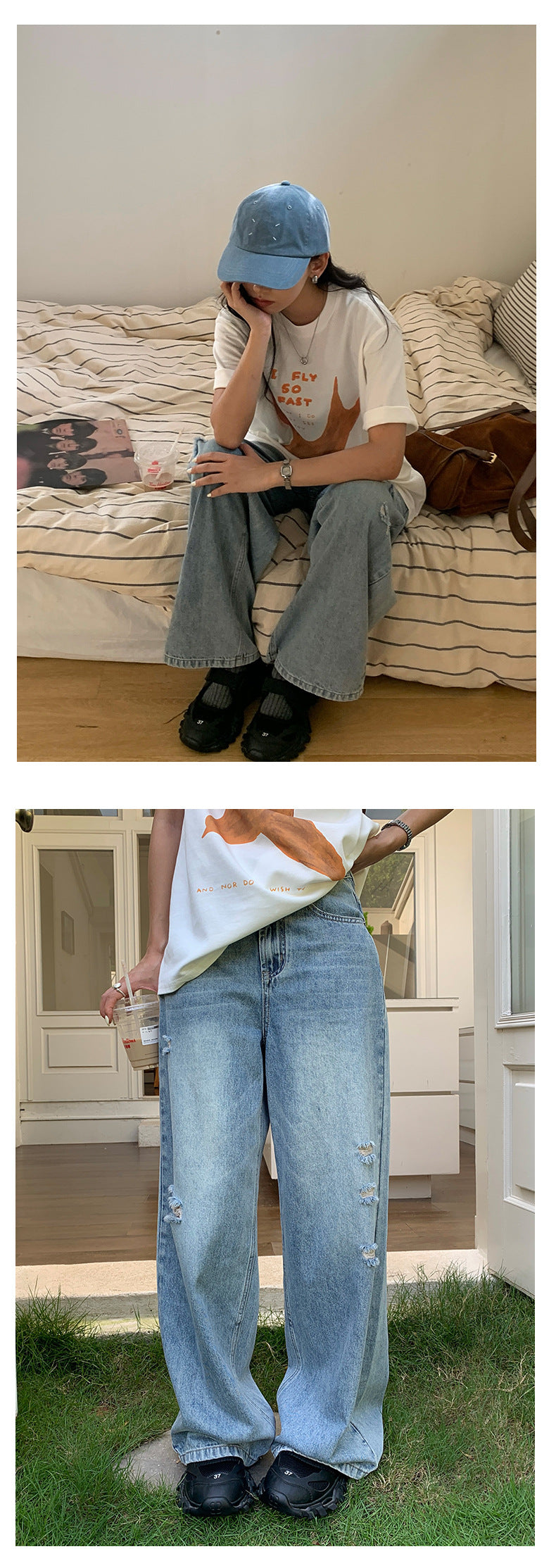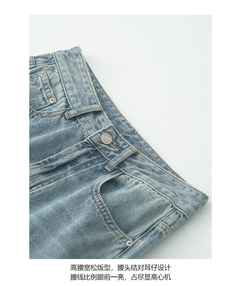 【H5344】實拍S~XL夏日復古洗舊寬鬆牛仔褲250624