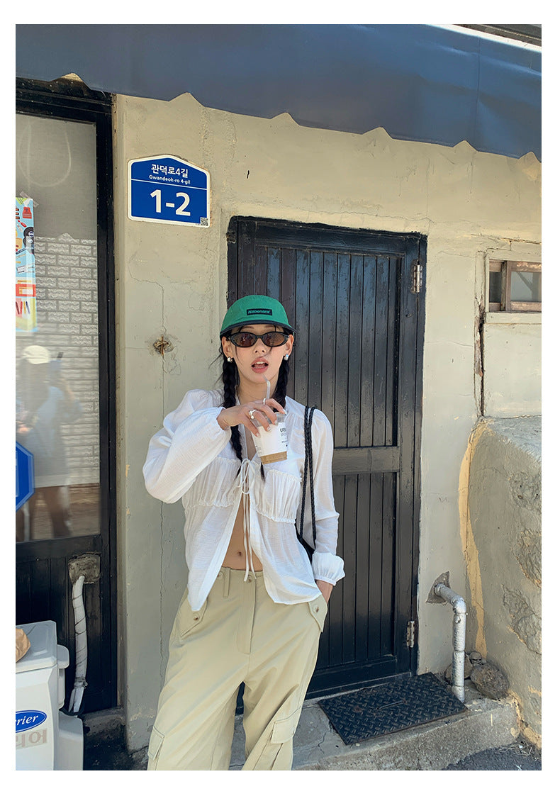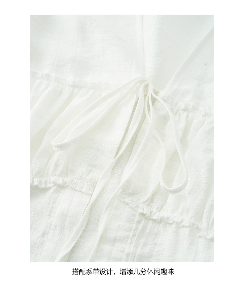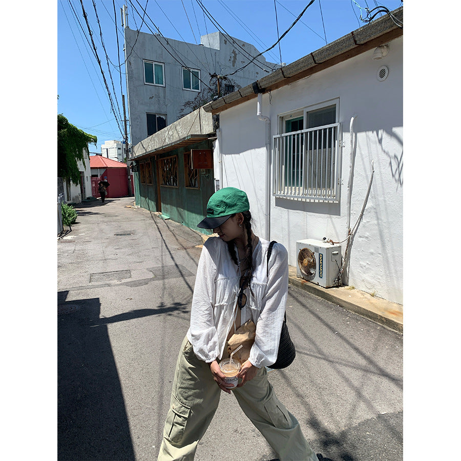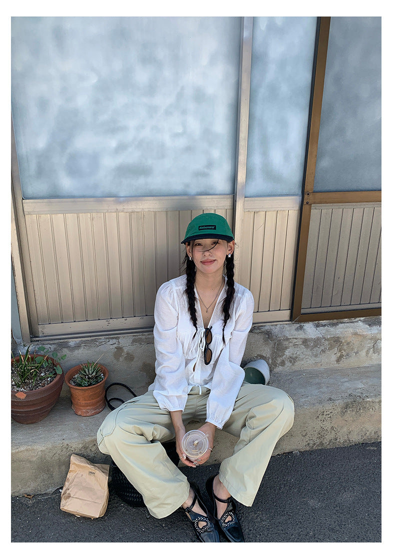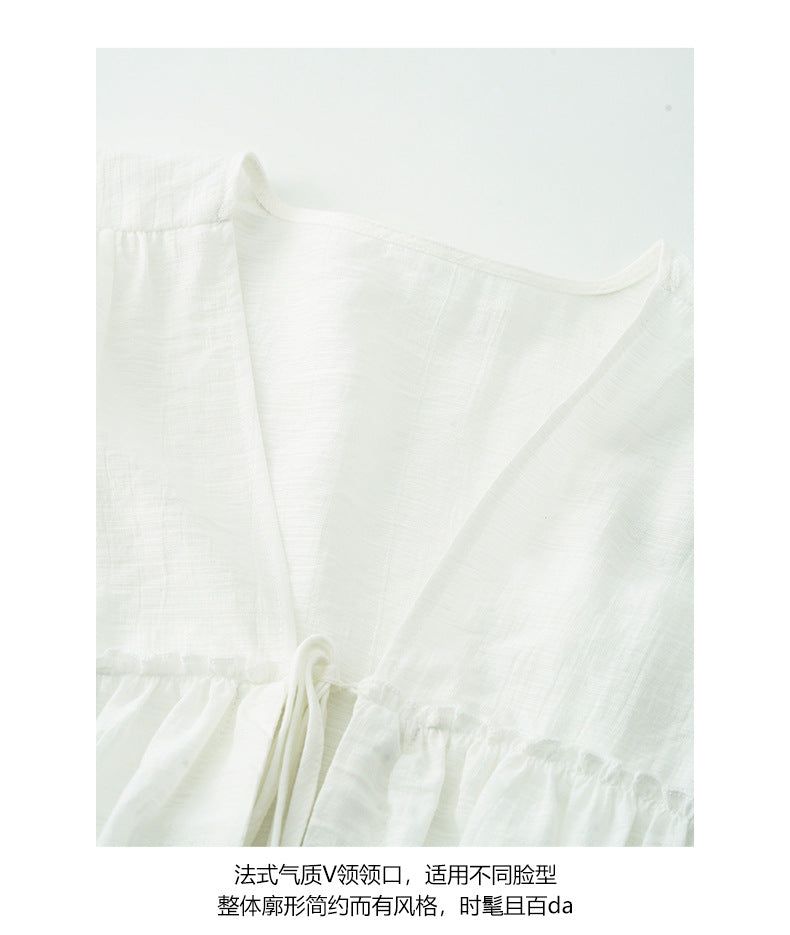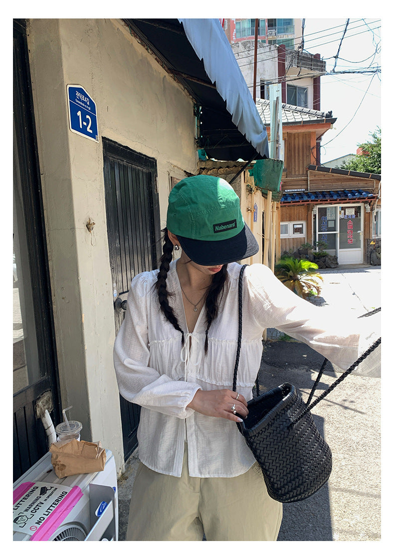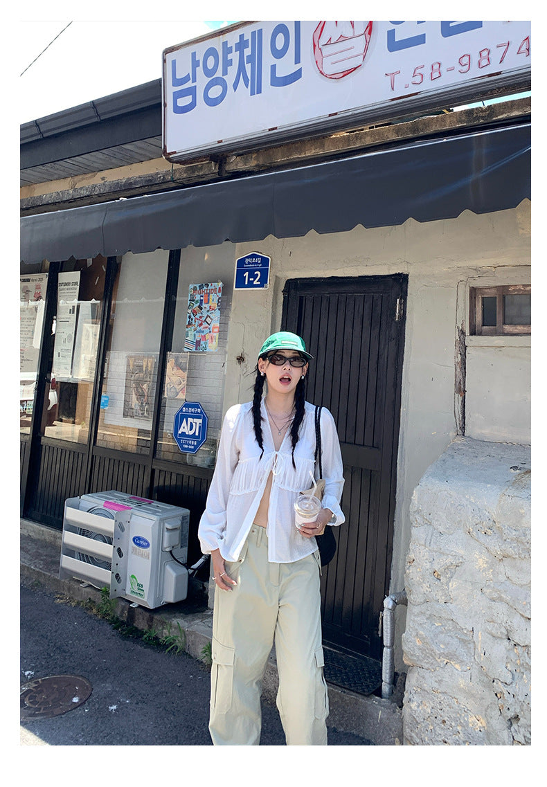 【H5379】實拍秋天繫帶v領泡泡袖褶皺襯衫250902