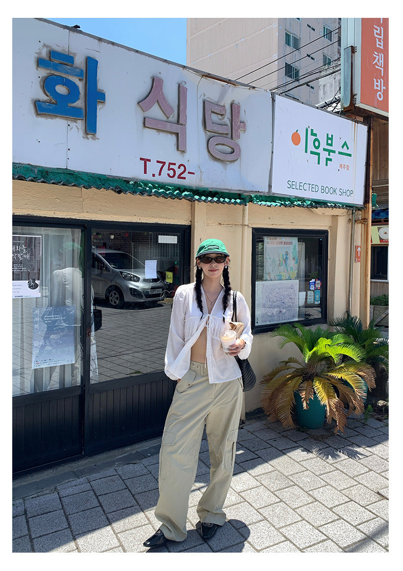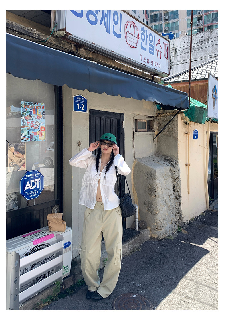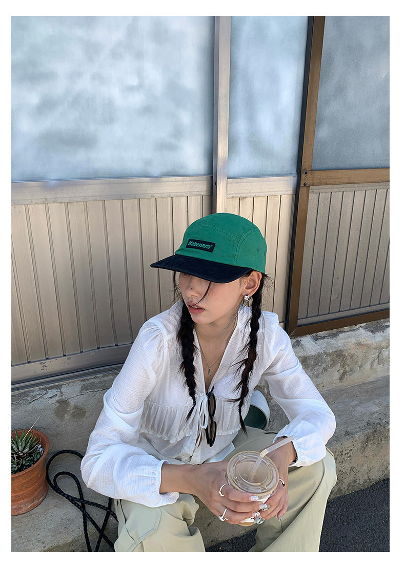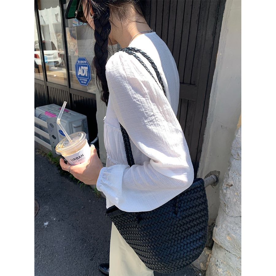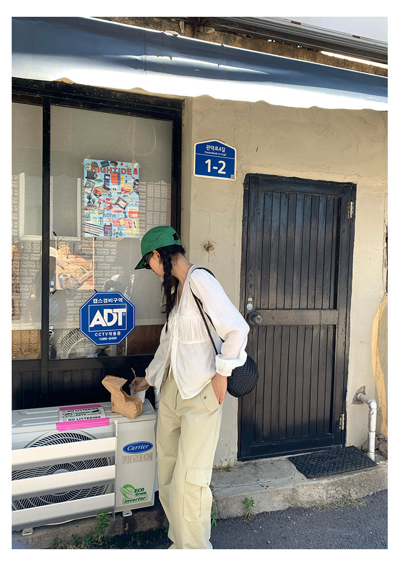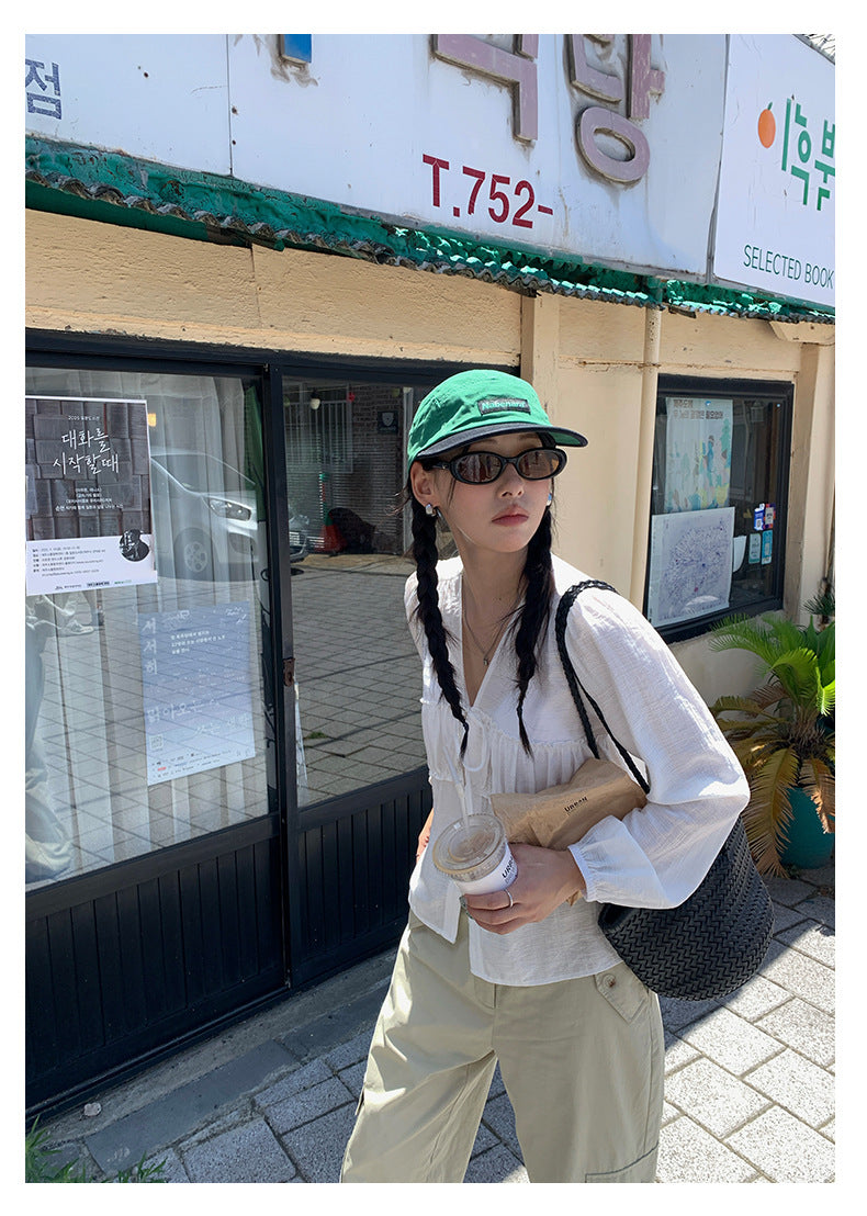 【H5379】實拍秋天繫帶v領泡泡袖褶皺襯衫250902