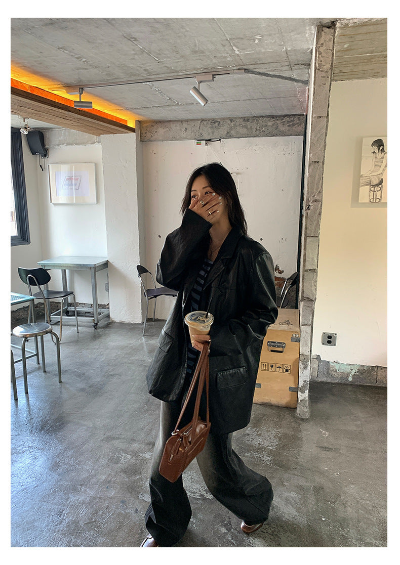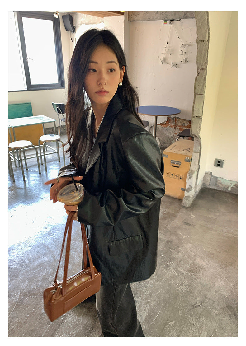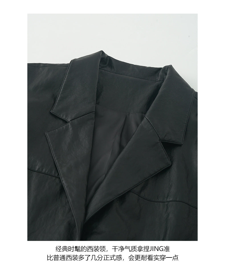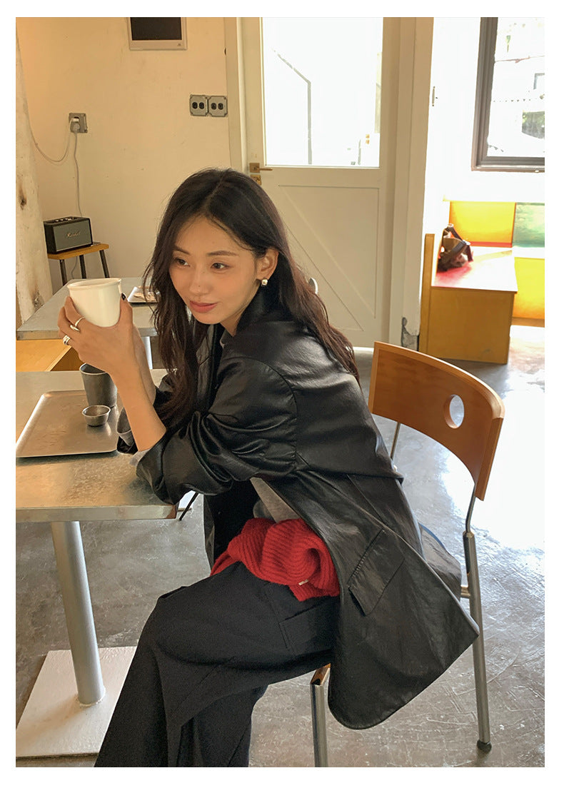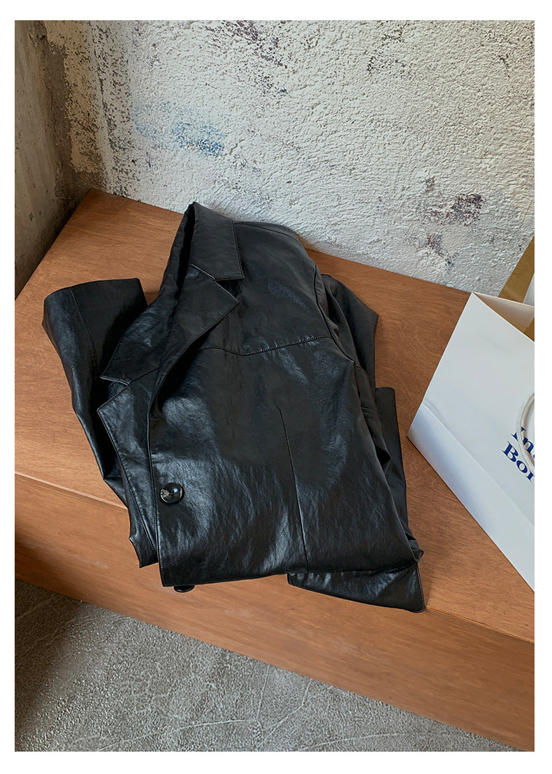 【H5398】實拍韓系高級感黑色皮衣西裝外套250902