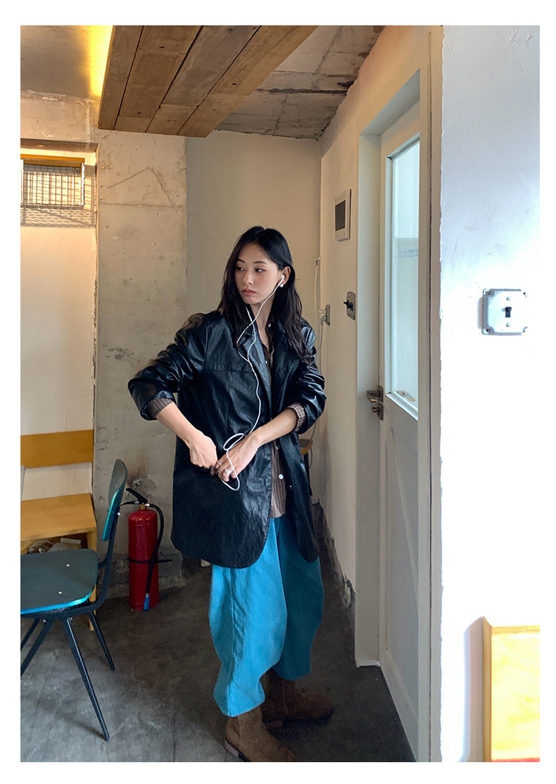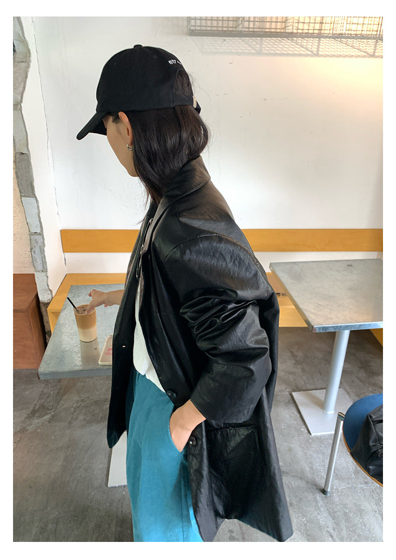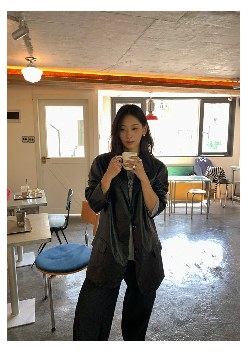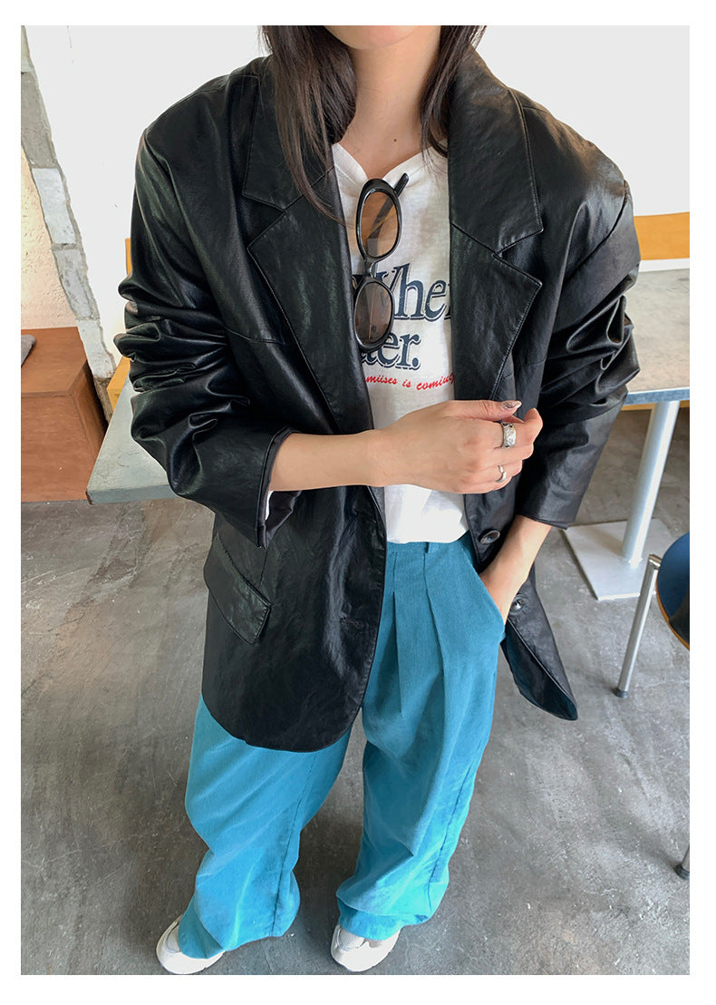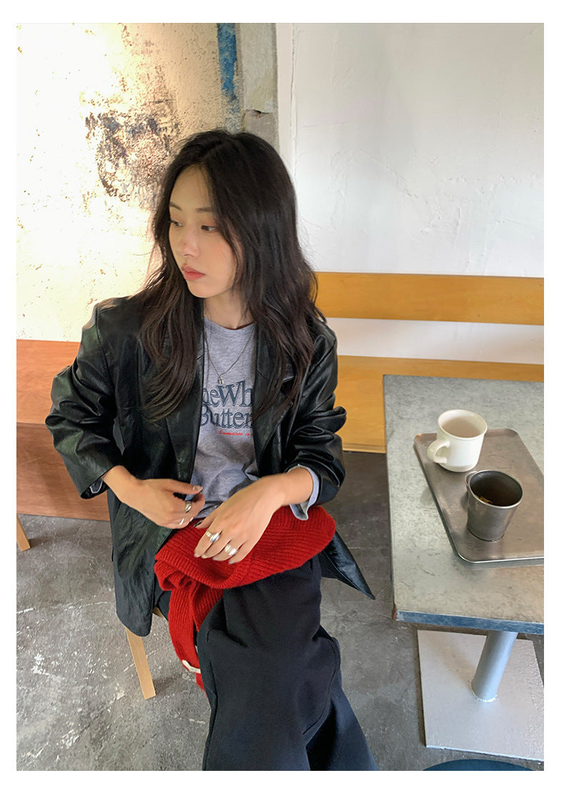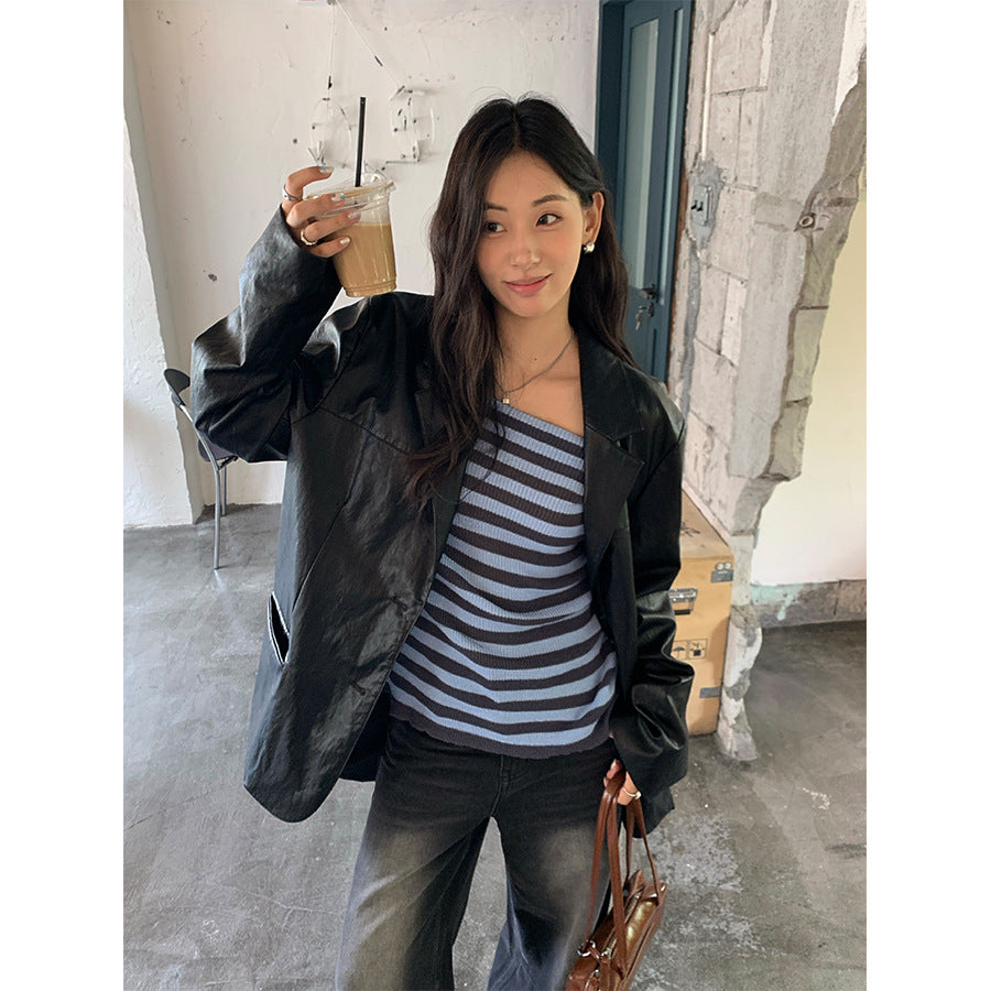 【H5398】實拍韓系高級感黑色皮衣西裝外套250902