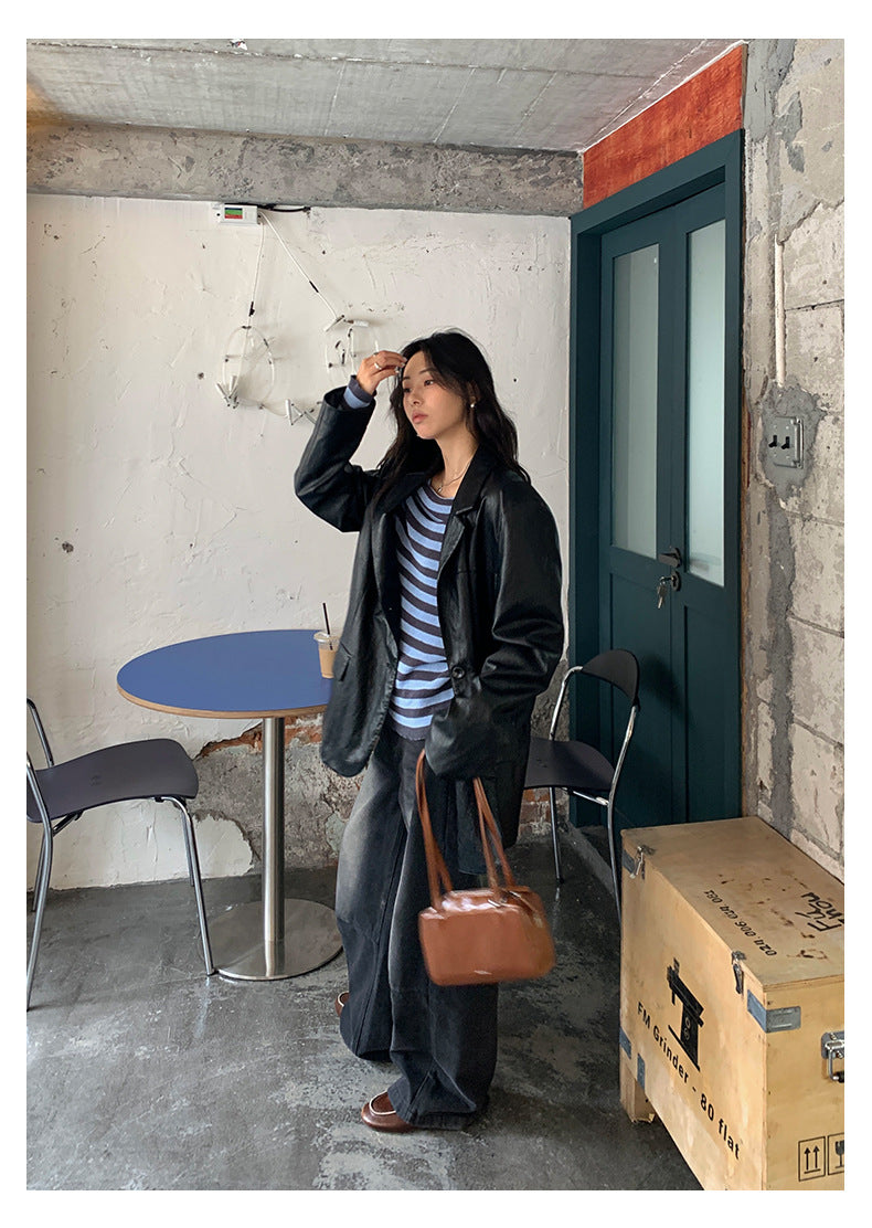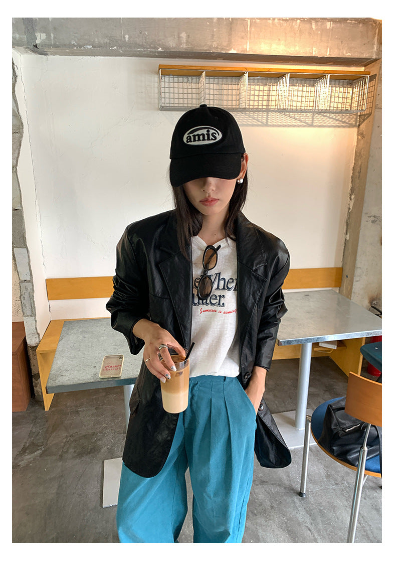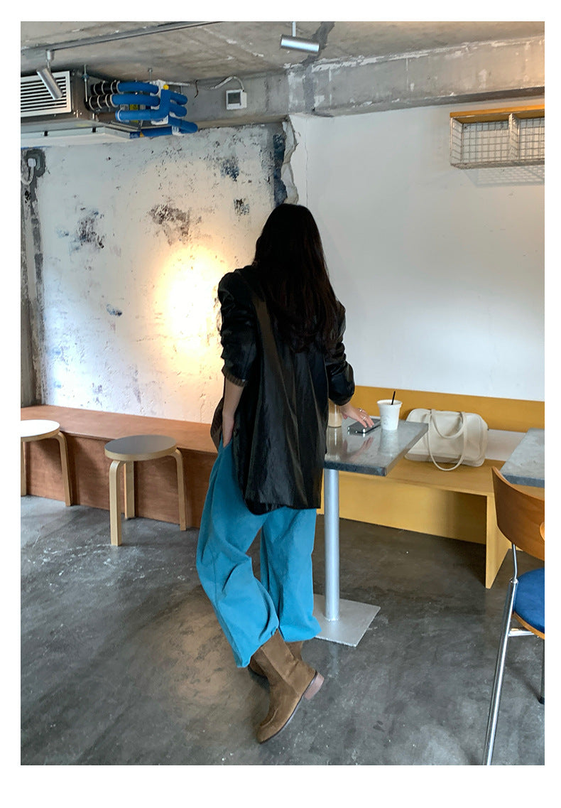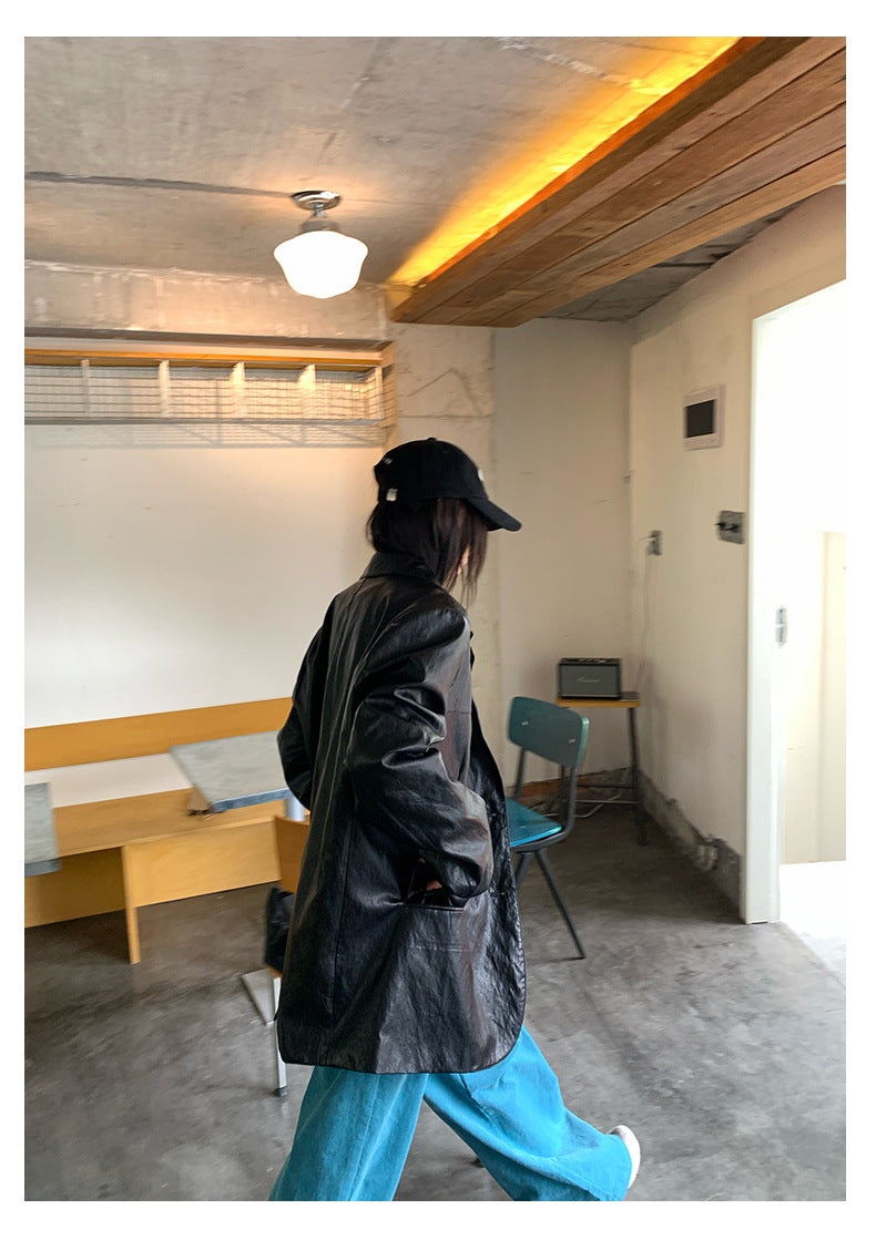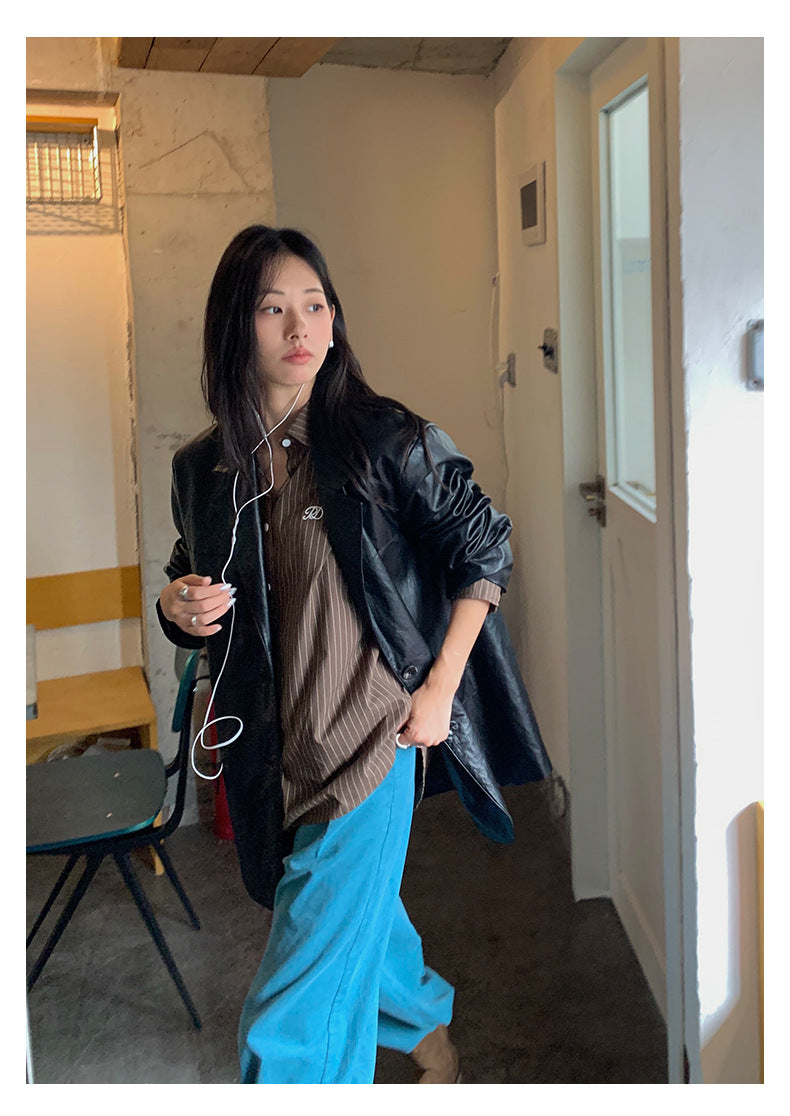 【H5398】實拍韓系高級感黑色皮衣西裝外套250902