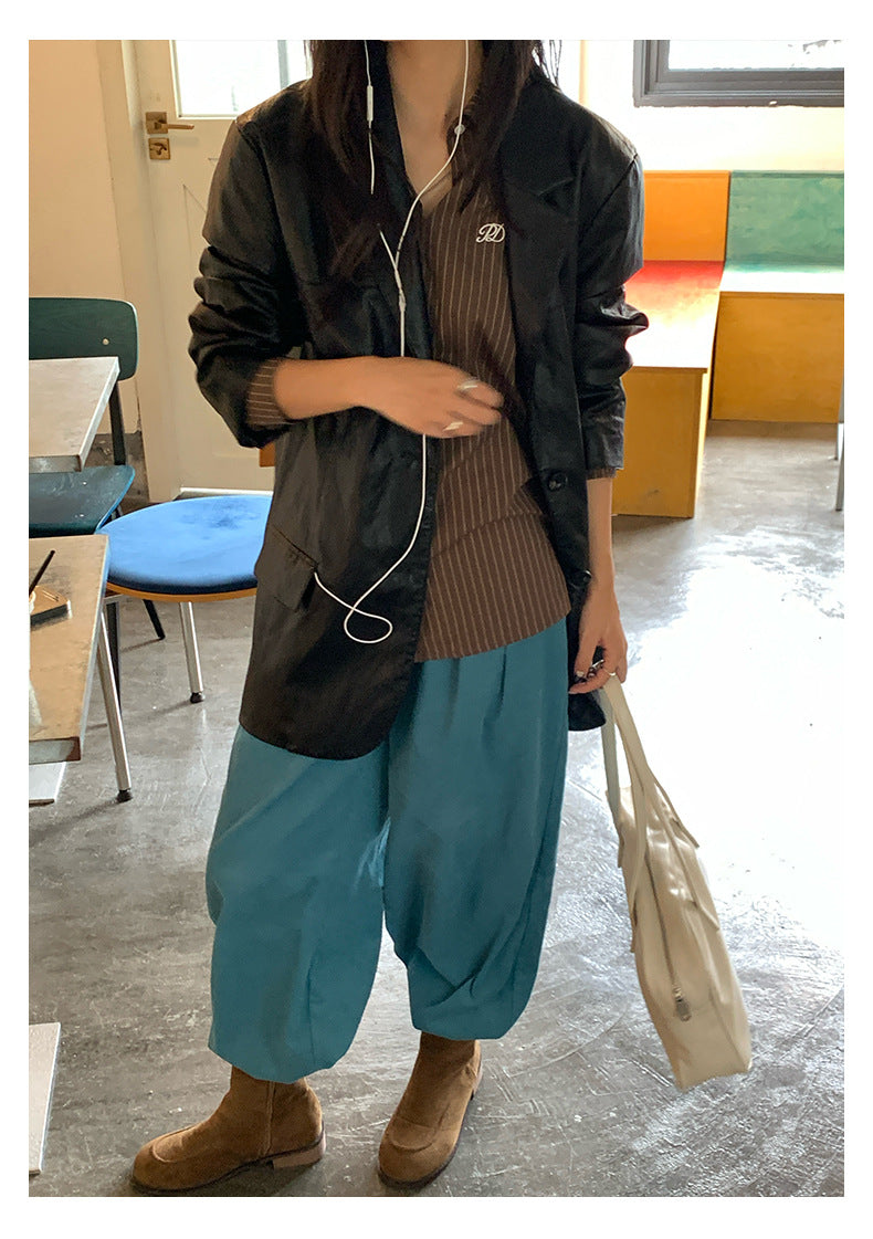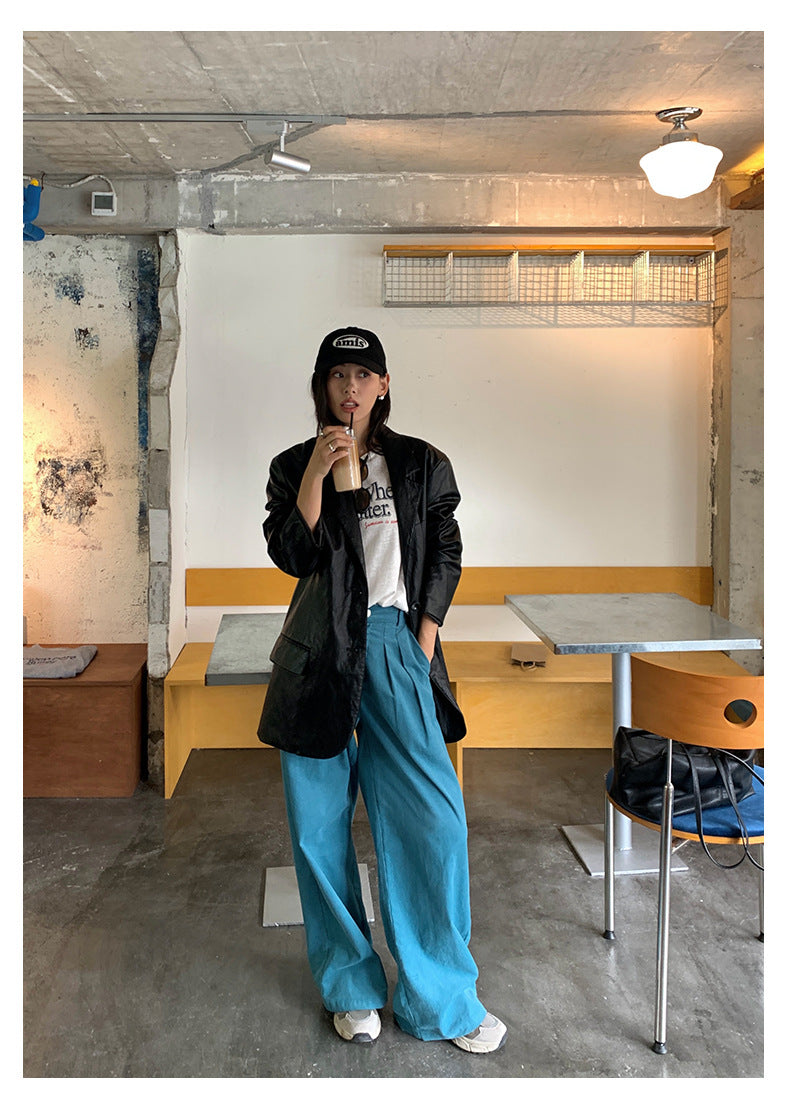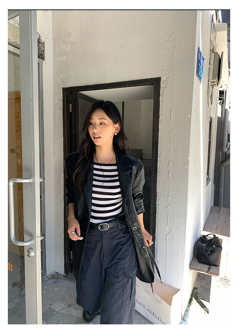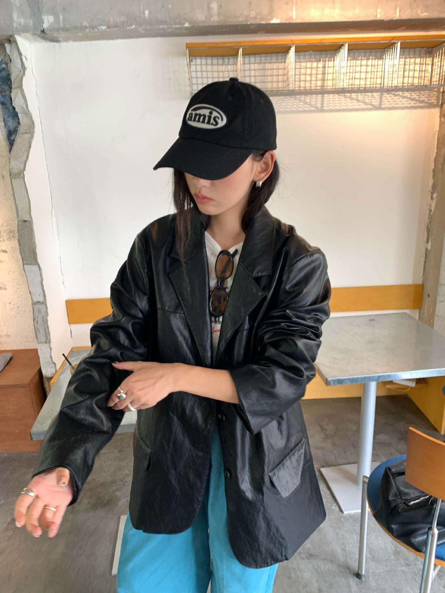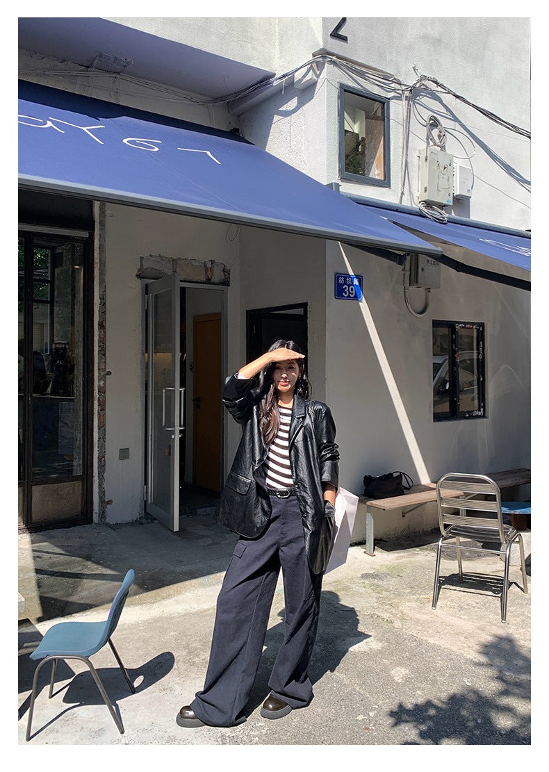 【H5398】實拍韓系高級感黑色皮衣西裝外套250902