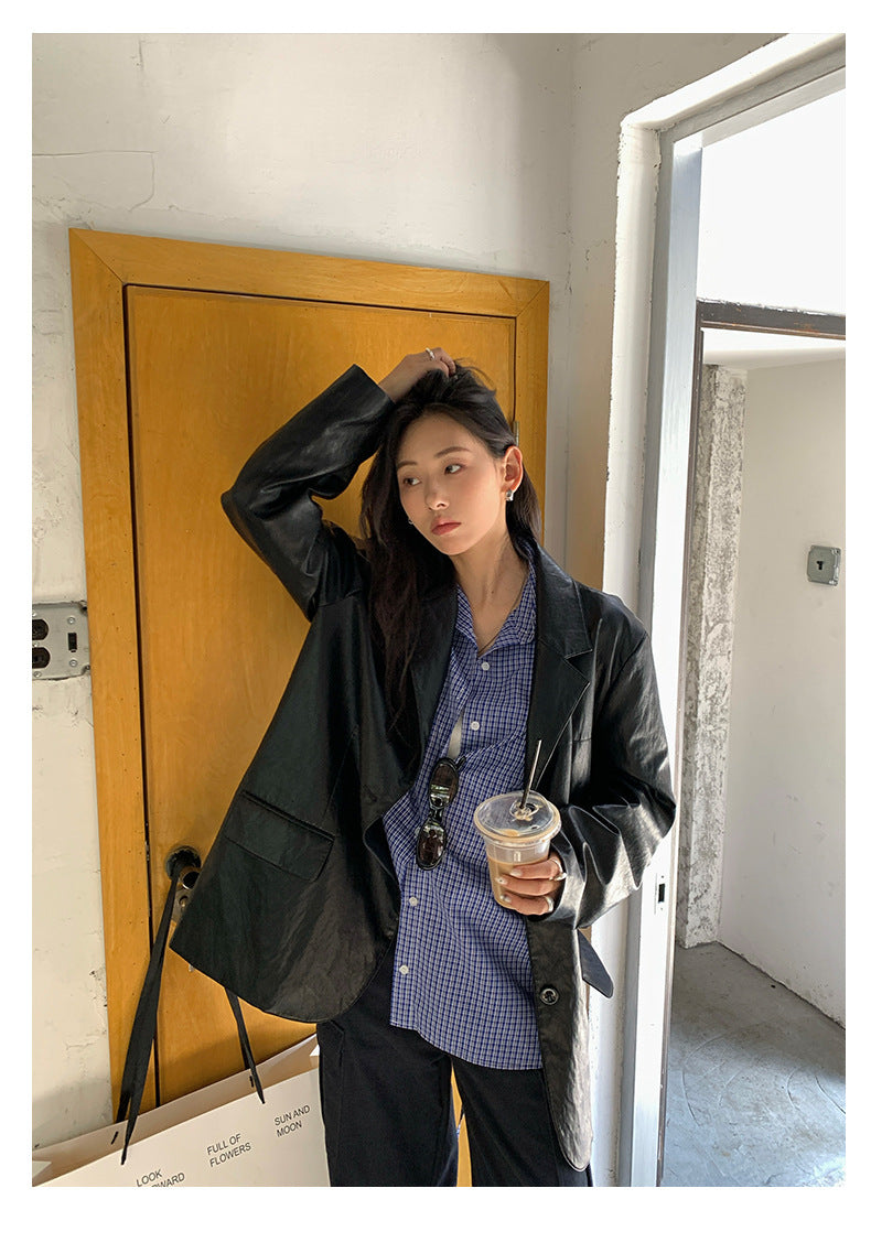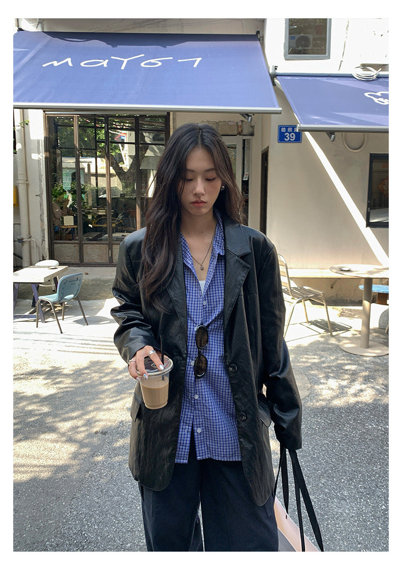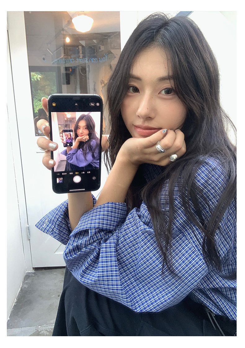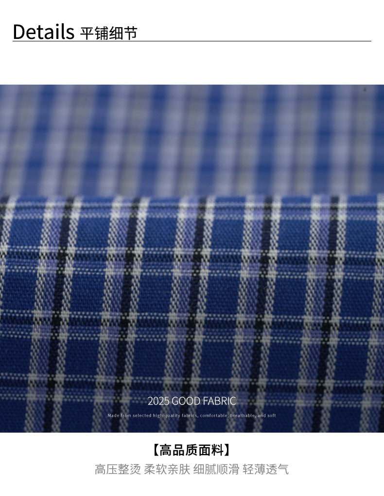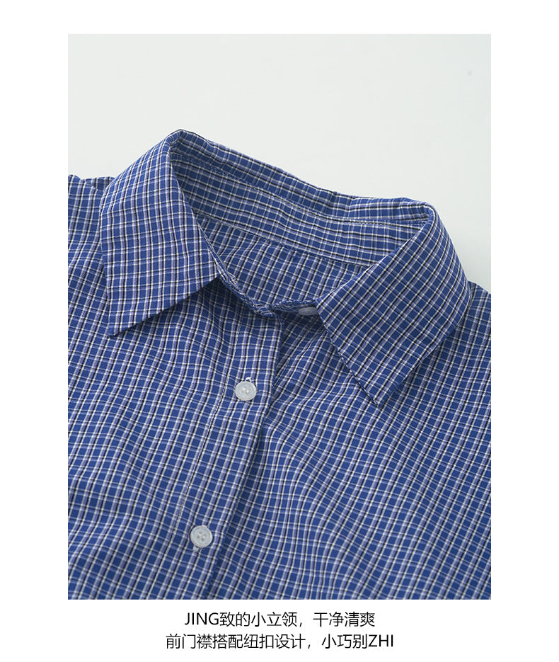 【H5401】實拍後背開叉藍色格子長袖襯衫250902