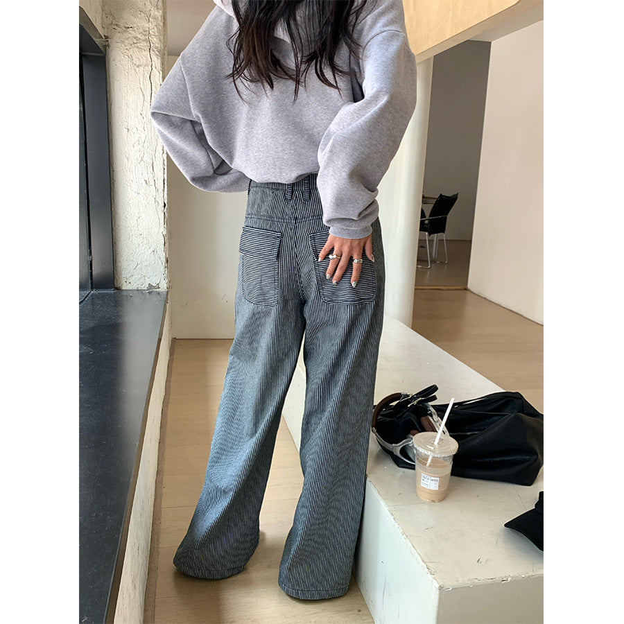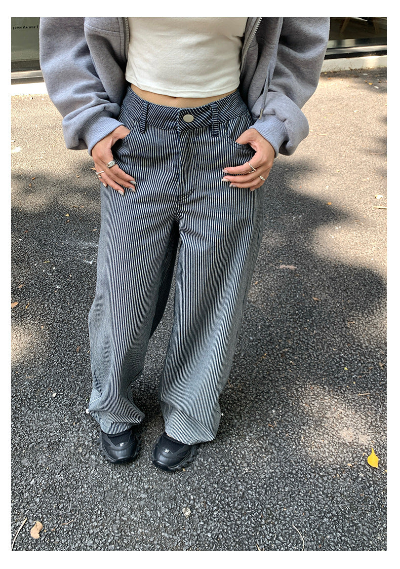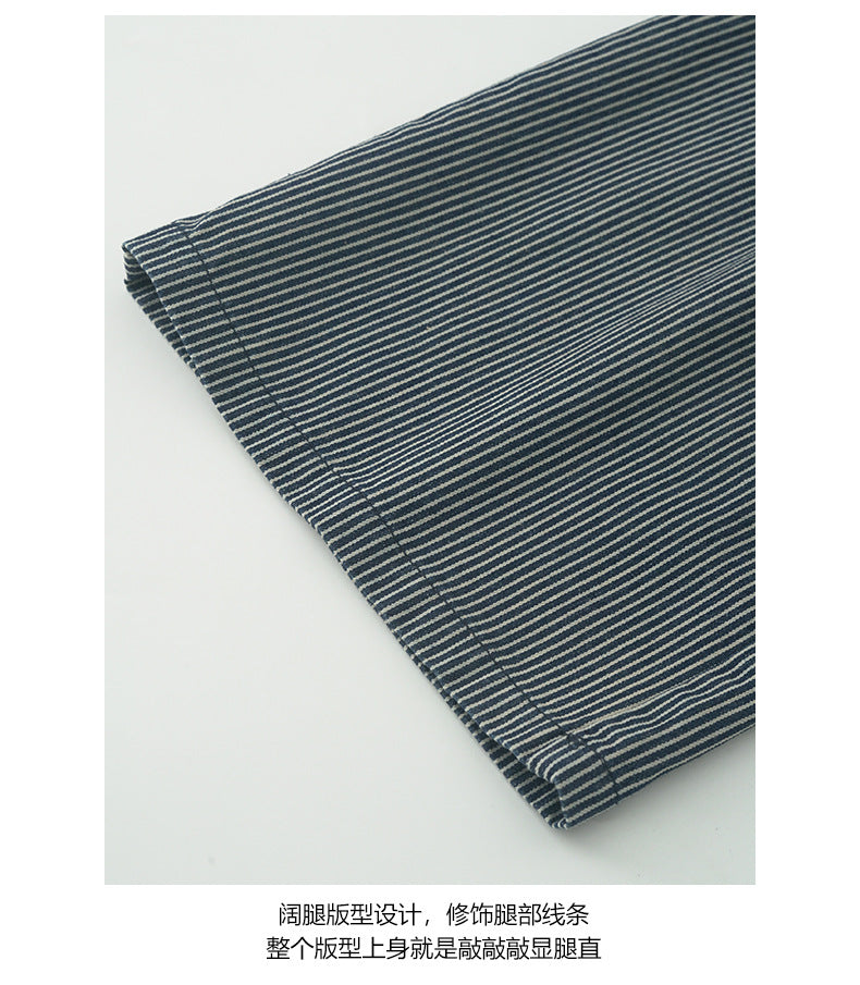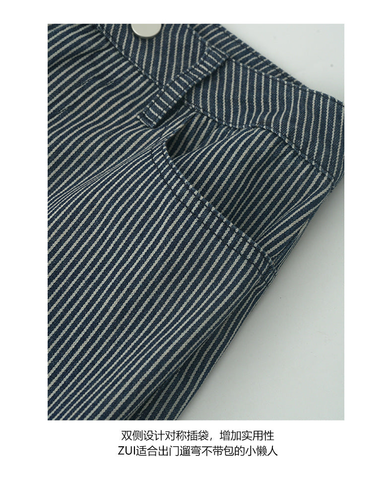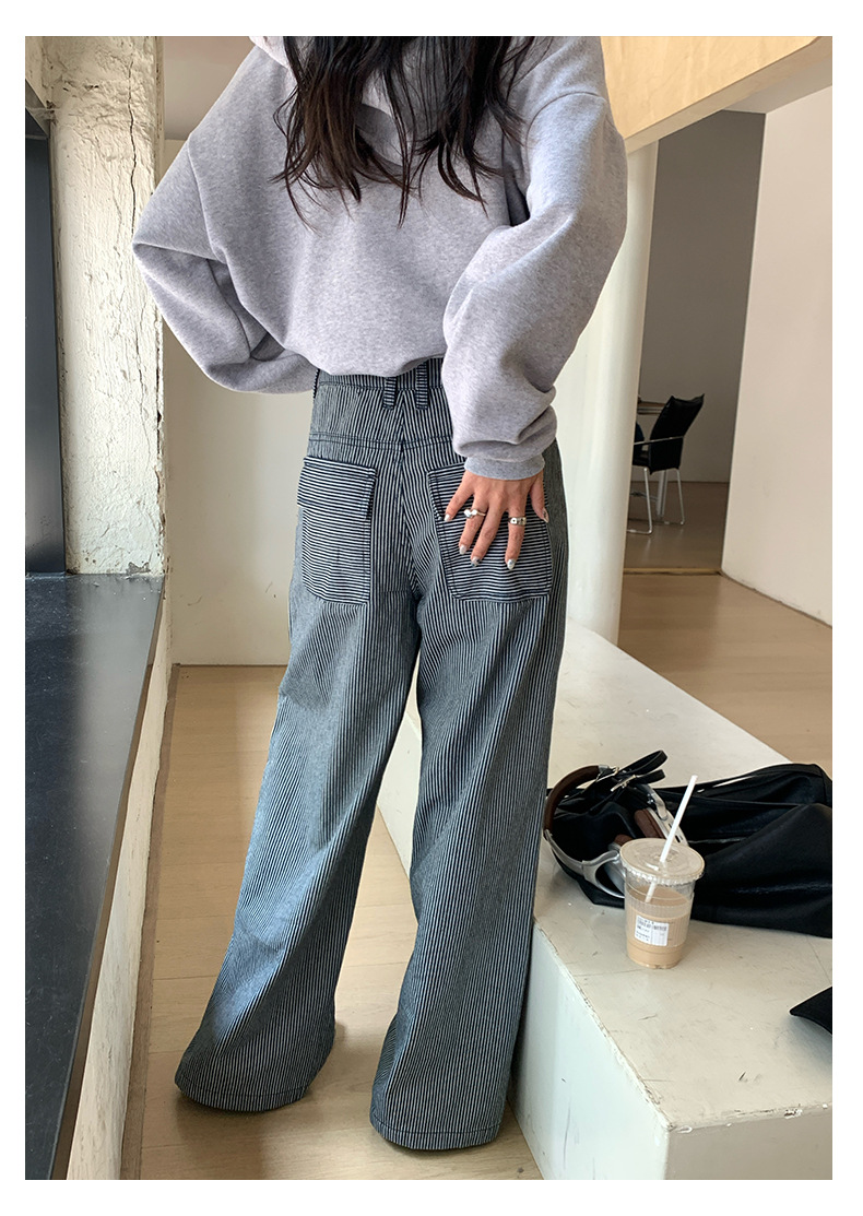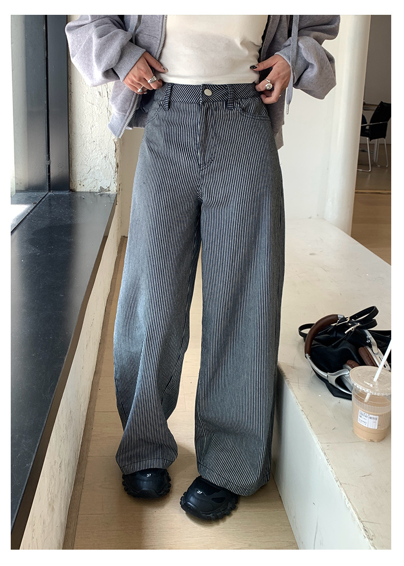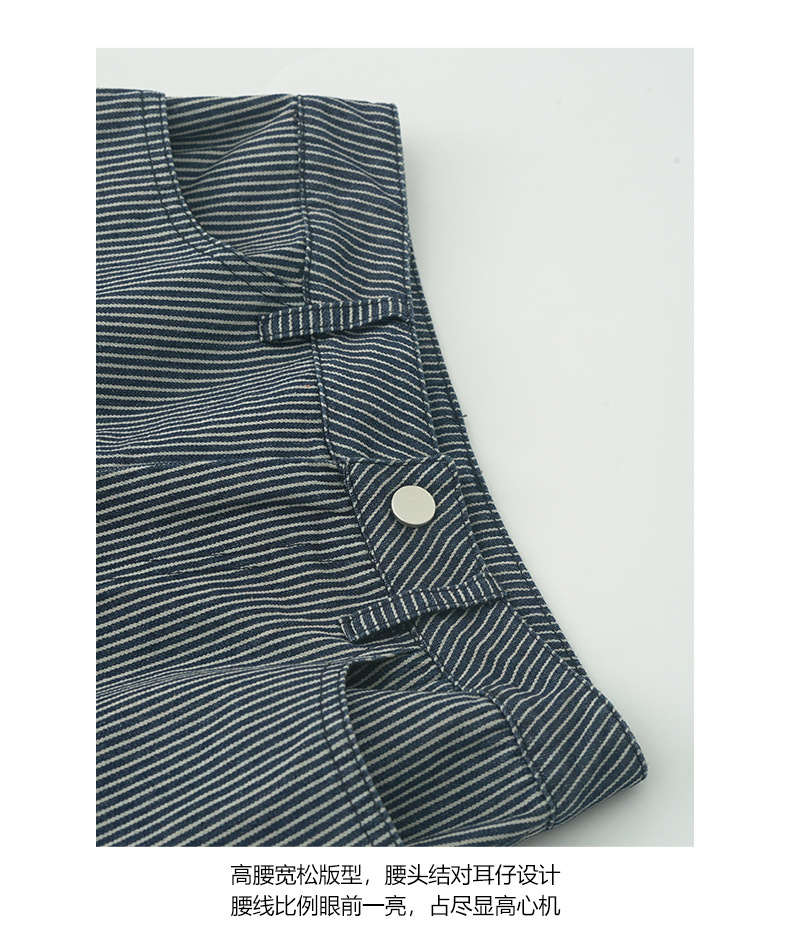 【H5406】實拍早秋藍色條紋直筒闊腿褲250909