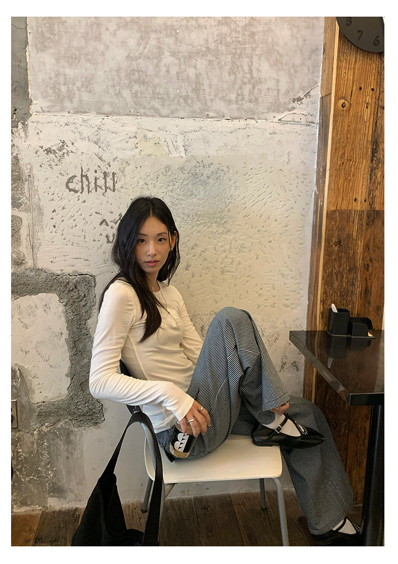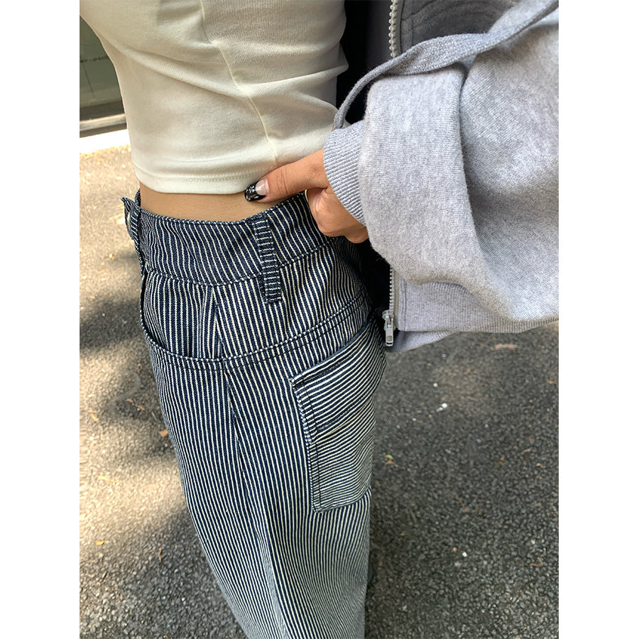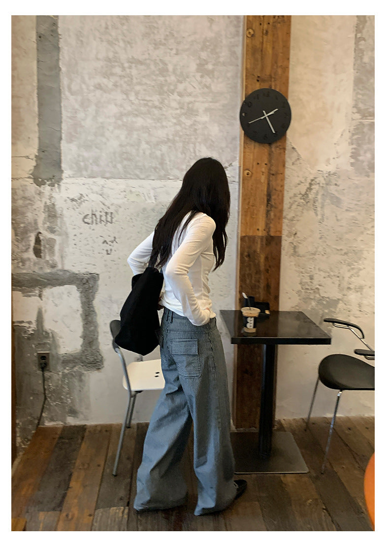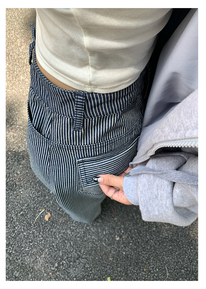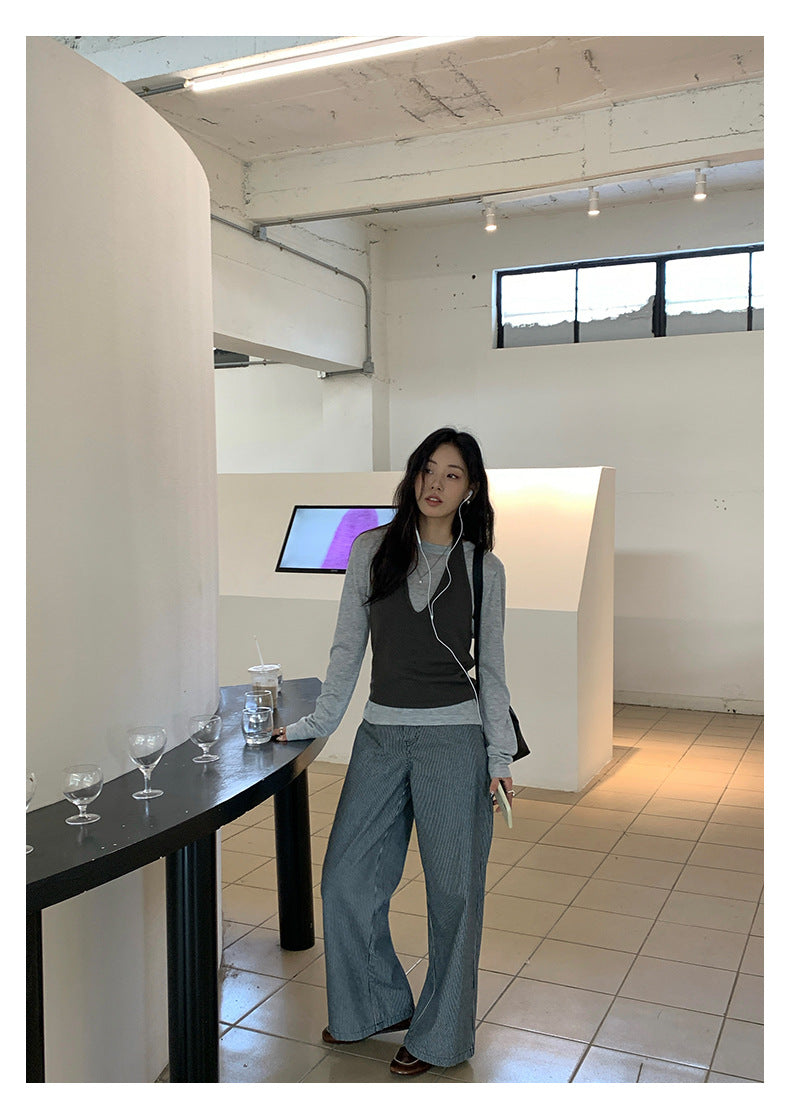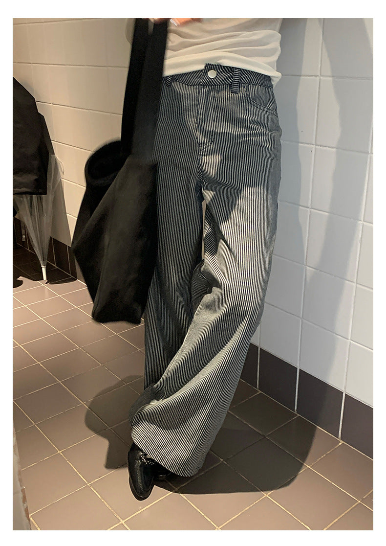 【H5406】實拍早秋藍色條紋直筒闊腿褲250909
